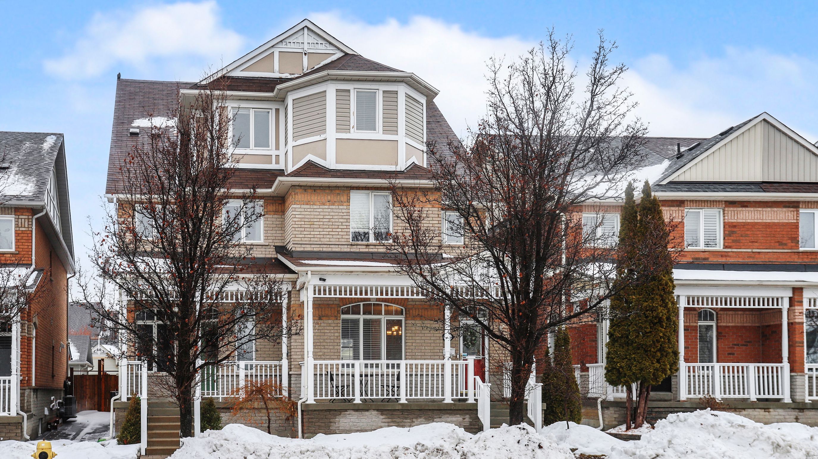 Meticulously maintained with numerous upgrades and a completed basement, this beautiful home offers exceptional living space in one of cornell's most sought-after, family-friendly neighbourhoods. Just steps to cornell village public school and close to parks, the community centre, hospital, public transit, and everyday amenities, with convenient access to highway 407 for an easy commute. This spacious 4-bedroom semi-detached home offers approximately 2,300 sq. Ft. Of thoughtfully designed living space plus the finished basement. The attractive three-storey exterior showcases excellent curb appeal. Inside, you'll find soaring 10-foot ceilings on the main floor, oversized windows that flood the home with natural light, maple hardwood flooring, elegant crown moulding, and a modern open-concept kitchen featuring granite countertops and under-cabinet lighting. The main-floor laundry/mudroom with side entrance adds everyday convenience, while the walk-out to a generous deck and the double car garage enhance comfort and functionality. A standout feature is the two primary bedroom retreats, including a private third-floor suite complete with cathedral ceilings and a luxurious 5-piece ensuite. An outstanding opportunity to own a spacious and beautifully maintained home in the heart of cornell.