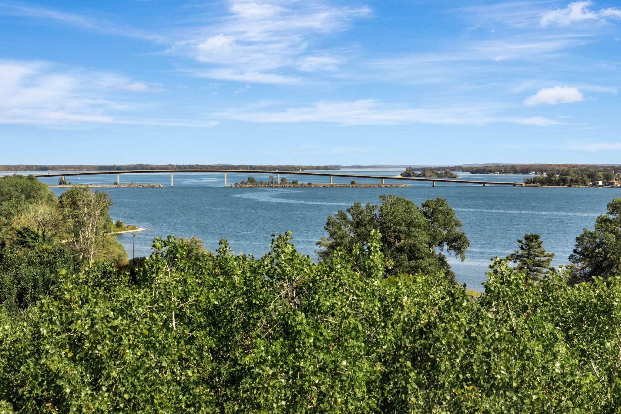 • Community features manicured gardens and waterfront access on the Bay.