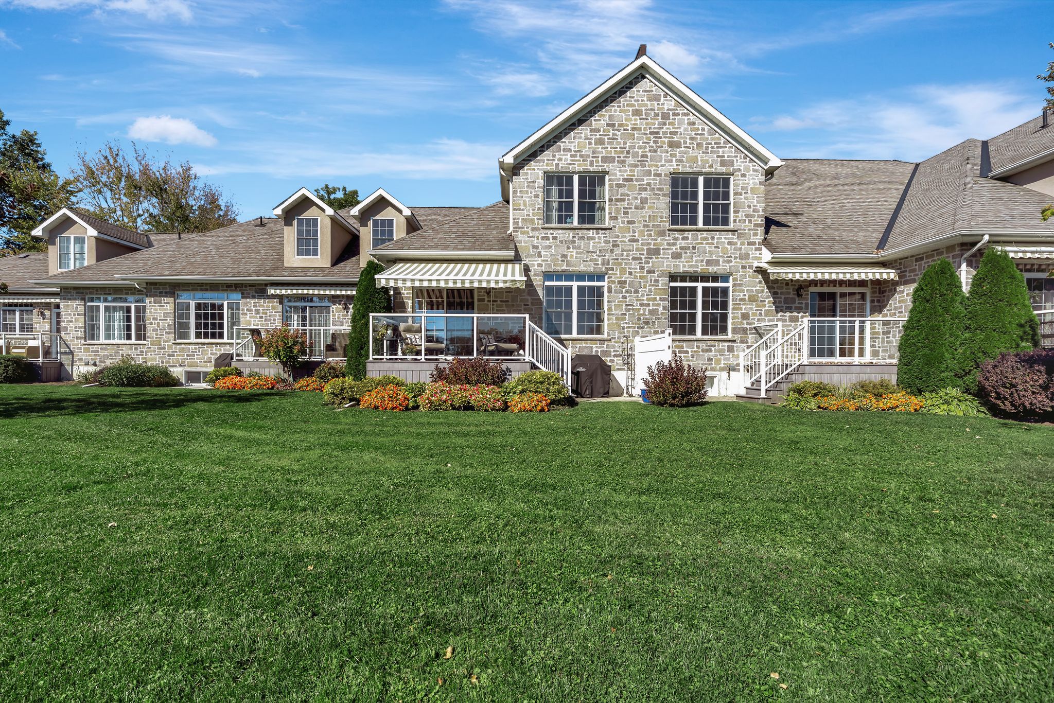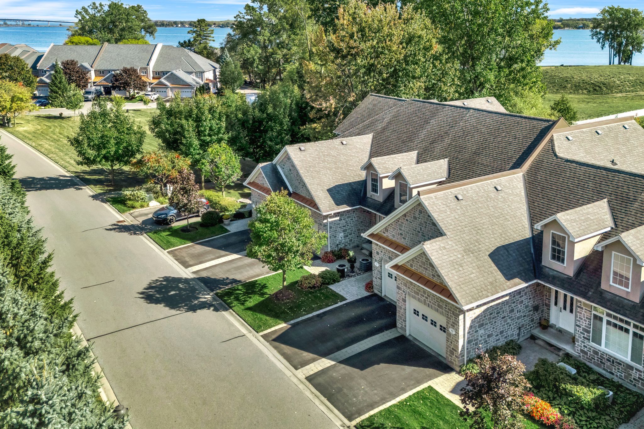 Welcome to 24 gracefield lane, where refined living meets the tranquility of waterfront life. Nestled in the highly sought-after community of st. James by the bay, this stone townhome offers more than just a place to live, it's a lifestyle. Imagine waking up each morning in a serene enclave designed for adults who value comfort, connection, and ease. Step inside to over 1,800 sq ft above grade, thoughtfully designed with soaring ceilings, rich hardwood and ceramic floors, and an open-concept main level that seamlessly blends dining, entertaining, and everyday living. The kitchen has been refreshed with quartz countertops and stainless-steel appliances, while the living room walks out to a private deck overlooking lush green space, perfect for enjoying coffee in the morning sun or evening wine under the awning. Upstairs, retreat to a spacious primary suite complete with walk-in closet, spa-like ensuite, and a flexible loft space that could double as a cozy den, library, or tv lounge. The finished lower level extends your living area with a bright recreation room, guest bedroom, and full bath ideal for hosting friends and family. Beyond your door, discover manicured gardens, water features, and inviting common spaces where neighbours gather and friendships thrive. This adult lifestyle community is built around ease, offering waterfront access on the bay of quinte and a unique right-to-occupy ownership model that ensures a worry-free living experience. 24 gracefield lane isn't just a home its an invitation to slow down, enjoy, and truly live by the bay.