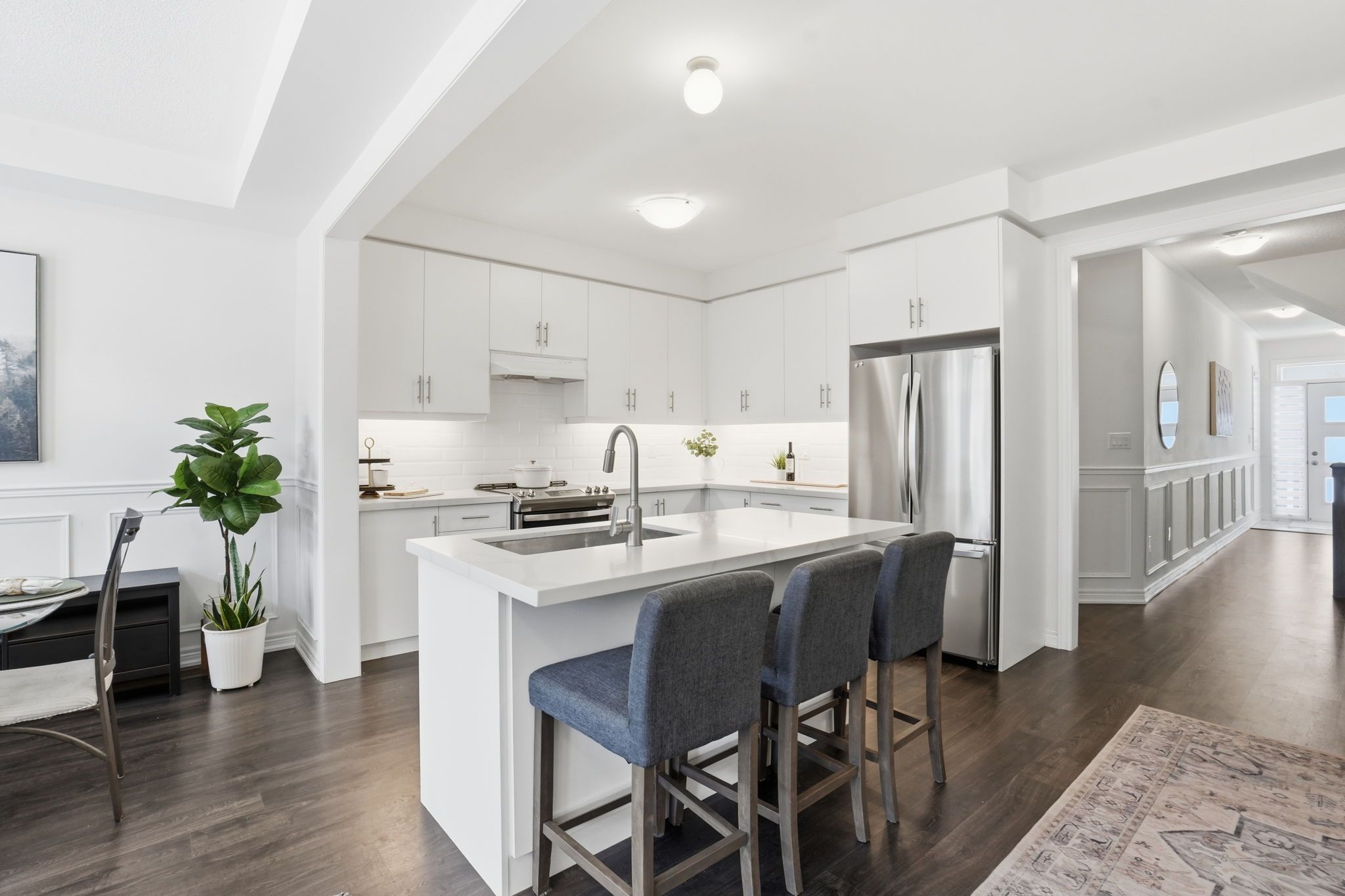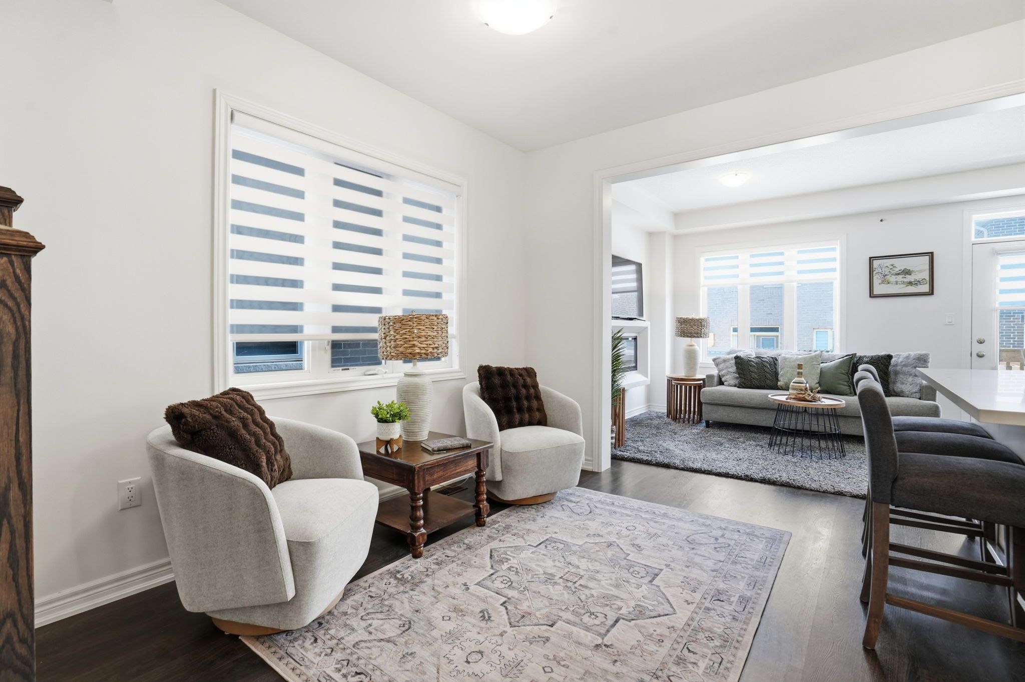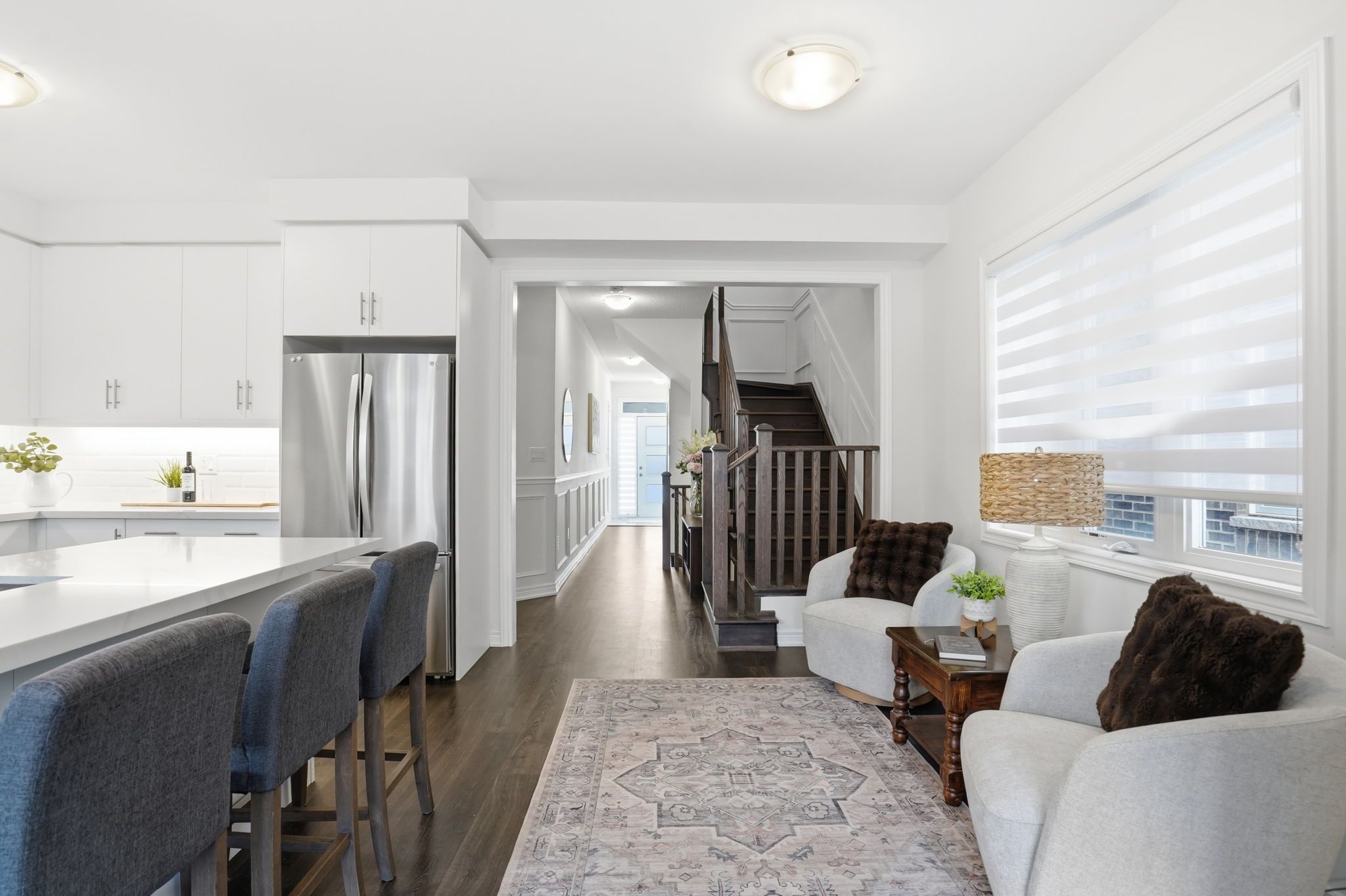 Welcome to this exceptional semi-detached residence in the highly desirable community of waterdown. Nestled in a family-friendly neighbourhood surrounded by scenic trails and parks, this thoughtfully designed home is than five years old and offers the perfect balance of contemporary elegance and everyday comfort. Boasting four spacious bedrooms and two and a half bathrooms, this home is ideal for modern family living. The open-concept main level is bright and inviting, featuring a generous great room that seamlessly connects to the dining area and stunning kitchen, perfect for both relaxed evenings and stylish entertaining. The modern kitchen showcases crisp white cabinetry, sleek quartz countertops and stainless-steel appliances, creating a timeless and sophisticated focal point. Upstairs, the sun-filled level offers four well-proportioned bedrooms, including a serene primary retreat designed for relaxation. The light-drenched primary suite features a spa-inspired ensuite complete with a walk-in glass shower, separate soaker tub and double sinks, combining luxury with everyday practicality. A beautifully appointed four-piece main bath serves the additional bedrooms with ease. Located in a thriving, community-oriented area close to parks, trails, schools and amenities, this is an outstanding opportunity to own a newer home in one of waterdown's most sought-after neighbourhoods. Rsa.