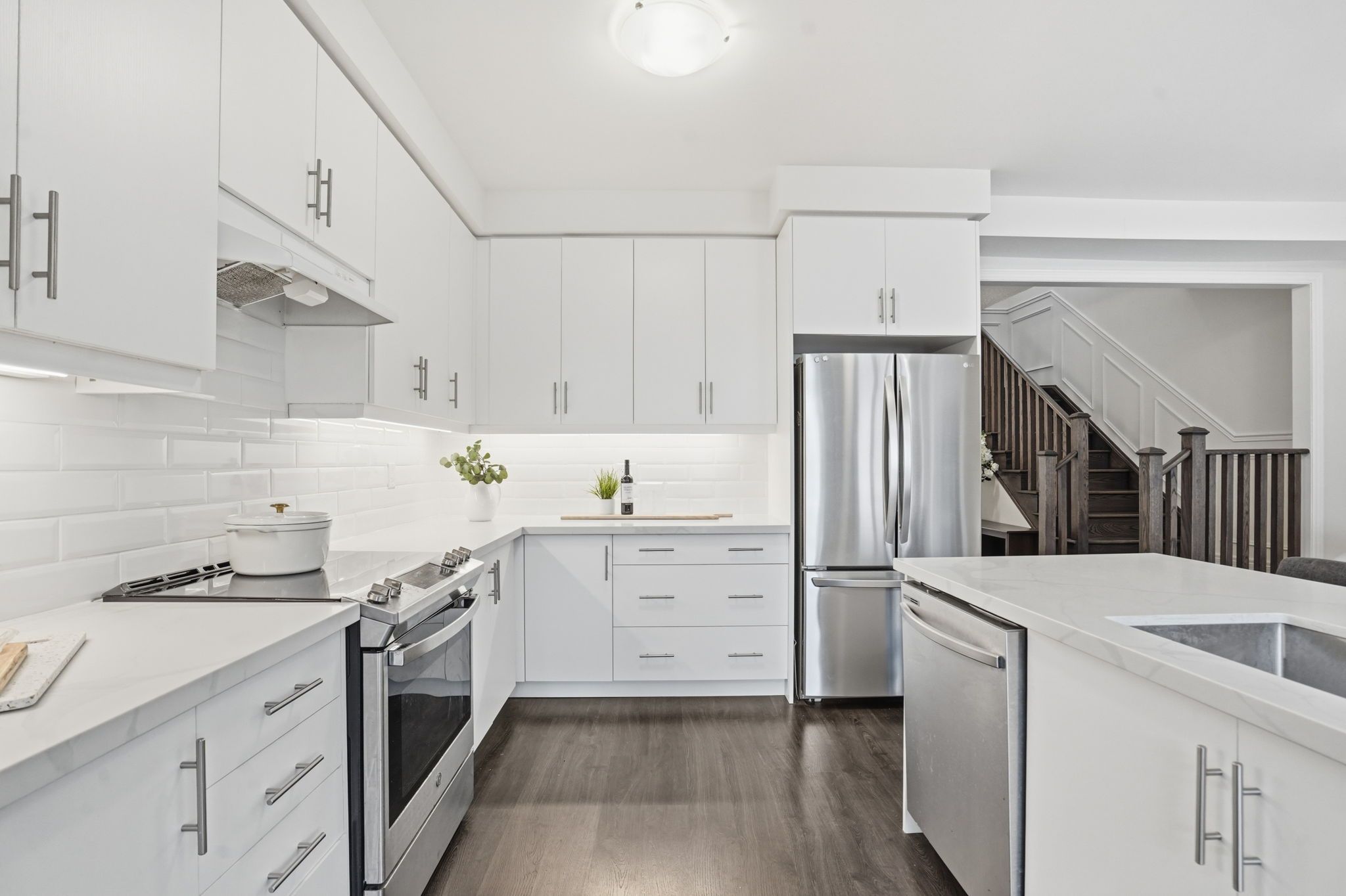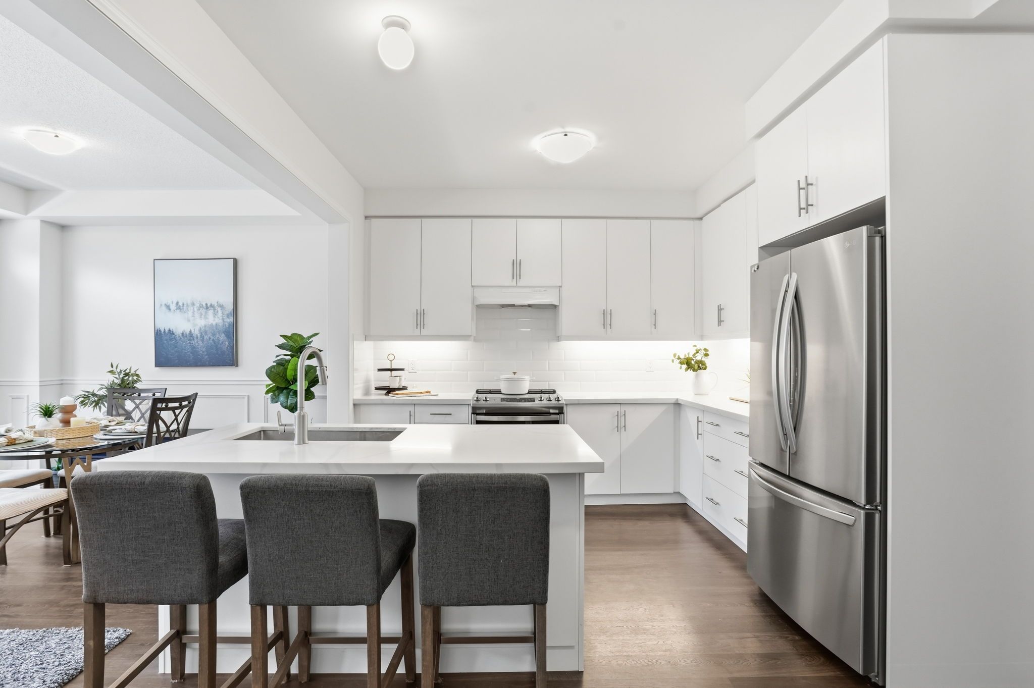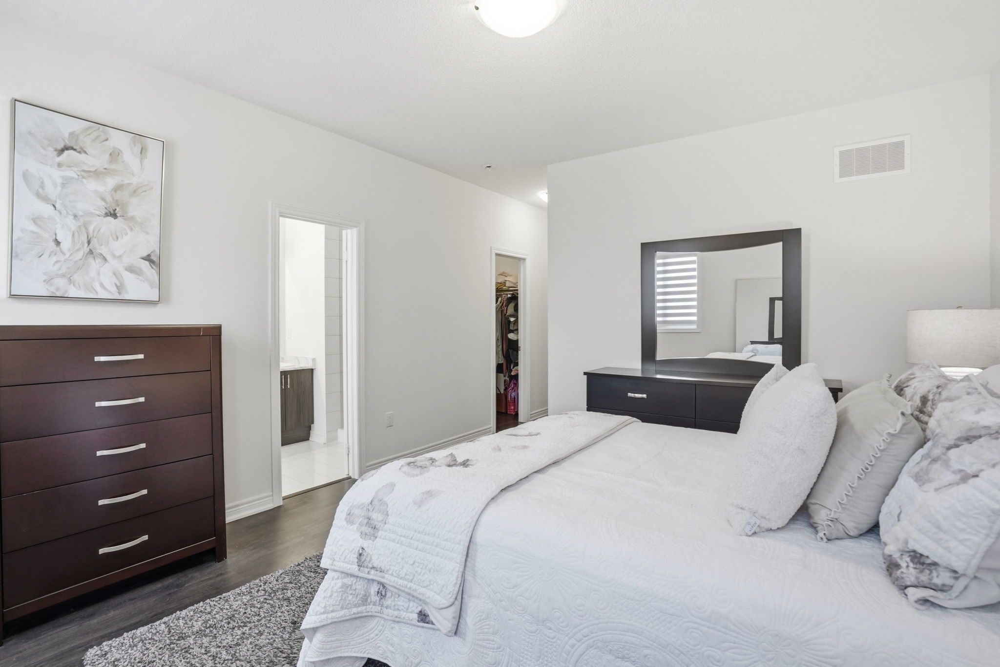 Welcome to this exceptional semi-detached residence in the highly desirable community of waterdown. Nestled in a family-friendly neighbourhood surrounded by scenic trails and parks, this thoughtfully designed home is than five years old and offers the perfect balance of contemporary elegance and everyday comfort. Boasting four spacious bedrooms and two and a half bathrooms, this home is ideal for modern family living. The open-concept main level is bright and inviting, featuring a generous great room that seamlessly connects to the dining area and stunning kitchen, perfect for both relaxed evenings and stylish entertaining. The modern kitchen showcases crisp white cabinetry, sleek quartz countertops and stainless-steel appliances, creating a timeless and sophisticated focal point. Upstairs, the sun-filled level offers four well-proportioned bedrooms, including a serene primary retreat designed for relaxation. The light-drenched primary suite features a spa-inspired ensuite complete with a walk-in glass shower, separate soaker tub and double sinks, combining luxury with everyday practicality. A beautifully appointed four-piece main bath serves the additional bedrooms with ease. Located in a thriving, community-oriented area close to parks, trails, schools and amenities, this is an outstanding opportunity to own a newer home in one of waterdown's most sought-after neighbourhoods. Rsa.