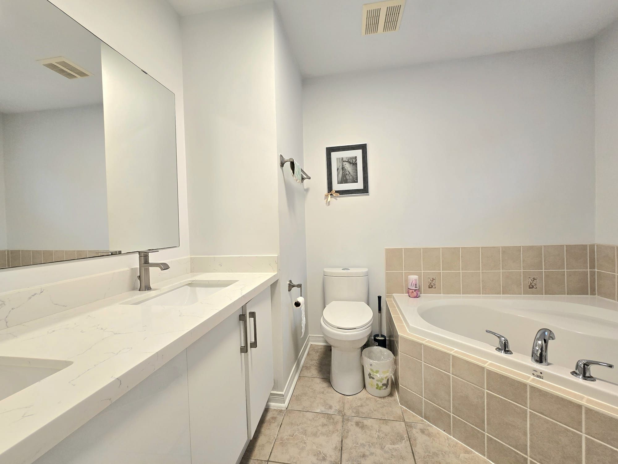 • Finished basement apartment with kitchen, living room, and bedroom.