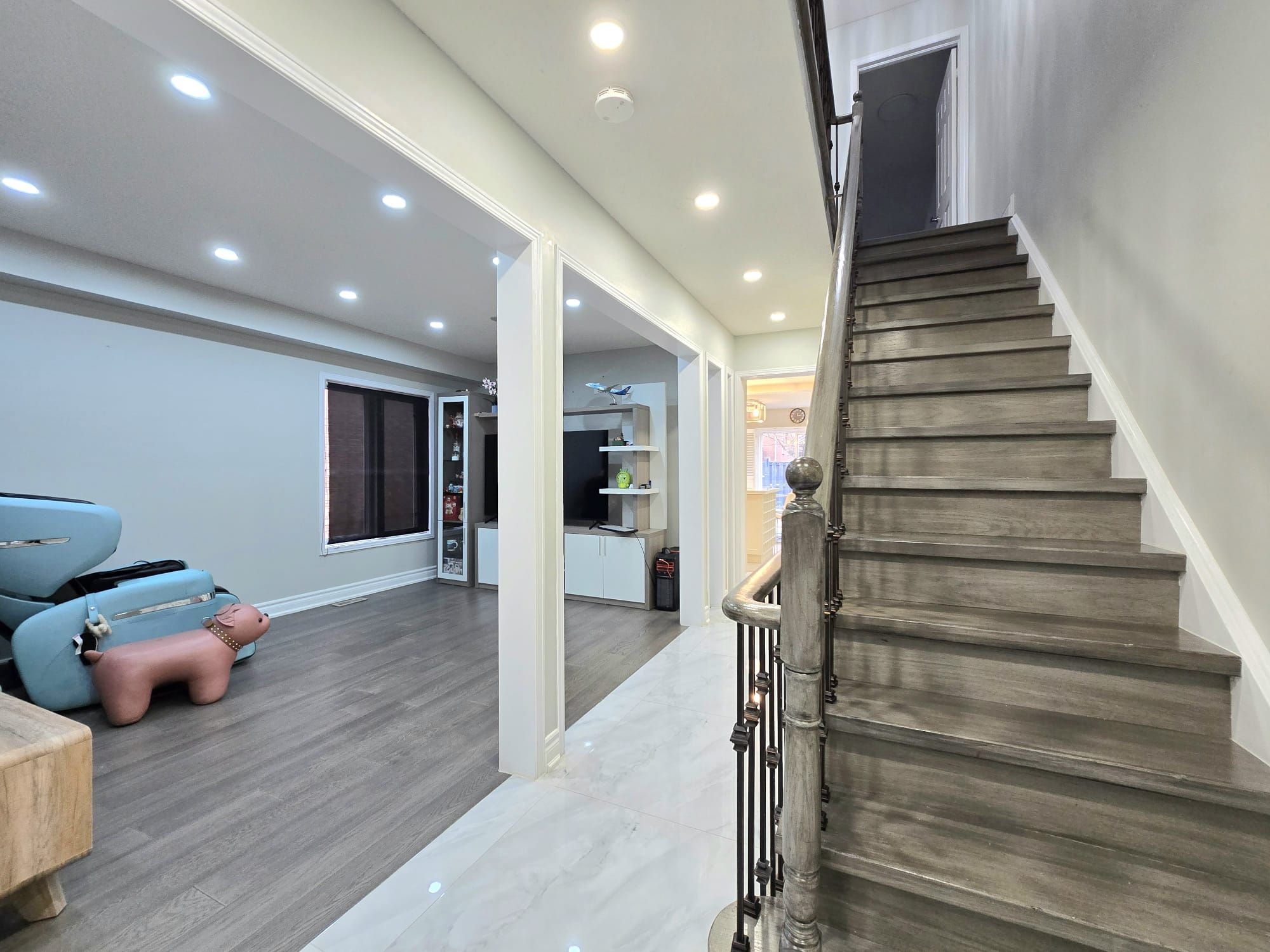 Spacious 4-bedroom semi-detached home in a highly desirable location! This beautifully upgraded property features a grand double-door entrance and has been fully renovated with high-quality finishes throughout. The modern kitchen is equipped with stainless steel appliances, a stylish centre island, and an open-concept design that seamlessly connects the main living areas-perfect for both everyday living and entertaining. Elegant wood flooring runs throughout the second floor and family room, complemented by a beautiful iron picket oak staircase that adds timeless charm. Both levels are enhanced with numerous pot lights, creating a bright and inviting atmosphere throughout the home. Step outside to a fully fenced, spacious backyard-ideal for relaxing, entertaining, or family activities. The driveway has been widened to accommodate two additional vehicles, and attractive interlocking enhances the curb appeal. The fully finished basement apartment offers excellent additional living space, complete with a second kitchen, a bedroom, a comfortable living room, and a 3-piece bathroom-perfect for extended family or potential rental income. Please note: the seller and listing agent make no representations regarding the retrofit status or legal compliance of the basement. Conveniently located close to top-ranking high schools, highway 407, the amazon warehouse, costco, and major shopping plazas. Situated in a rapidly growing and highly convenient community with a wide variety of amenities just minutes away.