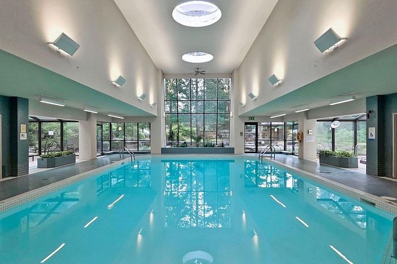 • Extensive amenities include indoor pool, gym, and tennis courts.
