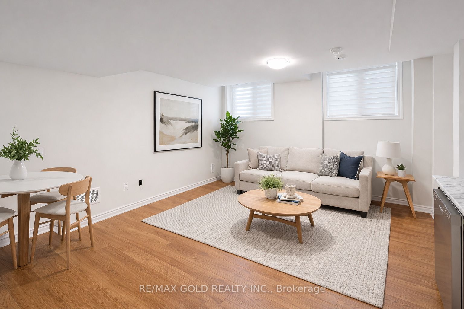 • Hardwood flooring throughout the living area adds warmth and style.