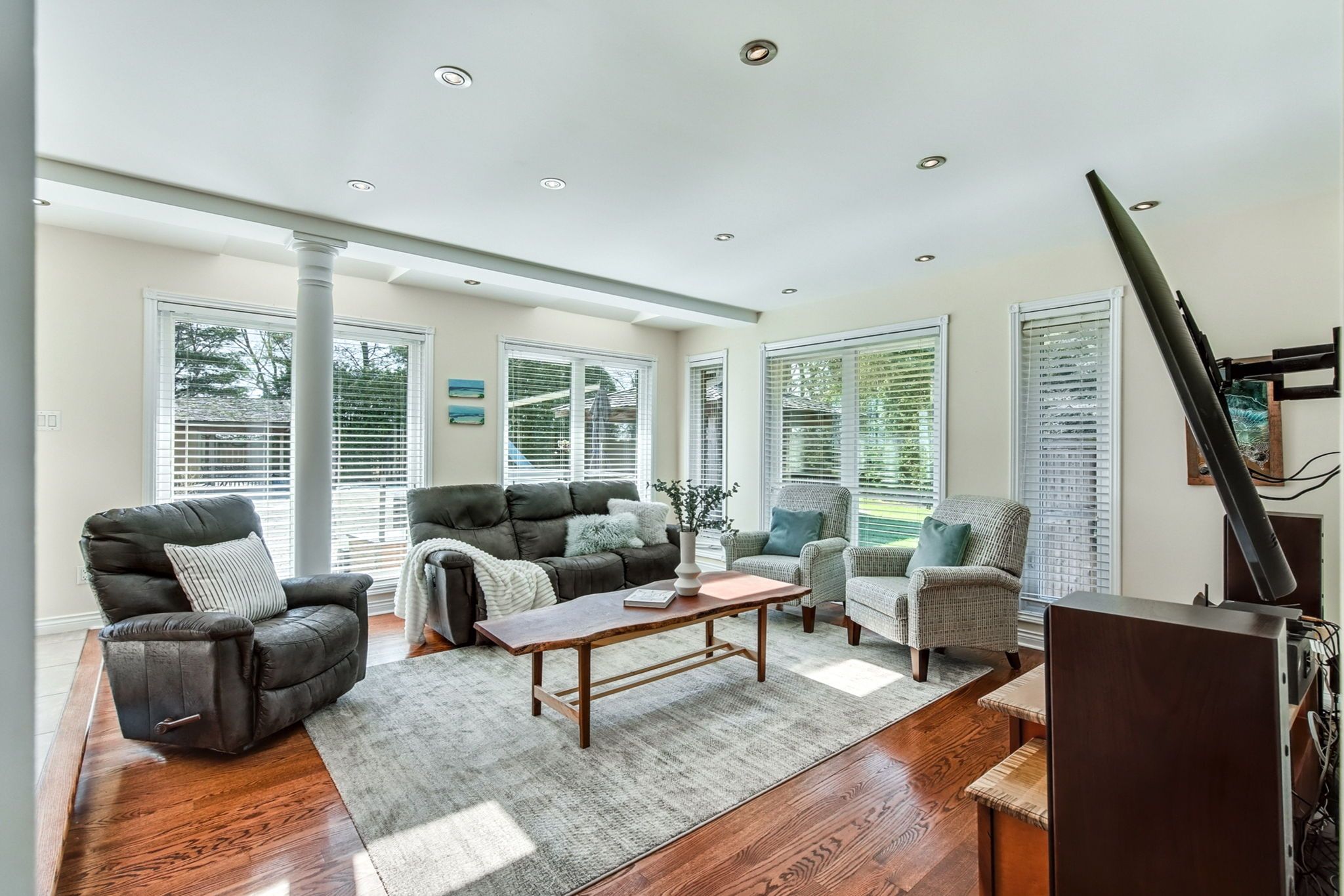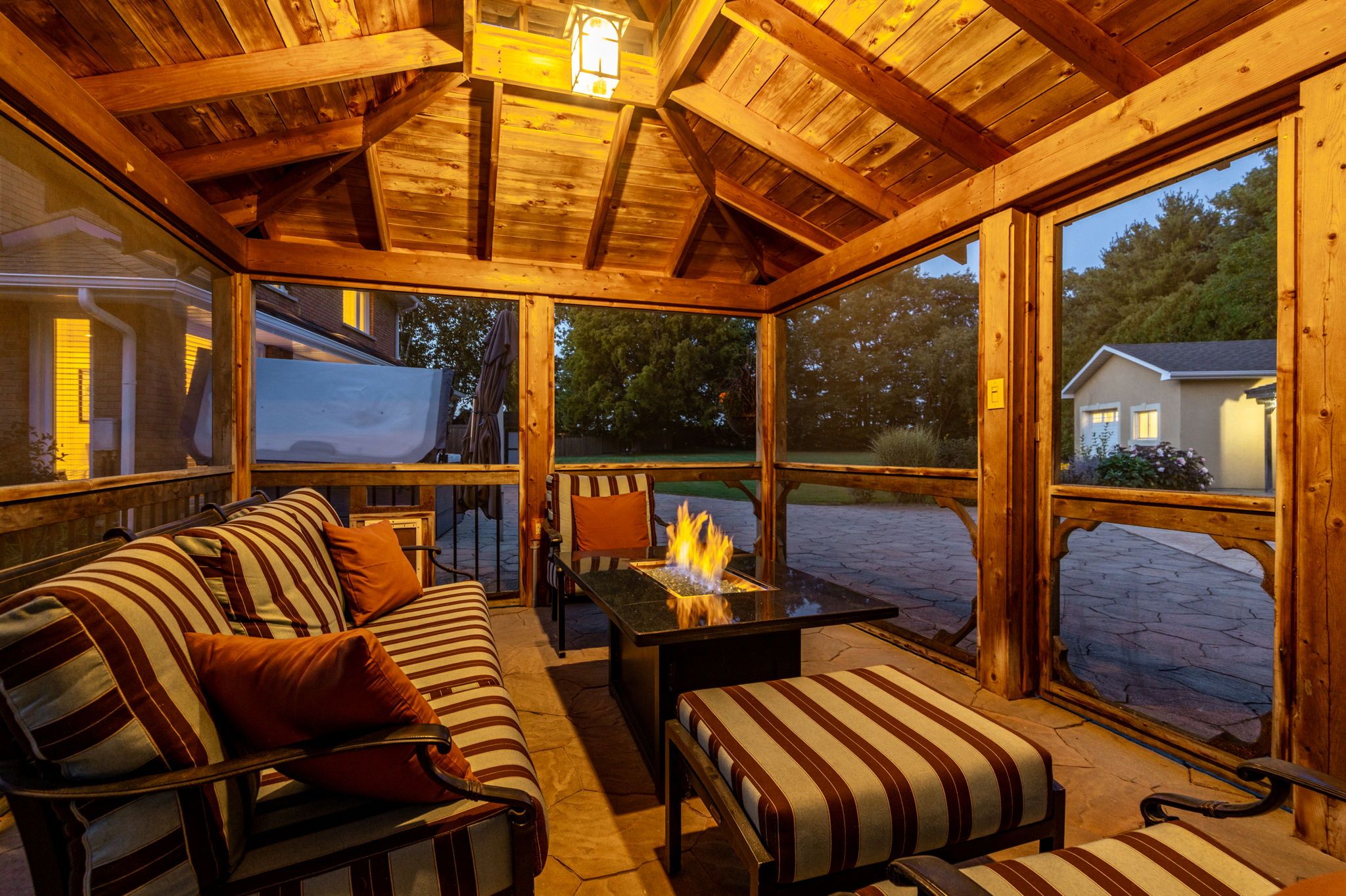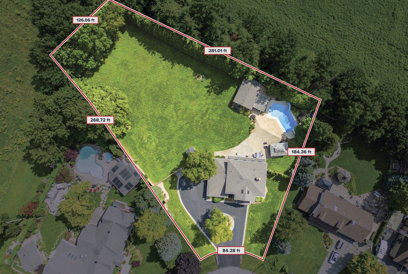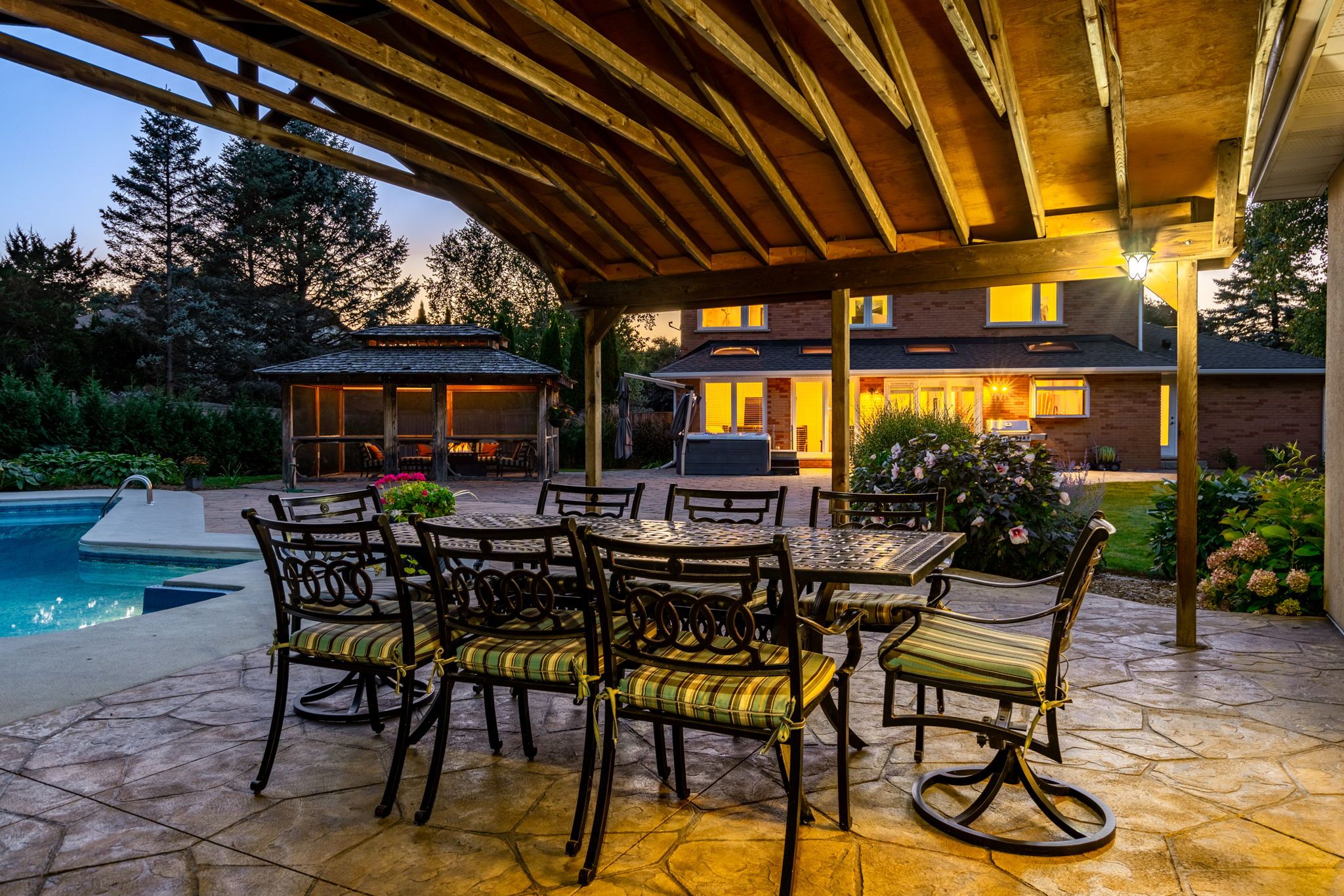 Situated on a quiet, beautifully manicured 0. 99-acre lot in one of the most exclusive enclaves in the area, this impressive two-storey brick estate immediately captures attention with its elegant curb appeal, circular driveway, and landscaped centrepiece. This home has it all, offering four bedrooms, four bathrooms and over 4000 square feet of living space. No rear neighbours, an inground pool, hot tub, workshop & gazebo with a natural gas fireplace outside. The backyard is flat, unobstructed and surrounded by trees. Plenty of useable space for entertaining, family games/events and a huge ice rink. Breathtaking foyer illuminated by cascades of natural light and a stunning centre staircase. Exquisite brazilian hardwood flooring flows seamlessly through the formal dining and entertainment spaces, where a natural gas fireplace adds a warm, ambiance ideal for both grand entertaining and intimate gatherings. The custom kitchen is a masterpiece of craftsmanship, featuring cherry maple oak soft-close cabinetry, under-cabinet lighting, heated floors, granite countertops, skylights, and a toe-kick central vacuum for effortless living. The step-down living room features large windows overlooking the private back yard, pot lights through-out and gleaming hardwood floors. The expansive primary suite impresses with two walk-in closets, custom built-in wall-to wall cabinetry, and an elegant ensuite featuring dual vanities and a walk-in shower. The fully finished basement features a spacious recreation room, a bathroom, a private office, an oversized storage room, and a separate walk-up staircase leading directly to the garage. Nestled in a prime location just five minutes from waterdown, this location offers unrivaled access to excellent schools, parks, trails, golf courses, and fitness centers, a rare setting where every lifestyle amenity is within easy reach, yet the surroundings remain serene and exclusive.