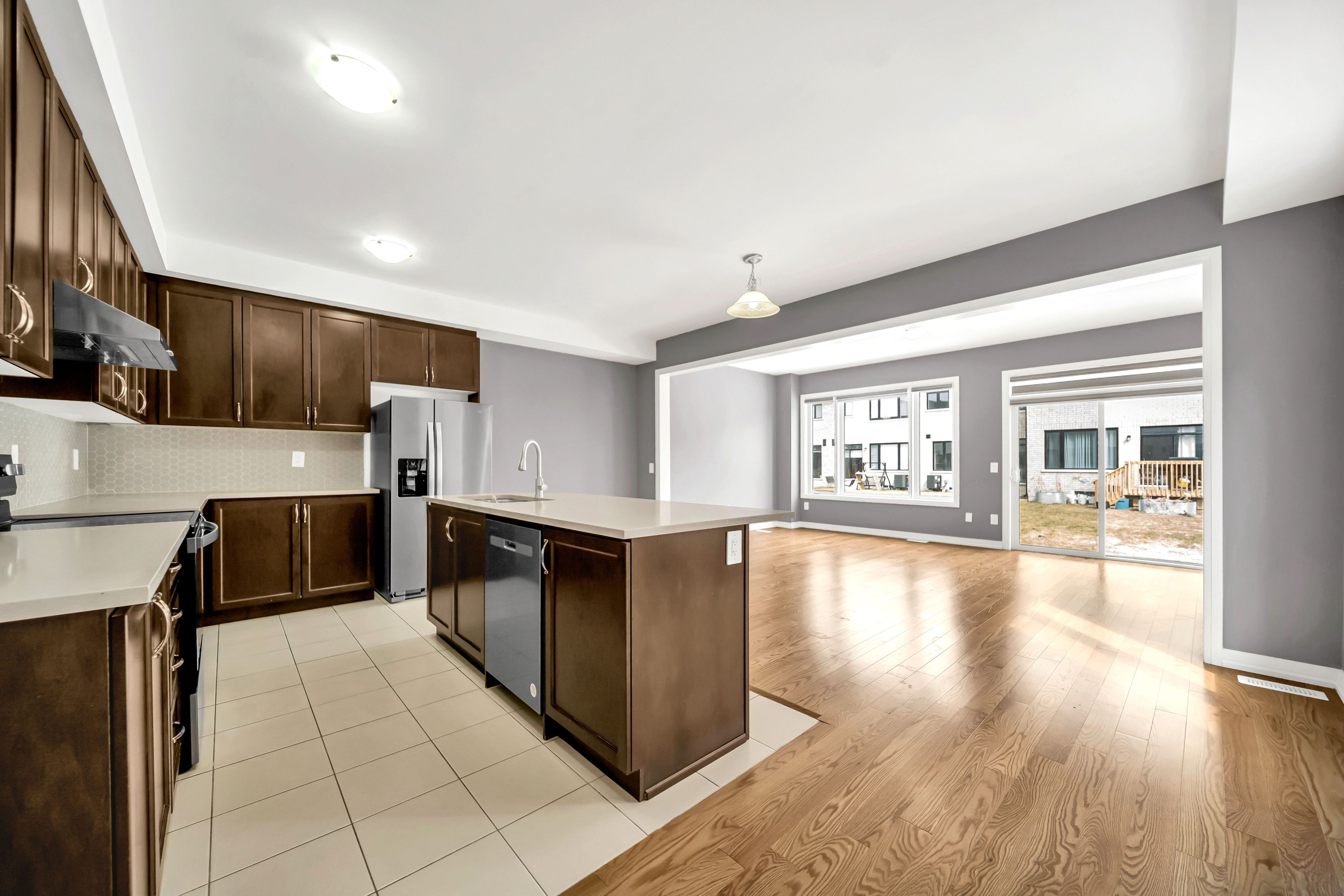 Welcome to 24 keenan street - beautifully maintained 2-storey end-unit freehold townhouse, with 4 spacious bedrooms, 3 bathrooms, ideally located just minutes from downtown lindsay. With easy access to shops, schools, parks, the hospital, and transit, this home offers both convenience and comfort in a growing, family-friendly neighbourhood. Step inside to soaring 9-foot ceilings and a bright, open-concept main floor that seamlessly blends the living, dining, and kitchen areas-perfect for entertaining or relaxing with family. The spacious, family-sized kitchen features stainless steel appliances, a backsplash, ample counter space, and stylish finishes. This home is thoughtfully upgraded with smooth ceilings and hardwood flooring throughout on both the main and second floors. The inviting great room is filled with natural light and features sliding doors that lead to the backyard. Upstairs, you'll find four spacious bedrooms and a 5-piece ensuite bathroom and walk-in closet in the master bedroom. All bathrooms are upgraded. Offering approximately 2,100 sq ft of above-grade living space, this home is designed for comfort and functionality. Additional features include a private driveway, garage, and backyard space-making it the perfect choice for families or professionals seeking modern living near the heart of lindsay.