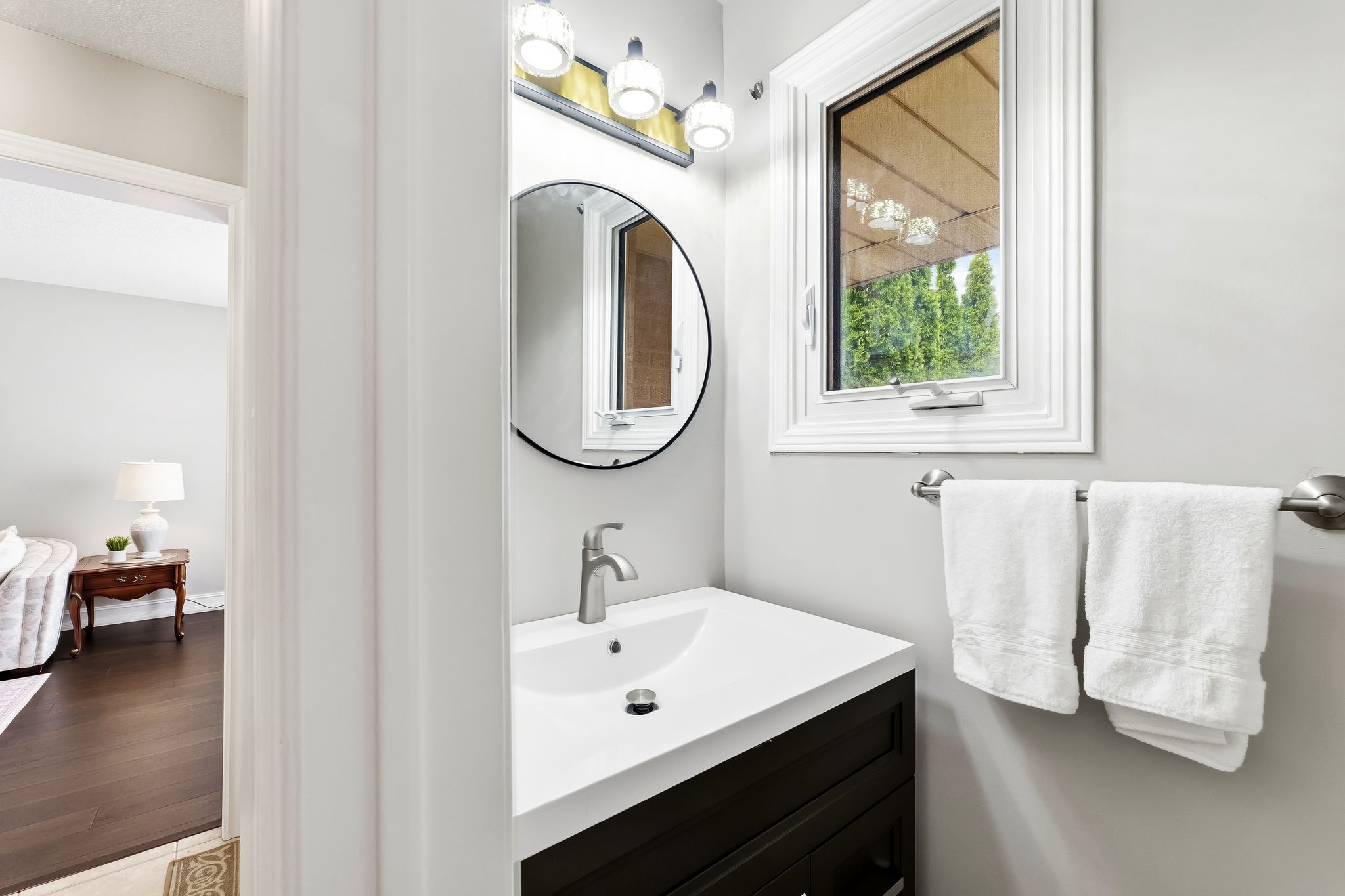 • Engineered hardwood floors on the main level add elegance.