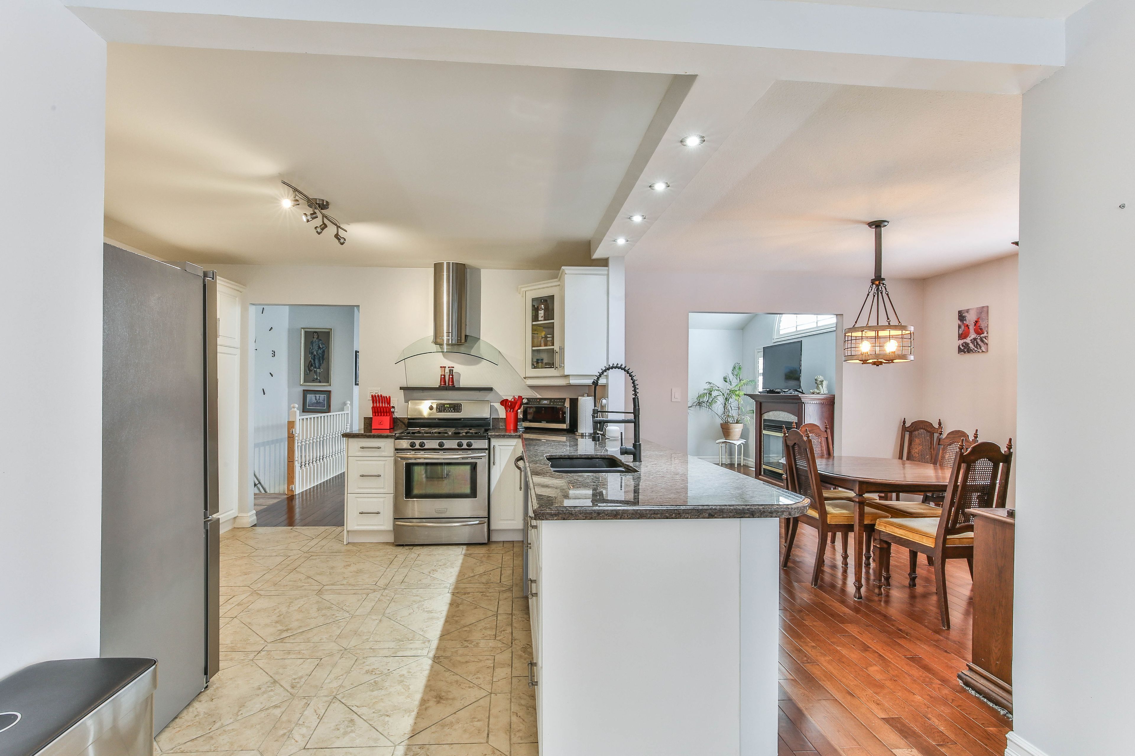 • Updated kitchen features granite counters, a gas stove, and large eat-in area.