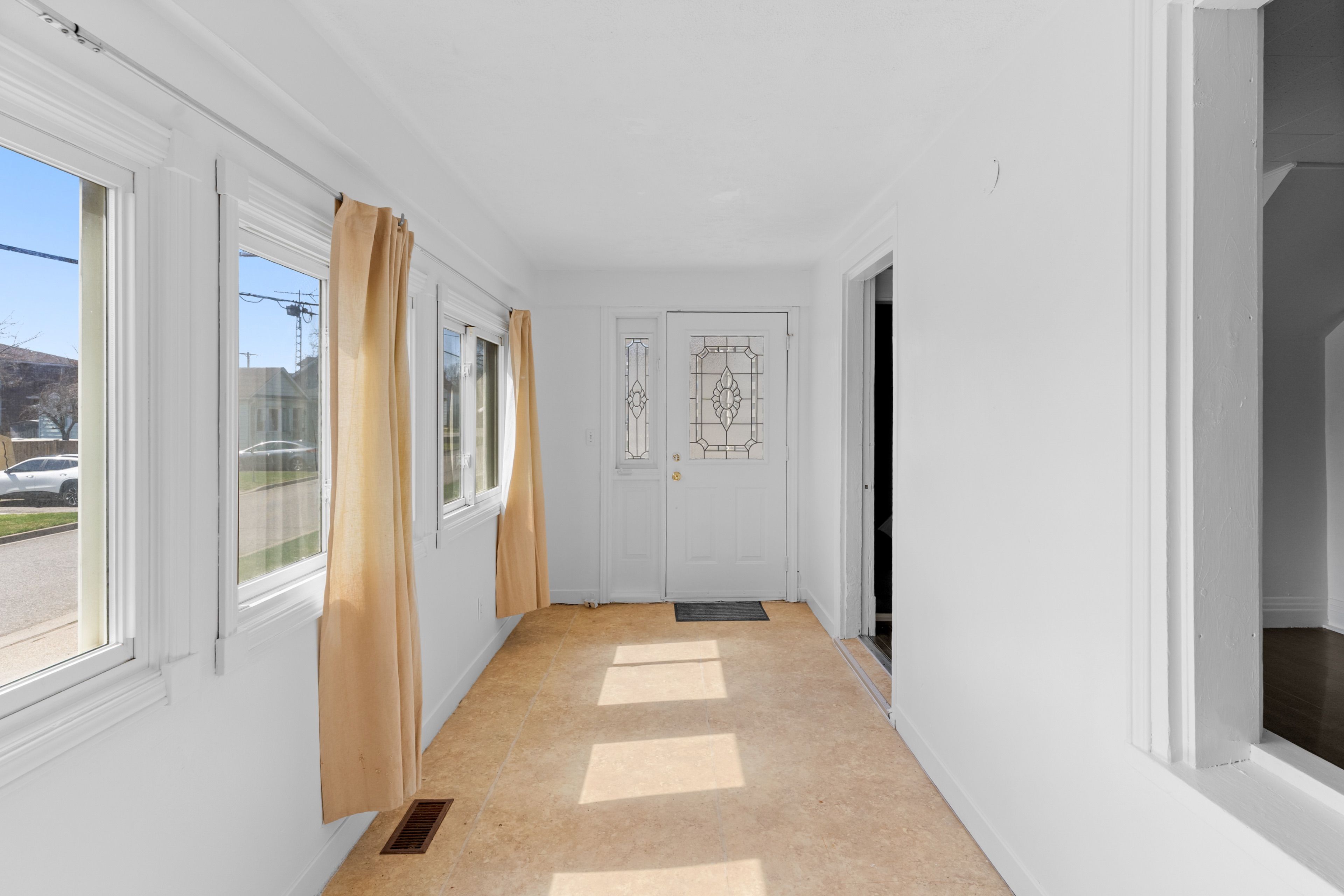 • Versatile enclosed porch great for office space or sunroom.
