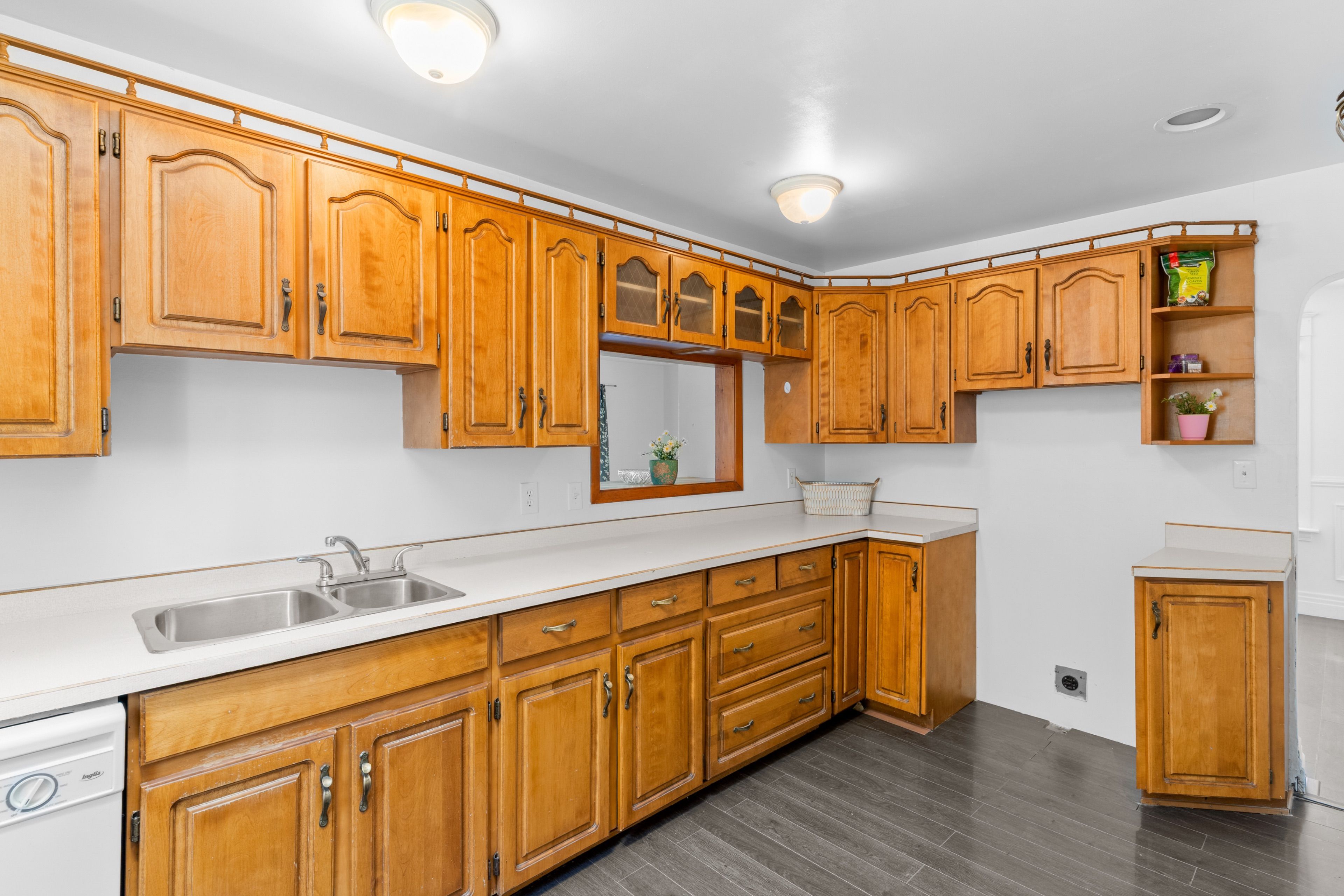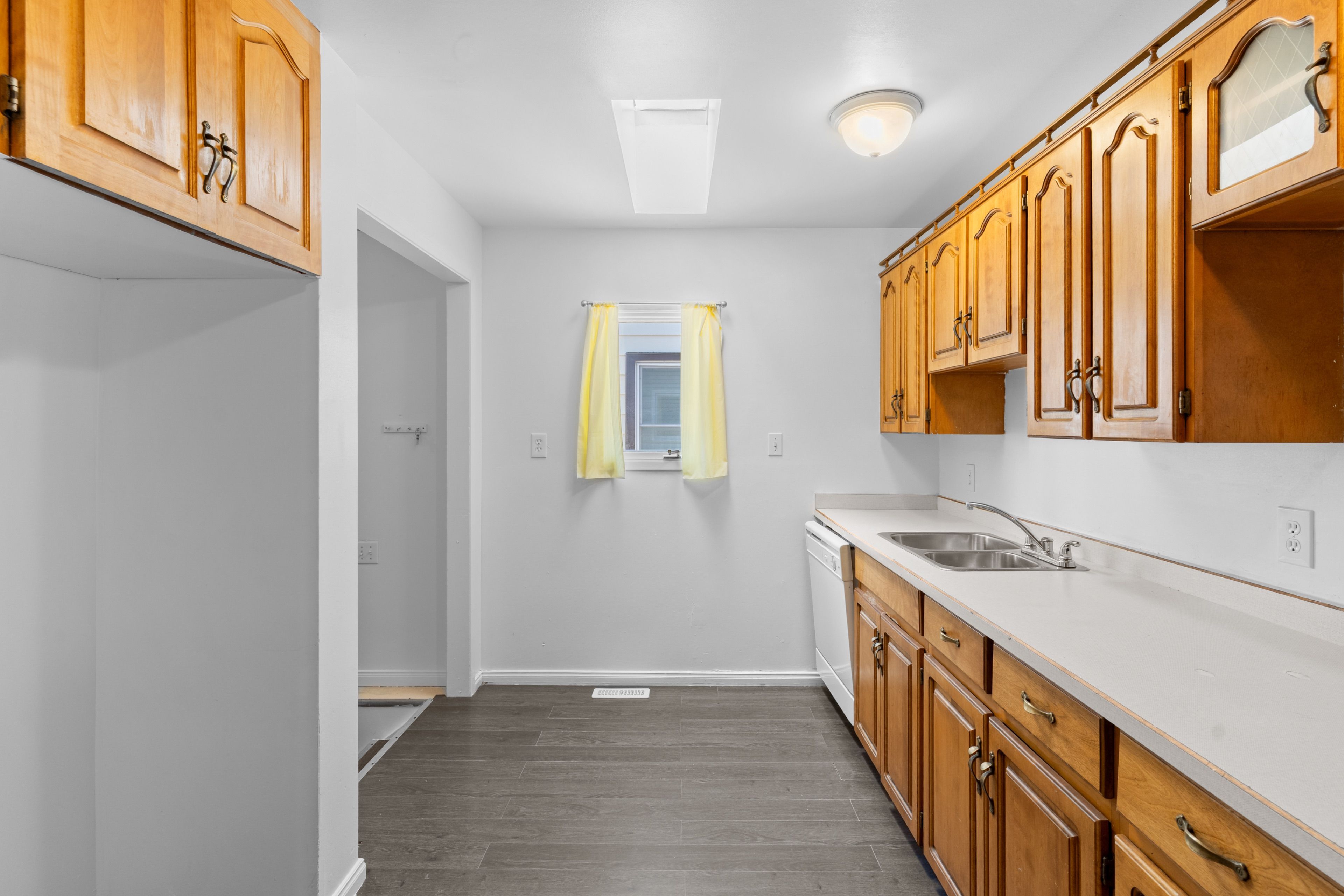 • Spacious main floor with newer laminate flooring and oak kitchen.