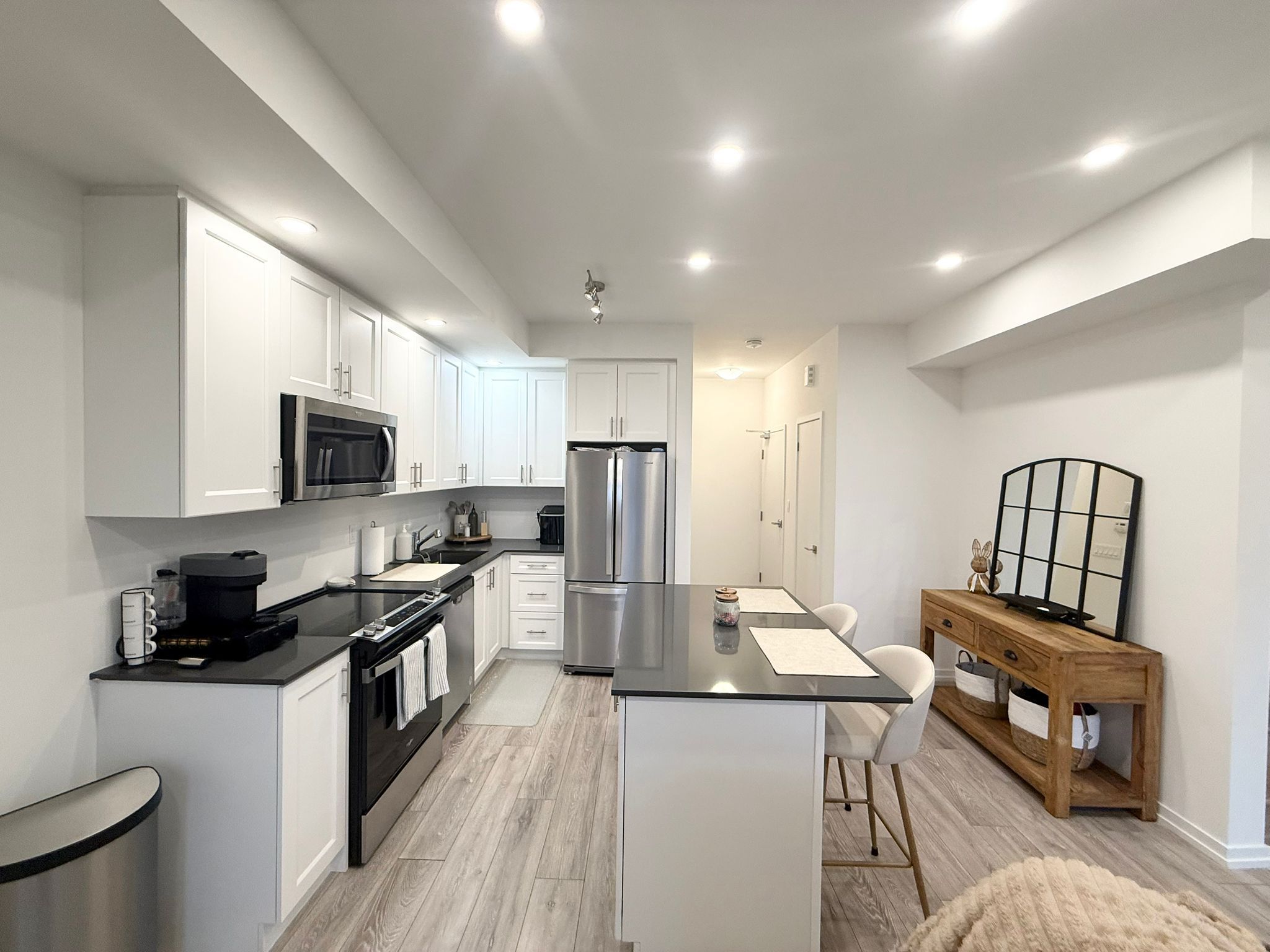 • Bright south-facing stacked townhome with natural light throughout.