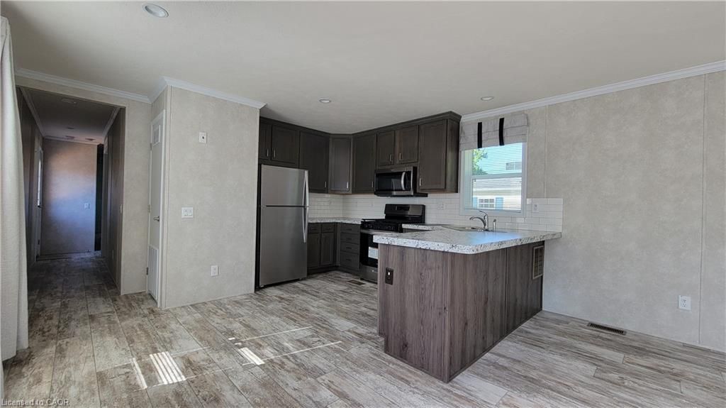 Brand new home in the beverly hills estates. Beautiful, year-round, all-ages land lease community surrounded by forest and tranquility. Centrally located between cambridge, guelph, waterdown, and hamilton. 24 macpherson cres. Is a 2-bedroom, 1-bathroom bungalow on a 38' by 113' lot, providing plenty of space to enjoy inside and out. All new finishes throughout; all new kitchen appliances, new furnace and a new 12' x 30' deck! Community activities include darts, library, children's playground, horseshoe pits, walking paths, and more. Residents of beverly hills estates enjoy access to the community's vibrant recreation centre, where a wide variety of social events and activities are regularly organized, fostering connections and friendships among neighbours. From dinners and card games to dances and seasonal parties, there's always something going on. Amenities include billiards, a great room, a warming kitchen, a library exchange, and darts. Outdoors there are horseshoe pits, walking trails, and a children's playground. The community is also conveniently located near several golf courses, such as pineland greens, dragon's fire, carlisle golf and country club, and century pines. Additionally, residents have easy access to numerous parks, trail systems, and conservation areas, providing plenty of opportunities for outdoor recreation.