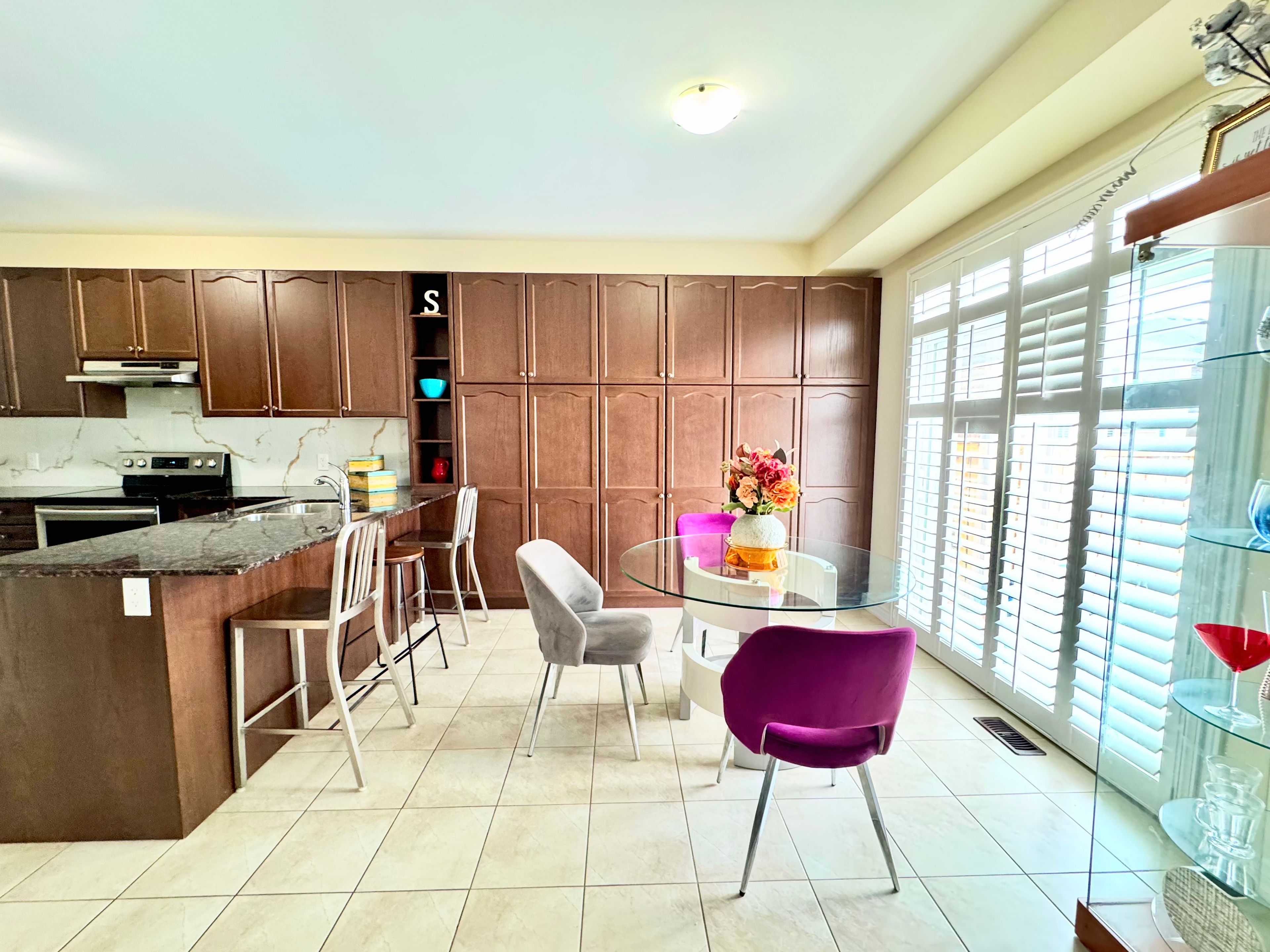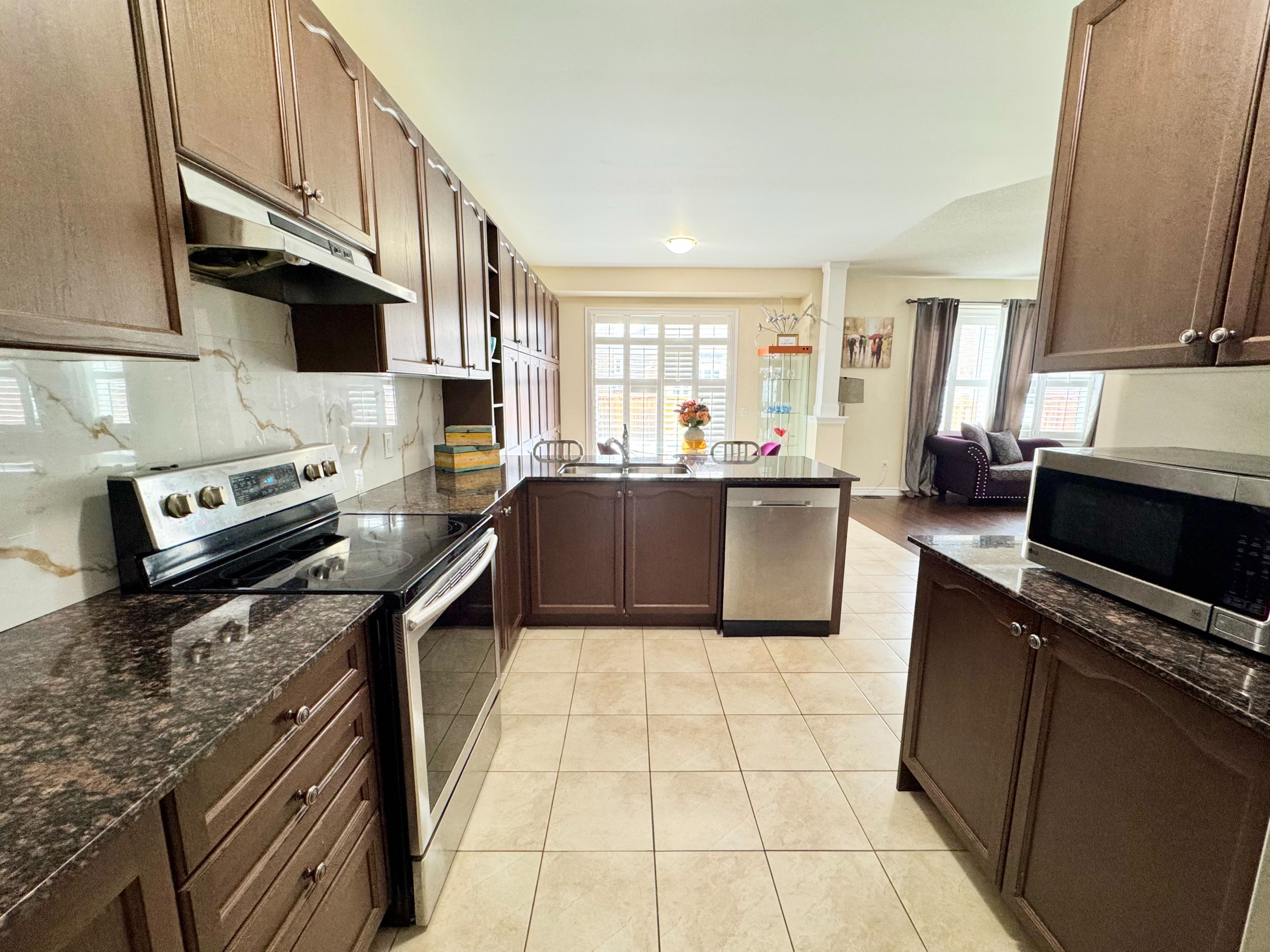 • Gourmet kitchen with granite counters and built-in pantries for convenience.