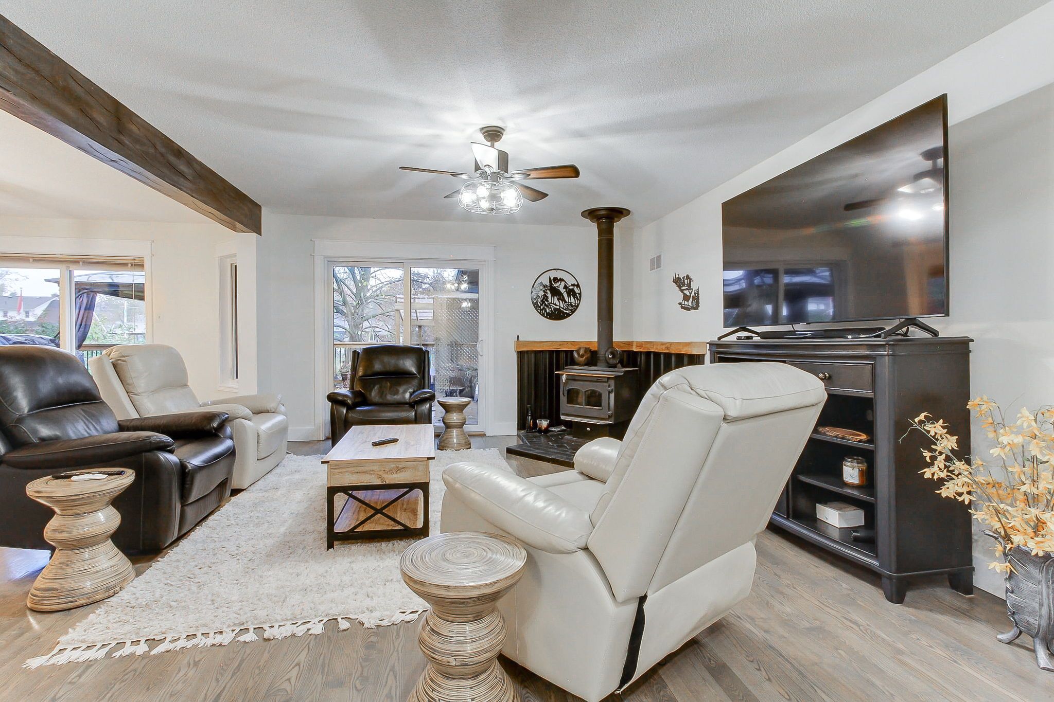 Rare ultimate package!! Waterfront brick bungalow with walk-out basement--aprox 4000sq. Ft living space! A home for entertaining!! 3 large patios overlooking the water! Three bedrooms and 2. 5 bathrooms, large kitchen, large dining room, and beautiful great room, plus office on main floor . Large dock, covered hot tub, stock tank pool for cooling down on those hot days. Primary bedroom with walk-out! Beautiful hardwood/ceramics throughout. A wood burning stove sets the mood adding ambience on snowy nights. Truly a peaceful and quiet retreat. This exceptional property can also be multi generational --if you want it to be!! Basement boasts a 2 bedroom walk-out apartment. Plus for the owners use--at present--an exercise room and beautiful guest suite with separate 3 piece bathroom. Extra insulation and drywall in basement provide privacy. Extra 100amp panel . 2 propane fireplaces. Majestic trees and the waterfront provide stunning views from most windows. A meticulously cared for home with 6 bedrooms and 4. 2 bathrooms . Yet it is spacey and not chopped up !! And wait until you see the bunkie(games rm/ boys room/guest-suite), all pined -out ,wired and insulated, rounding out this property as truly unique!! Rarely will you find a big bungalow like this on water and move-in ready !! Flexible closing and could also sell turn-key if desired. Great investment property! Come live your dream on sturgeon lake!! Property located by a vacant lot with convenient boat launch!
