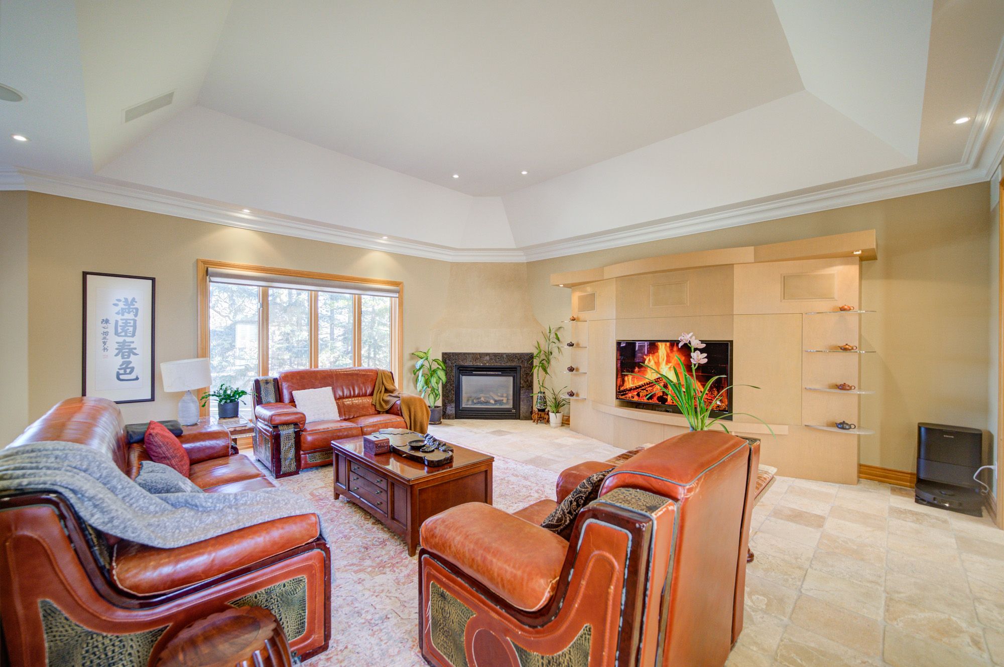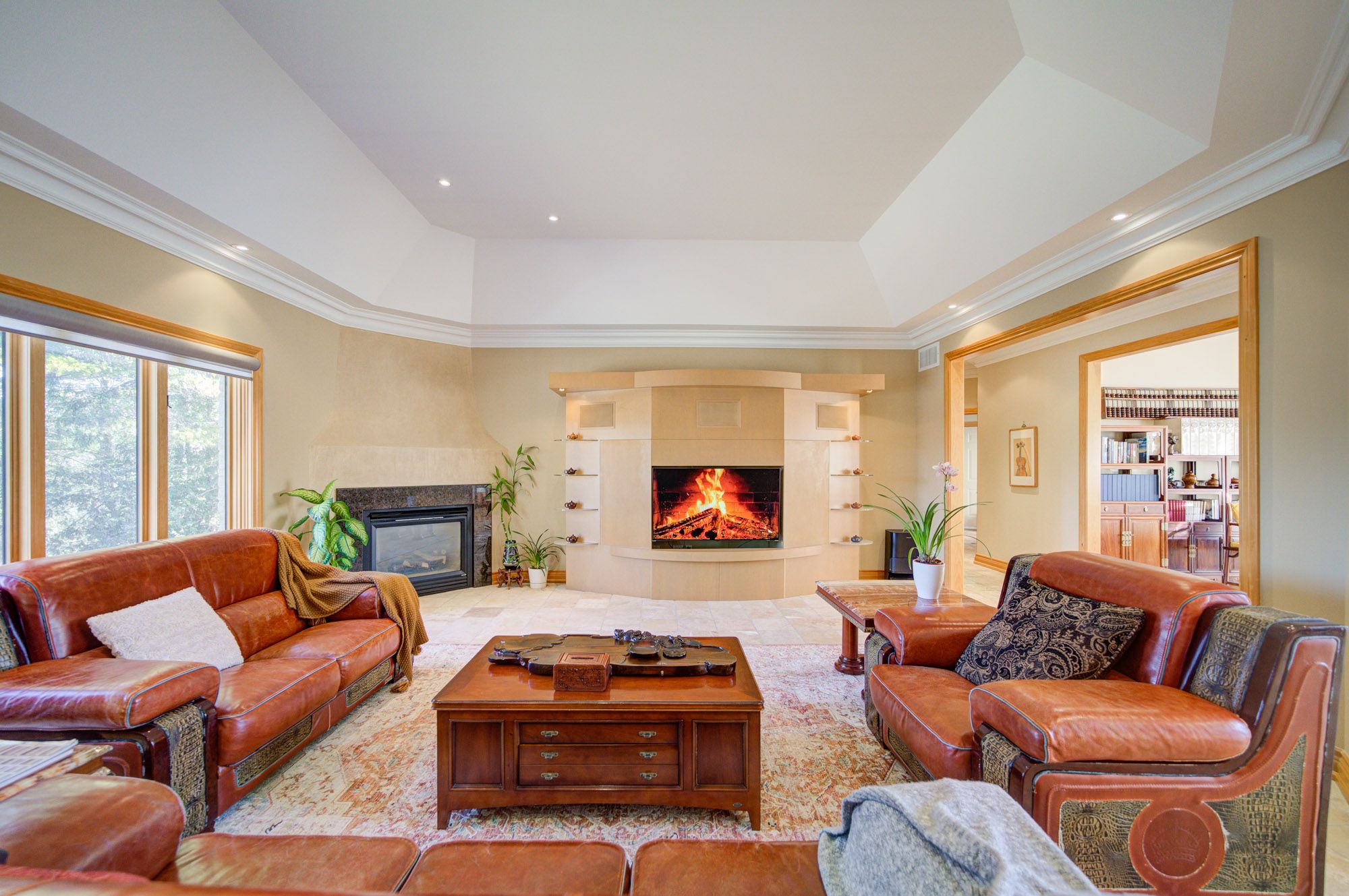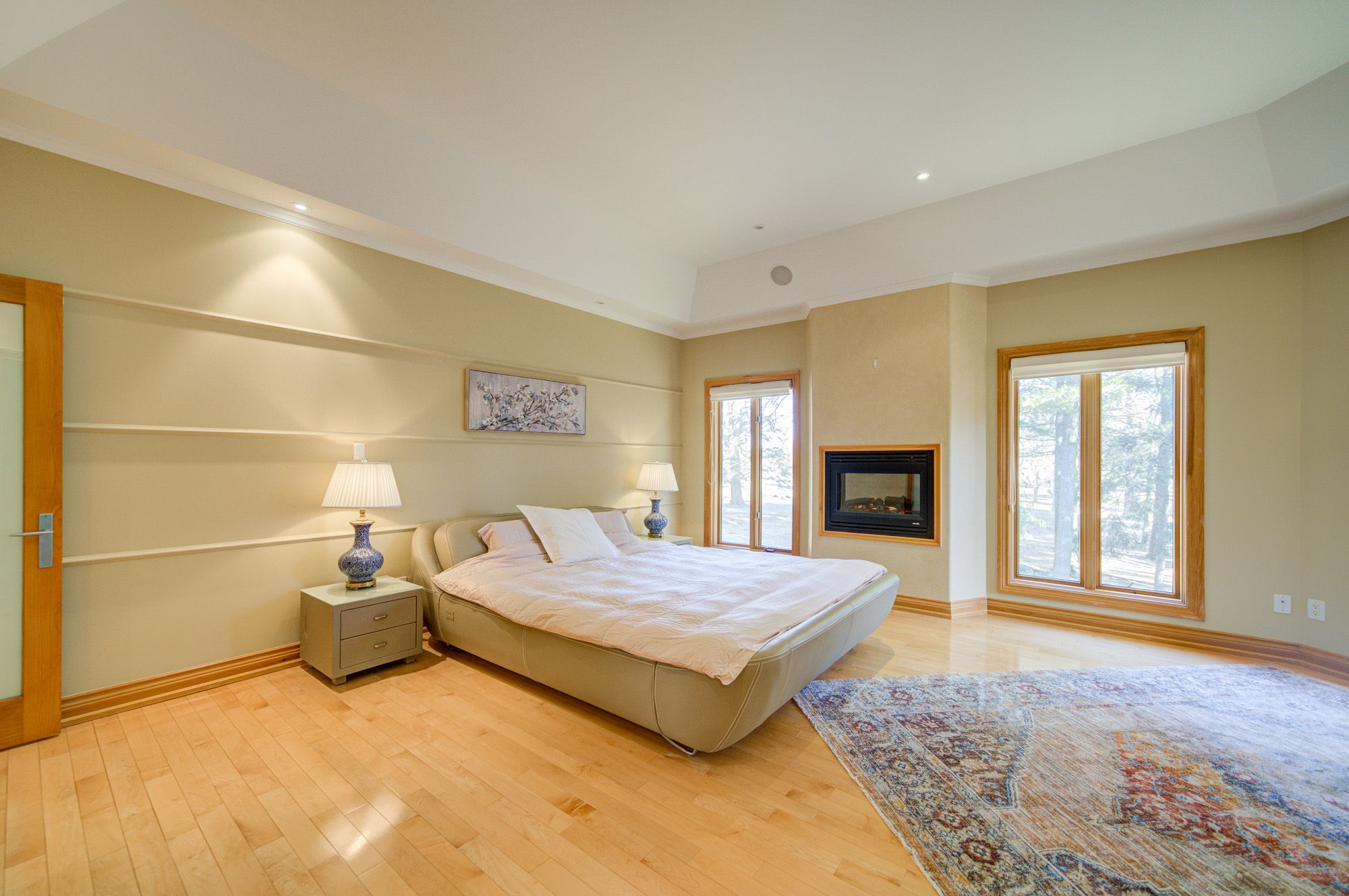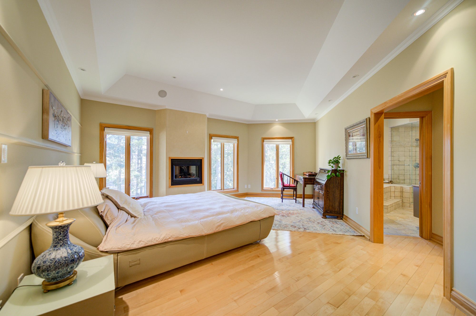 • Primary bedroom with fireplace, luxurious ensuite, and spacious walk-in closet.