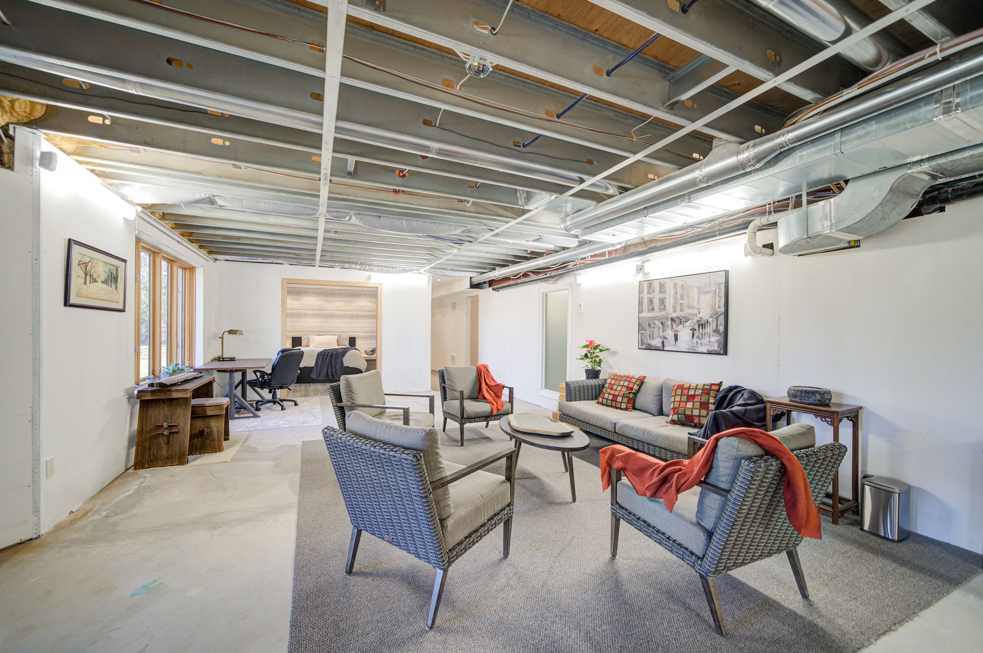 • Partially finished basement with potential for office, theater, or fitness center.