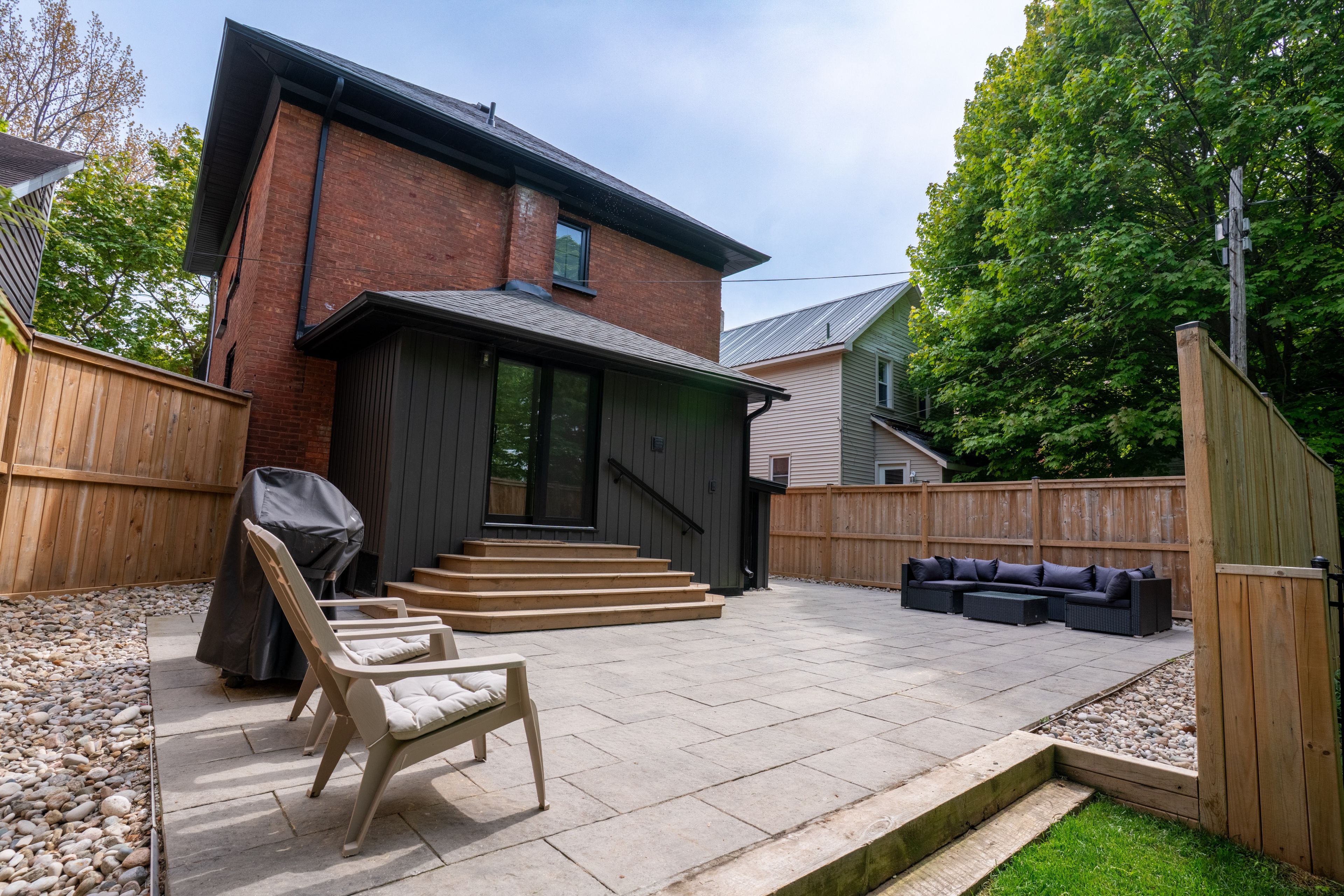 • Easy access to a fenced yard, deck, and hardscaped patio.