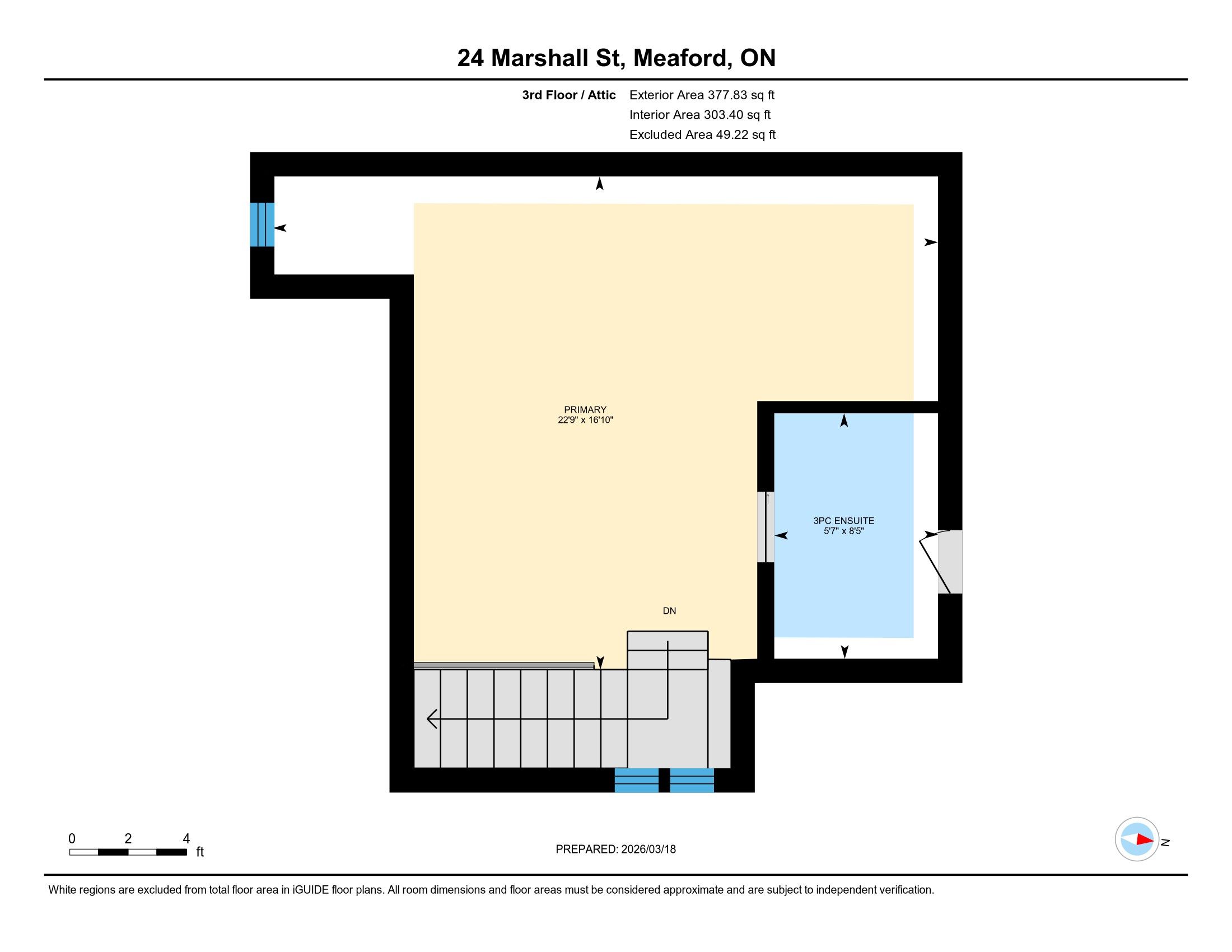 Fully renovated red brick beauty featuring 4 bedrooms plus den and 2 and a half baths. Main floor is an entertainers dream, with open floor plan and seamless flow between spacious principal rooms with 9' ceilings. Main floor 2pc bath and laundry room with easy access to the fully fenced rear yard, deck and hard scaped patio - perfect for hosting outdoor gatherings. Second floor features three generous bedrooms, a modern full 5pc bath with a flex space, perfect for home office - leading to the second storey balcony. Third floor is host to the primary bedroom, a secluded space for genuine relaxation with custom 3pc ensuite bath. Careful consideration has preserved the traditional solid wood pocket doors and main entrance staircase, trims and mouldings while applying the conveniences of a new kitchen, stainless steel appliances, baths, all windows, electrical, gas fire place, flooring and everything in between. As an added bonus, a separate detached fully insulated garage (18' x 24') across the street at 33 marshall st, provides many opportunities for parking, a home gym/office space or storage. A short stroll to many restaurants and shops, meaford hall and local hiking trails along the big head river, the famous beautiful joe park and georgian trail linking meaford to thornbury and collingwood. 20 minutes to ski resorts and collingwood to the east and 20 minutes to owen sound to the west.