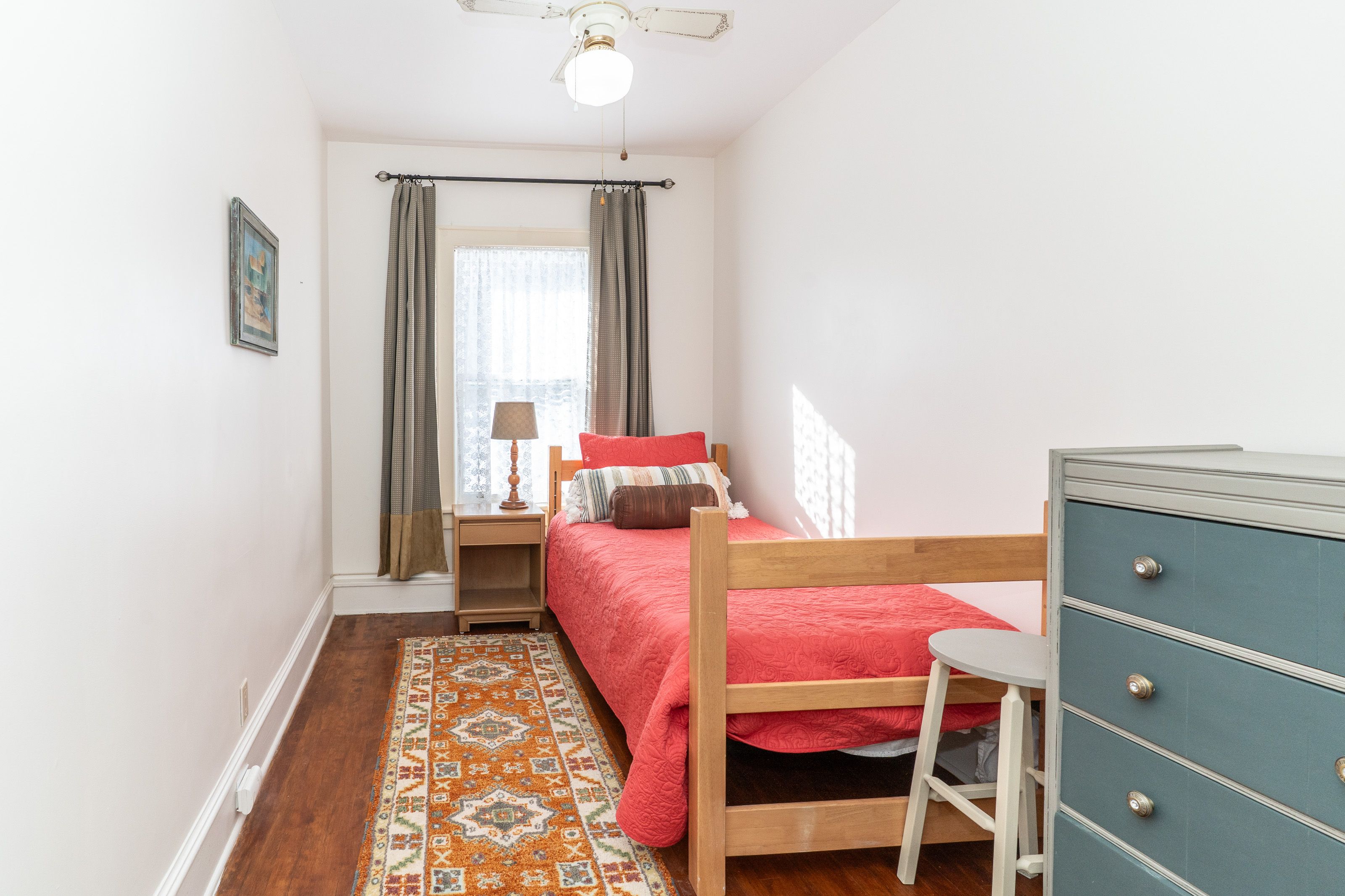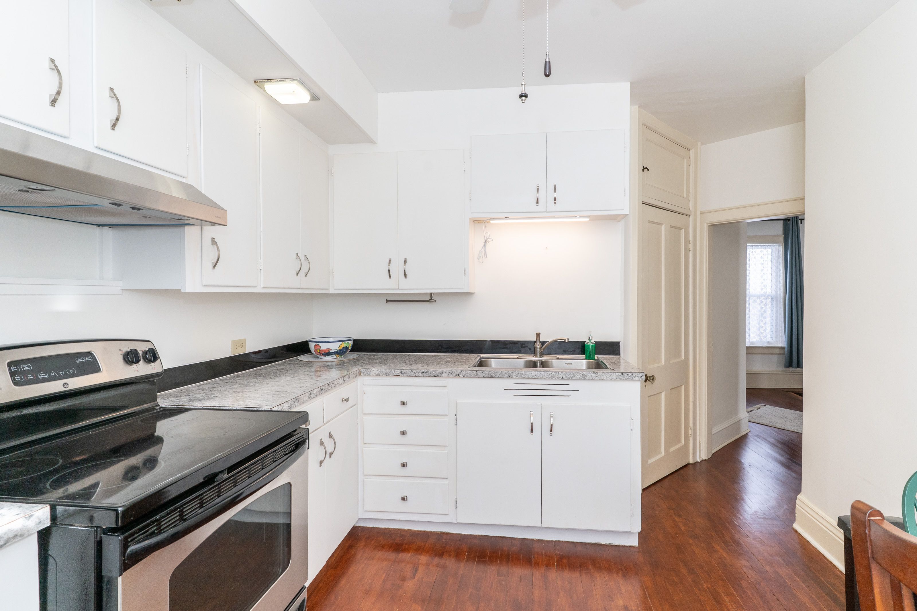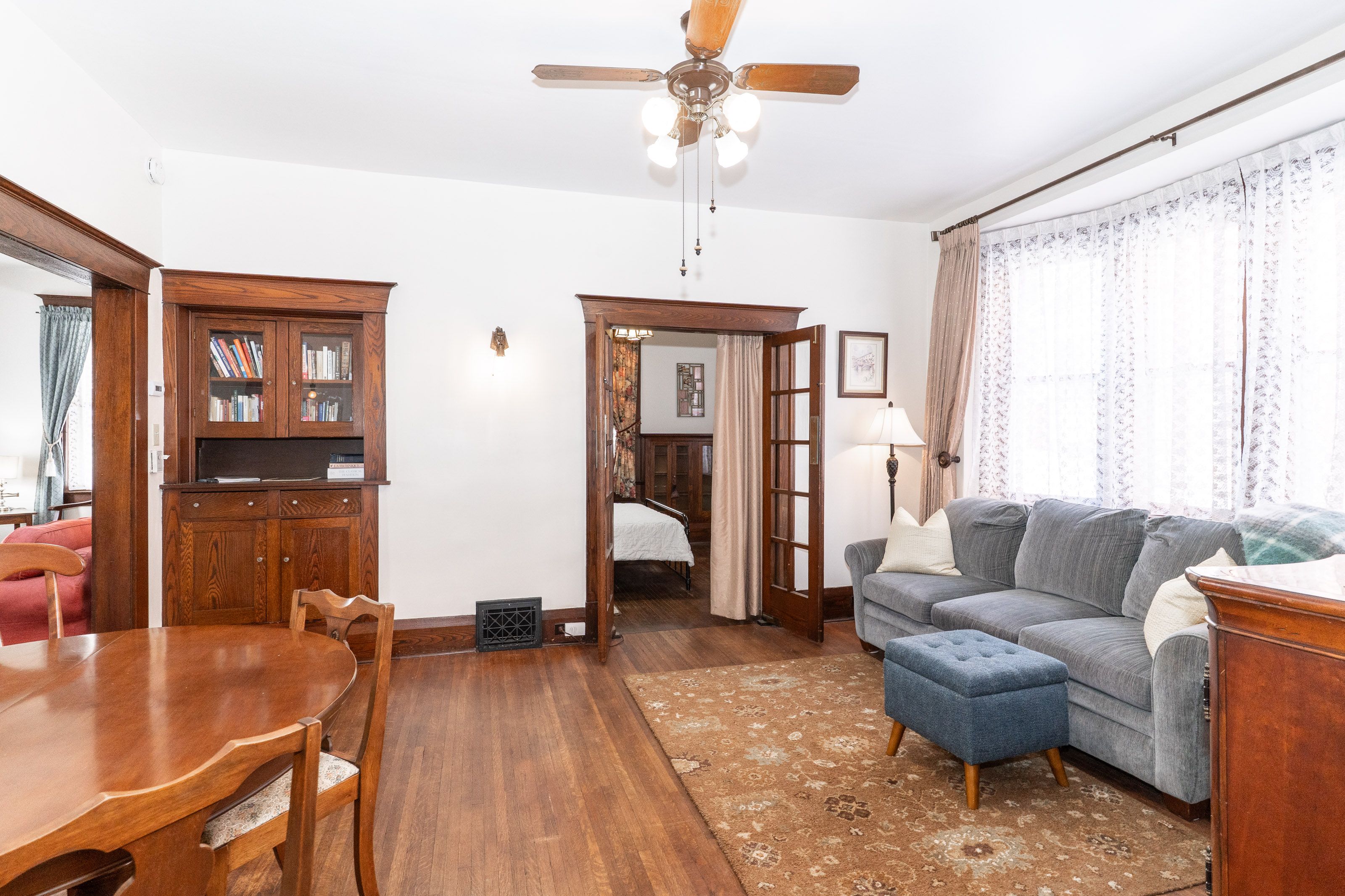 • Spacious layout with 9' ceilings, antique built-ins, and gas fireplace.