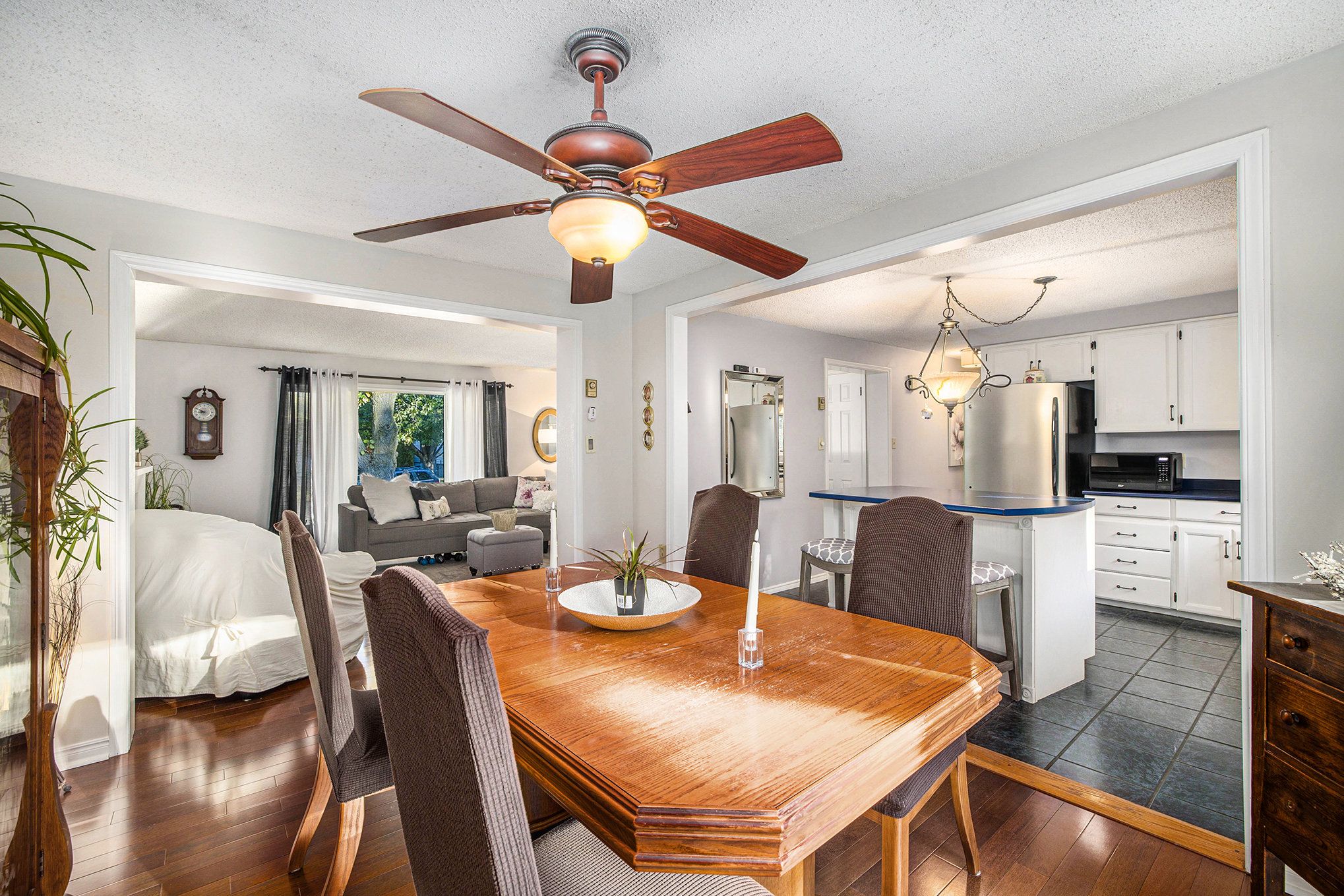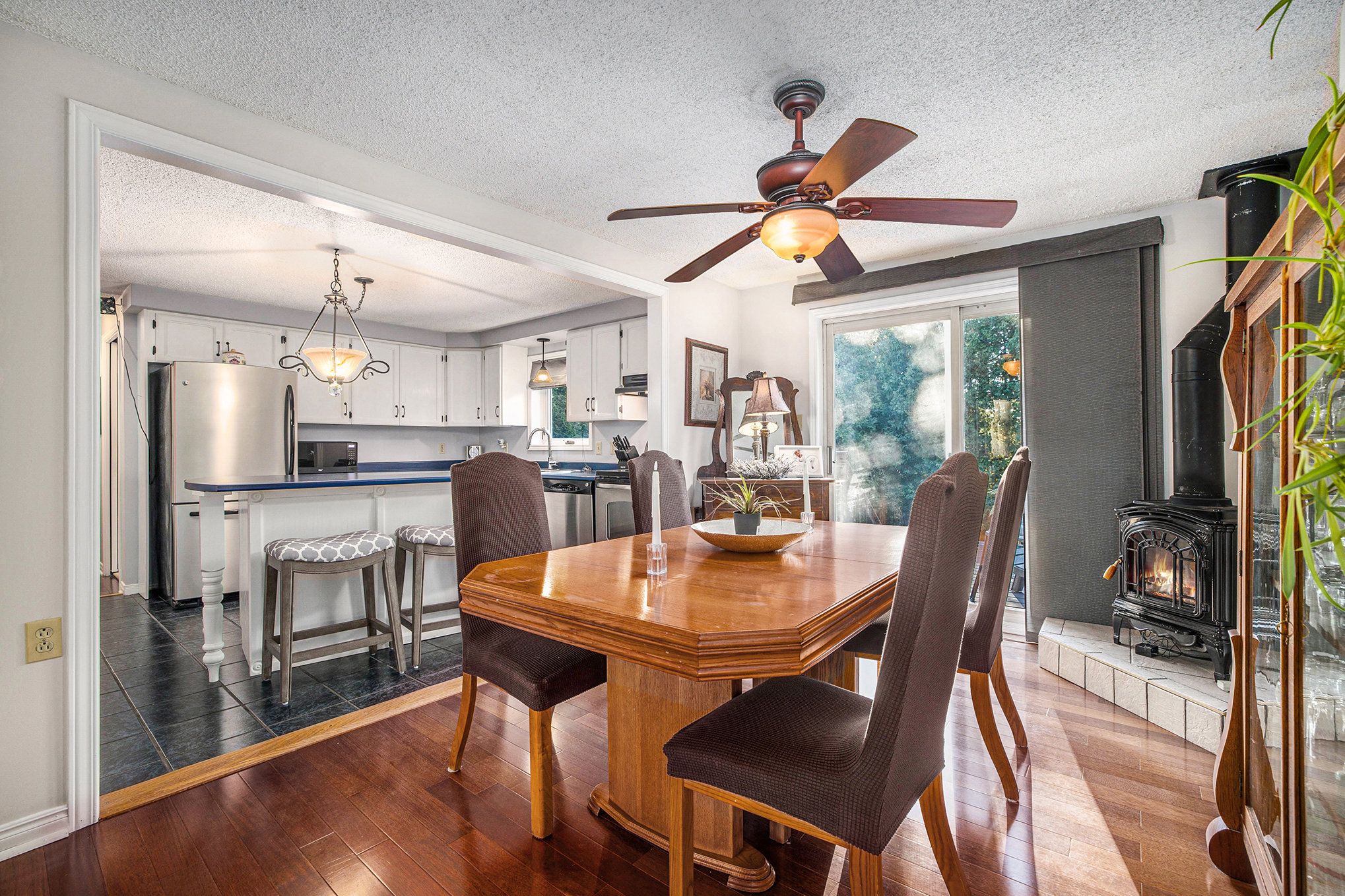 This impeccably maintained home shows pride of ownership from the tasteful landscaping in front and back yards to the gleaming engineered hardwood through out most of the main floor. The home is located in a well established family friendly neighbourhood & only minutes to amenities and shopping. As you enter the foyer you have access to both the main level and lower level. Step up to the main level where you are greeted with an inviting living room that overlooks the front yard, next you flow into the dining room with sliding door to the back deck and a cozy corner free standing natural gas stove, move into the adjoining bright and airy kitchen with centre island, just down the hall is the laundry/2 piece bath with access to the back deck. You have a gorgeous 4 pc bath on this level as well as the relaxing master with double closets and 2 additional bedrooms. The lower is home to an oversized family room with a stunning natural gas fireplace, adjacent to the family room is a games area or home gym, just next door is the 4th bedroom, there is an additional room that could be utilized as another bedroom or home office. The back yard is fully fenced and quite private making it perfect for family dinners on the deck or relaxing on the green space and watching the little ones play. It's time for the next generation to raise their family at this wonderful home. With 37 yrs of ownership there have been many updates over the years which include: roof shingles 8 yrs appx, l/l nat. Gas fireplace with 60,000 btu 2 yrs appx., ductless heating/cooling pump 3 yrs appx., auto garage door 5 yrs appx.