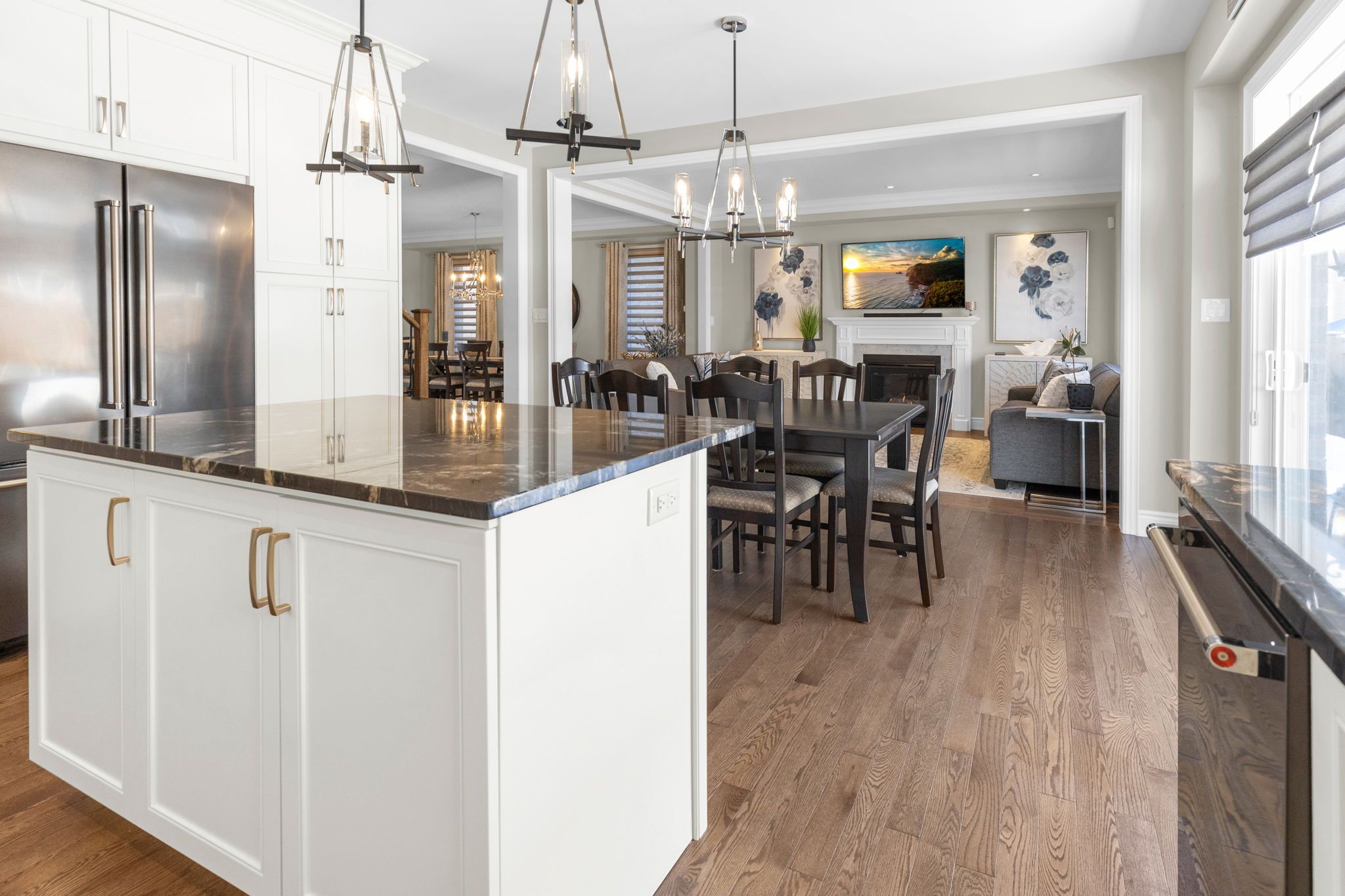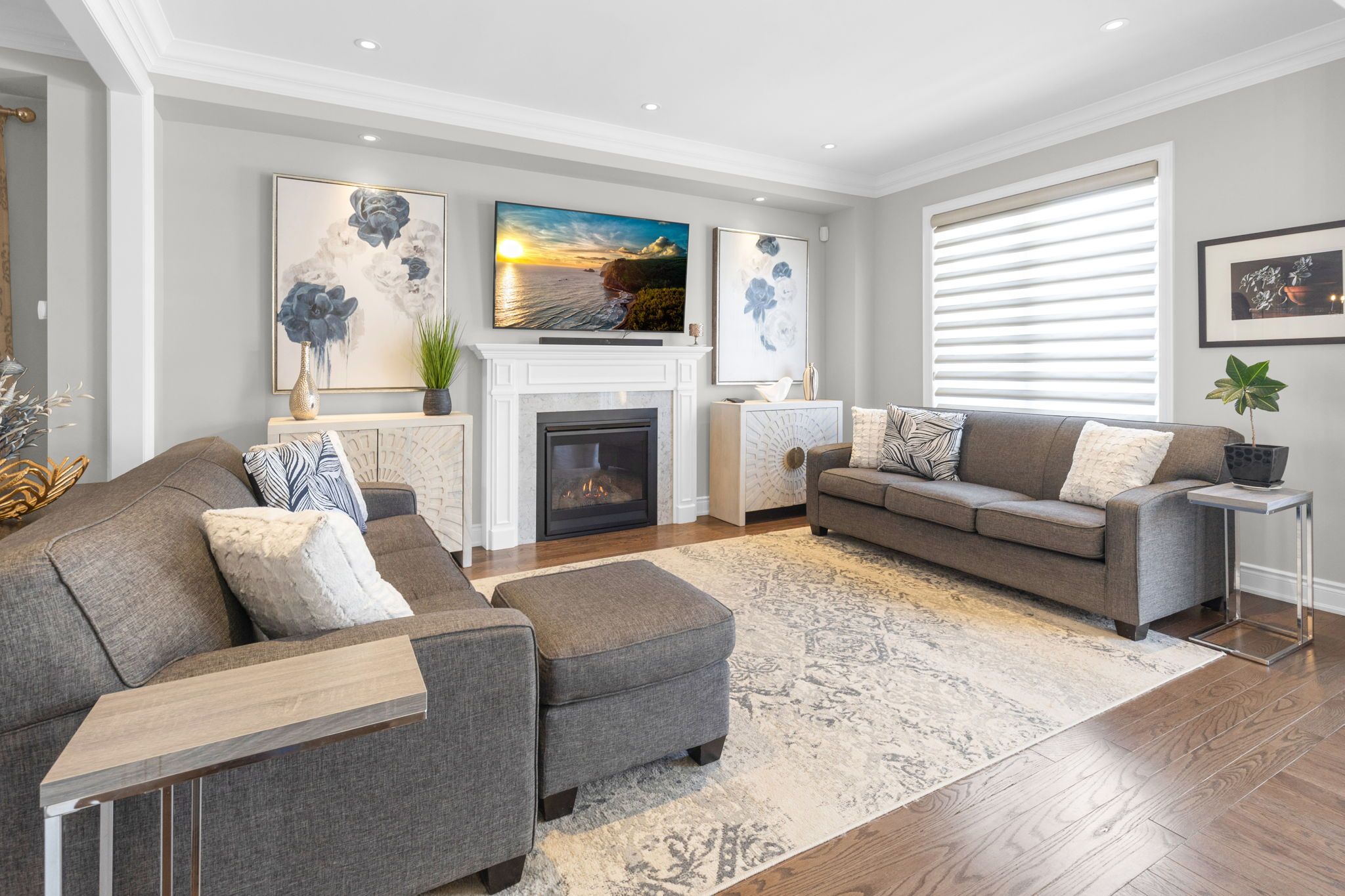 Beautifully upgraded executive home with exceptional attention to detail throughout. Professionally landscaped with in ground sprinkler system, hot tub, gas fire table, and gasbbq connection perfect for entertaining. Interior features include smooth ceilings, crownmoulding, pot lights, feature wall, upgraded baseboards, 8 ft doors on main floor, and elegantrod iron staircase. Hardwood floors, upgraded kitchen with enhanced cabinetry, granitecounters, marble backsplash, built in gas cooktop range, and built in wall oven. Spa inspiredprimary ensuite with glass shower and freestanding tub. Partially finished basement. Additional upgrades include central vac a/c, water softner, security system with exteriorcameras. Turn key and move in ready