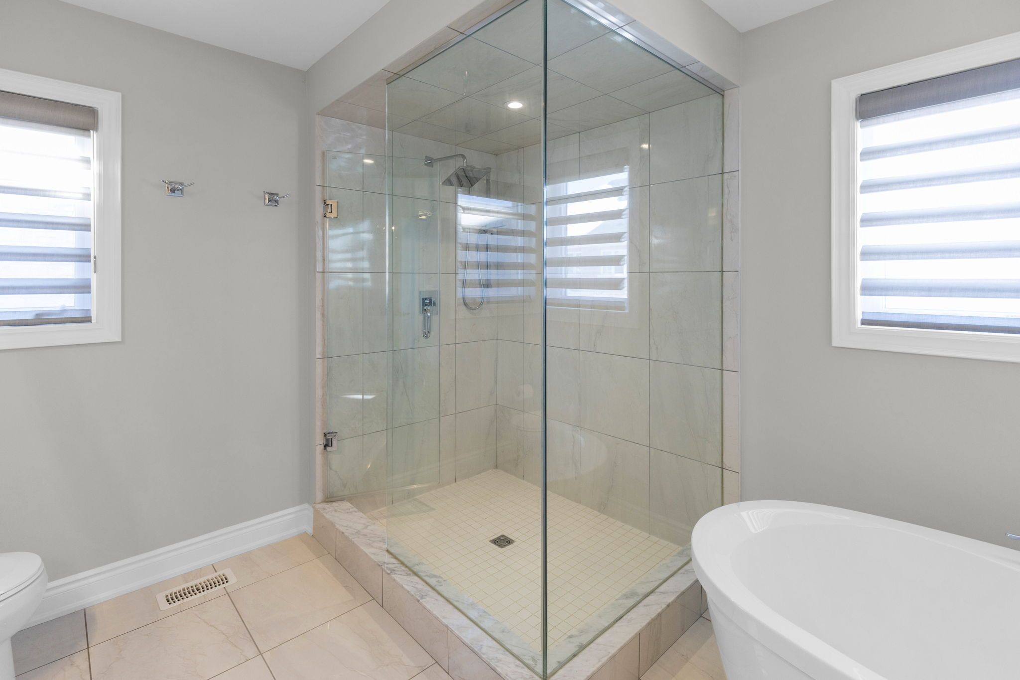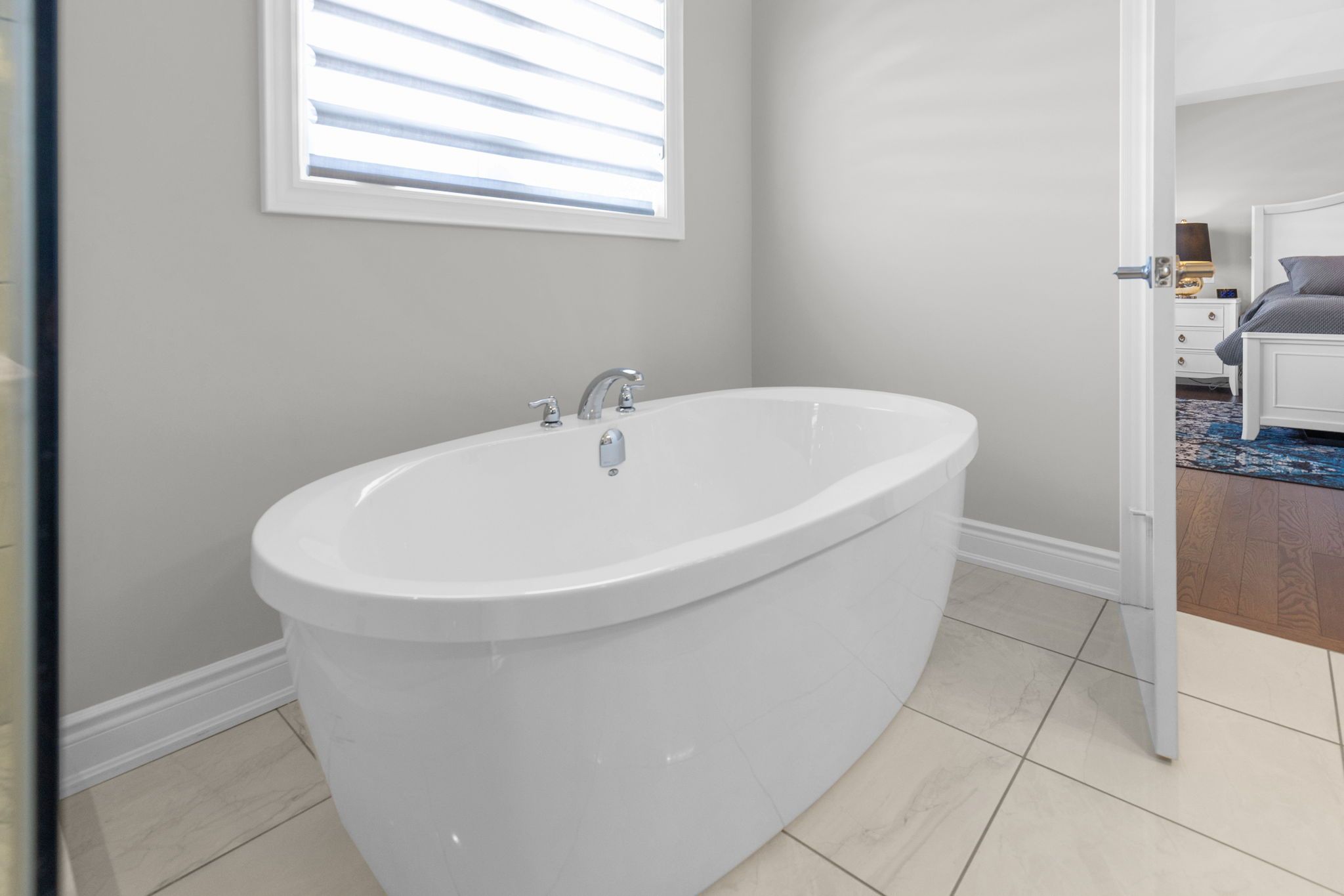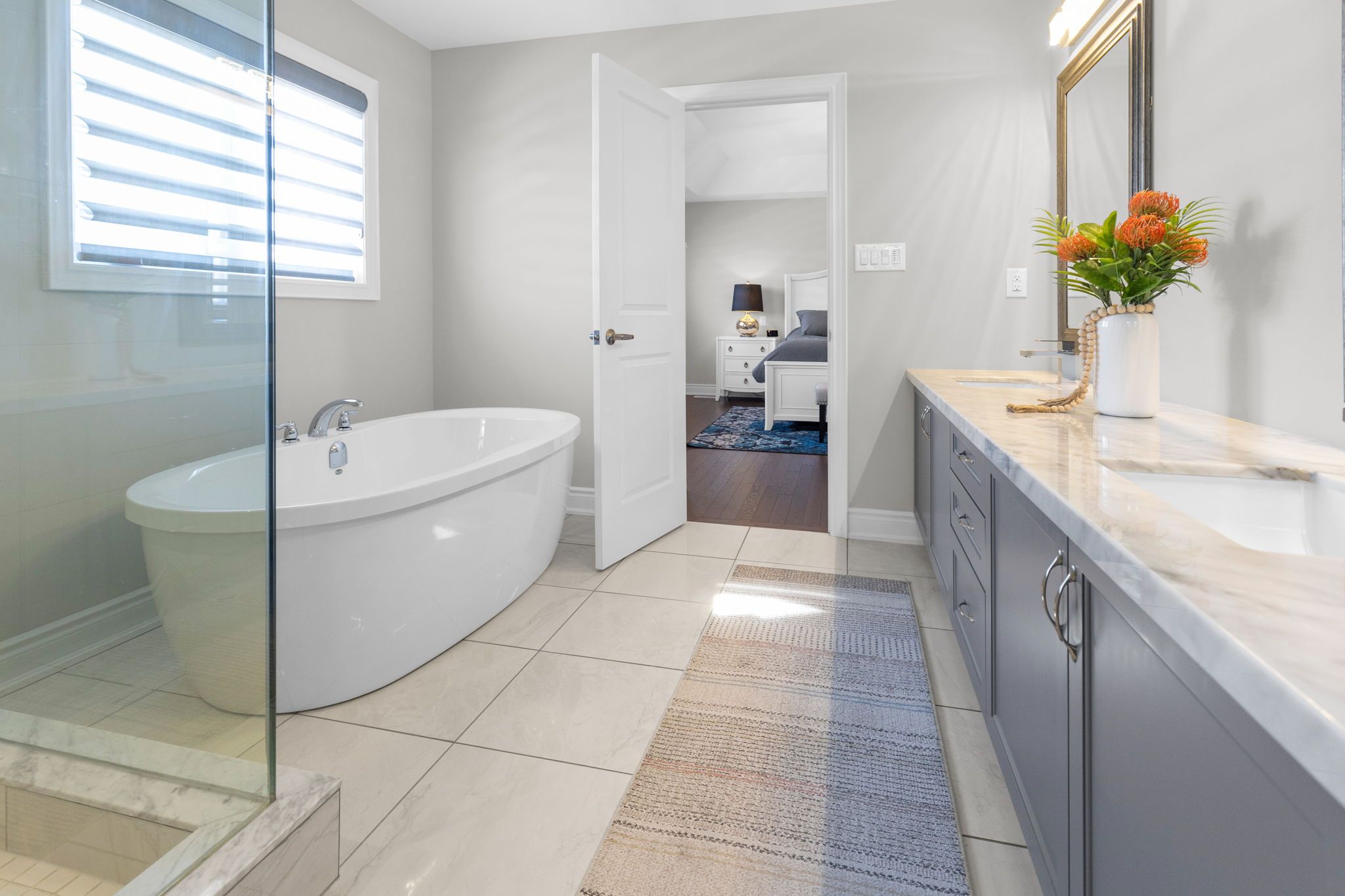 • Spa-inspired primary ensuite with glass shower and freestanding tub.