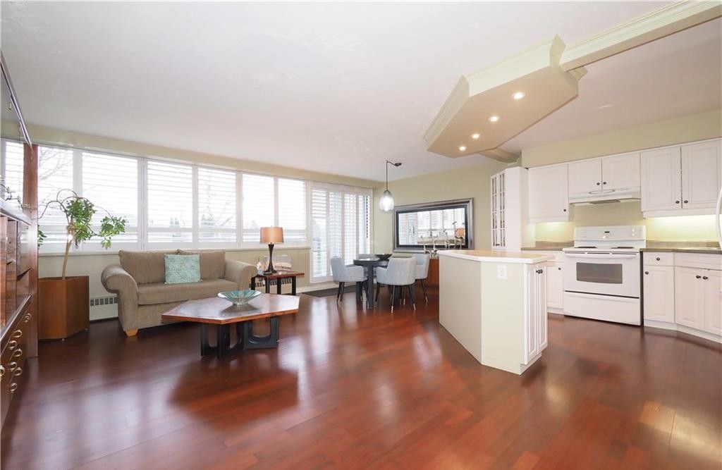 Welcome to 24 midland drive - easy, main-floor living done right ! Maintenance fees include all utilities- heat, hydro, water and taxes - no extra fees! This is a beautifully updated two-bedroom main-floor unit that offers a rare combination of convenience, privacy, and thoughtful upgrades. The kitchen has been opened up to create a true open-concept layout, connecting seamlessly to the living space, with a functional island that adds both workspace and definition without closing anything in. The unit is completely carpet-free and finished with california shutters in the living room and dinette giving it a clean, cohesive feel. It has been nicely updated and well maintained, making it a straight forward, move-in-ready option. One of the standout features is the walkout to the private patio-an excellent extension of the living space that can be enjoyed throughout the seasons. The location within the building is quiet, with minimal traffic noise, and the unit benefits from warm afternoon light and sunset views. Being on the main floor, access is easy and practical-no stairs, no waiting, just simple day-to-day living. Important to note: this is a co-operative building, and units are not currently eligible for traditional mortgage financing, so purchases must be cash. The building is in the process of converting to condominium ownership, which may allow for financing in the future.