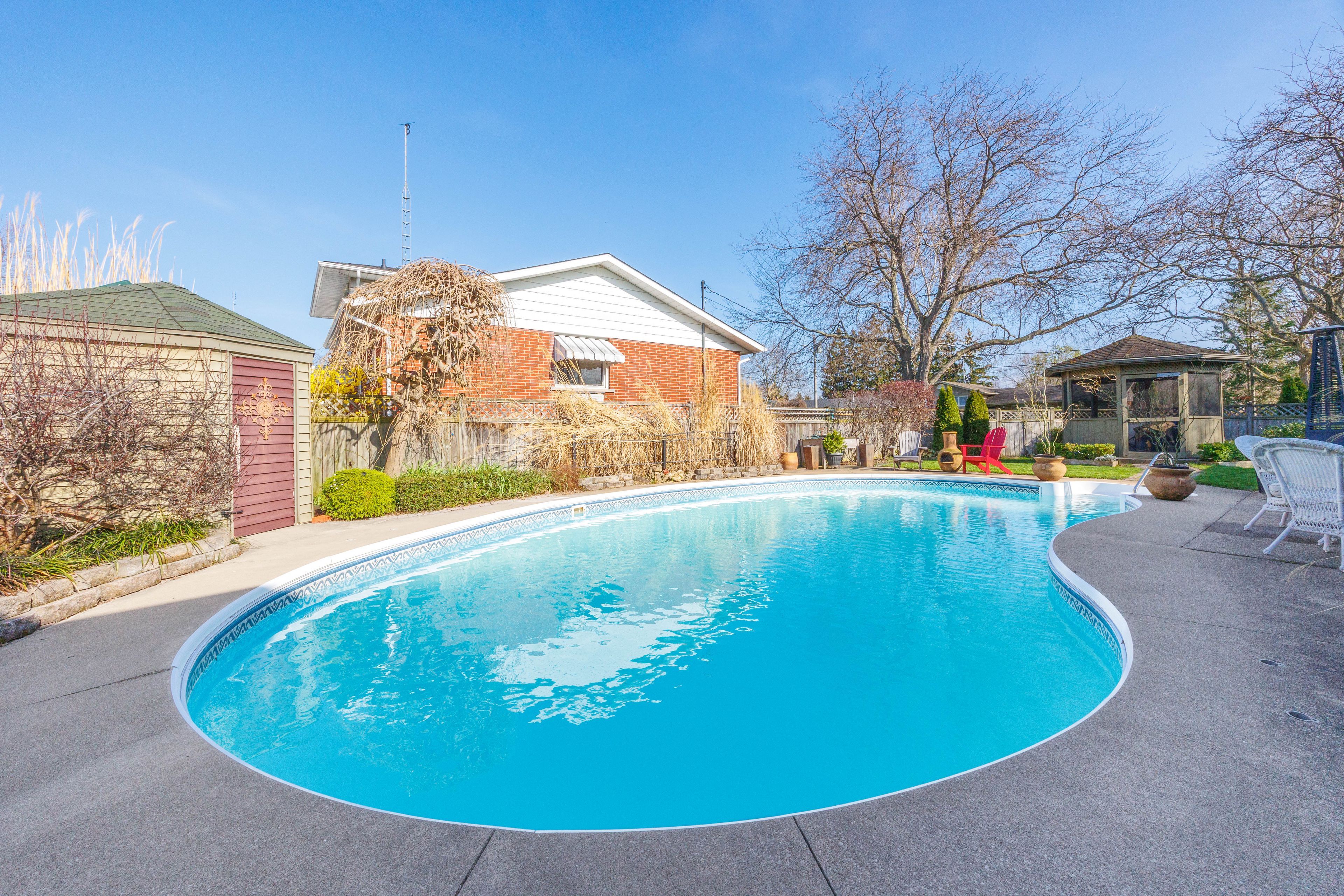 Welcome to 24 mississauga road in st. Catharines, located on a rare corner lot in one of the city's most desirable north-end neighbourhoods. This beautifully maintained multi-level backsplit has been proudly cared for by the same family for over 40 years and is ready to welcome its next chapter. Upon entering the home, you're welcomed by sun-filled living and dining rooms, where large windows flood the space with natural light, creating a warm and inviting atmosphere. Offering 3+1 bedrooms plus two additional versatile rooms-ideal for a home office, guest space, or extra bedrooms-this home delivers exceptional flexibility for growing families and those who love to entertain. The bright and spacious lower-level rec room features a walk-out to the backyard, creating a seamless indoor-outdoor living experience. Step outside to your private retreat, complete with a large kidney shaped inground pool, a charming gazebo and beautiful gardens-perfect for summer gatherings, family dinners, or relaxing evenings. A double car garage and convenient side yard sheds provide plenty of storage for vehicles and outdoor equipment. Ideally located just steps from the waterfront, scenic trails, parks, shopping, and everyday amenities, this home offers the perfect balance of lifestyle and convenience. Recent updates include refinished hardwood floors, (2026) new stainless steel kitchen appliances, and refreshed bathrooms featuring modern glass shower doors. This is a rare opportunity to own a spacious, thoughtfully maintained home in a prime location-perfect for creating lasting memories for years to come.