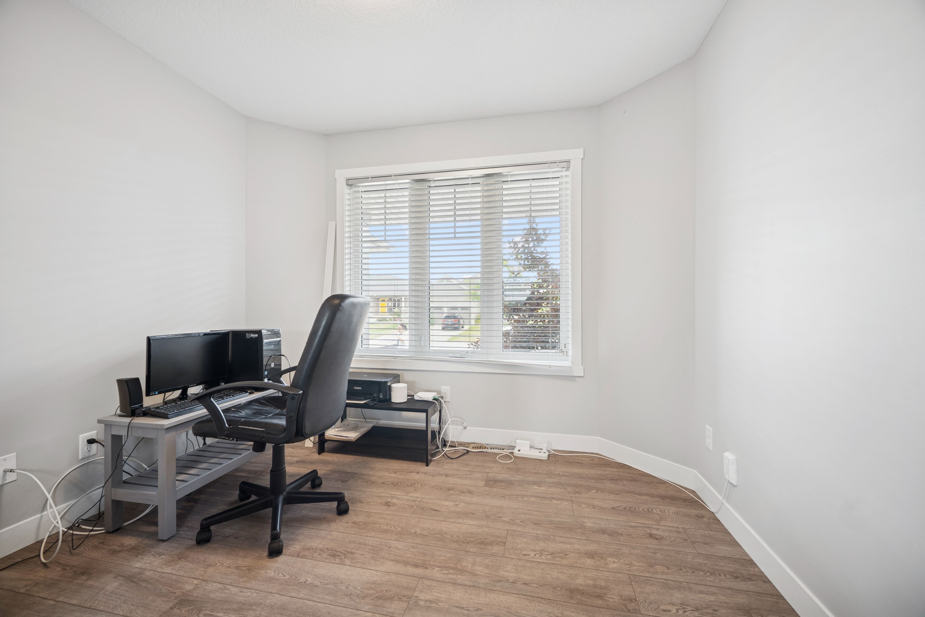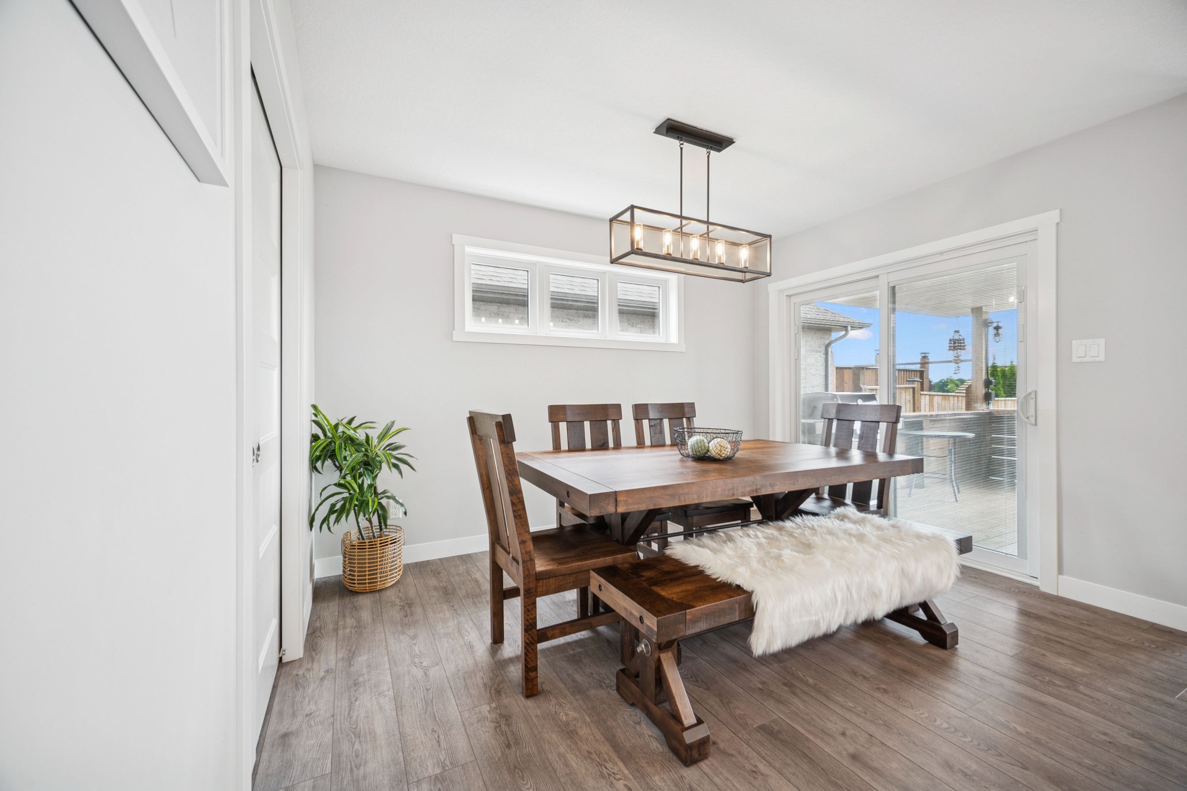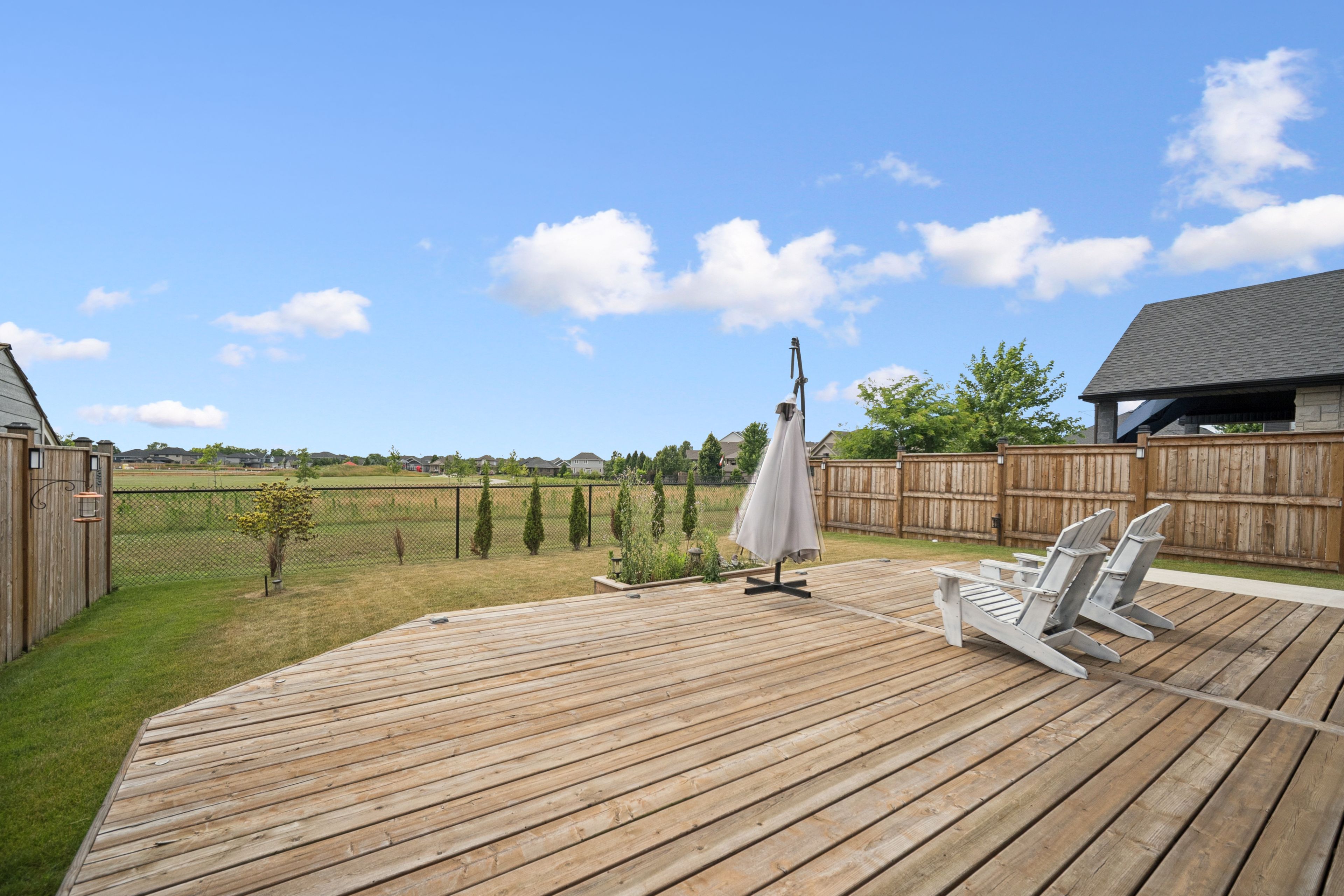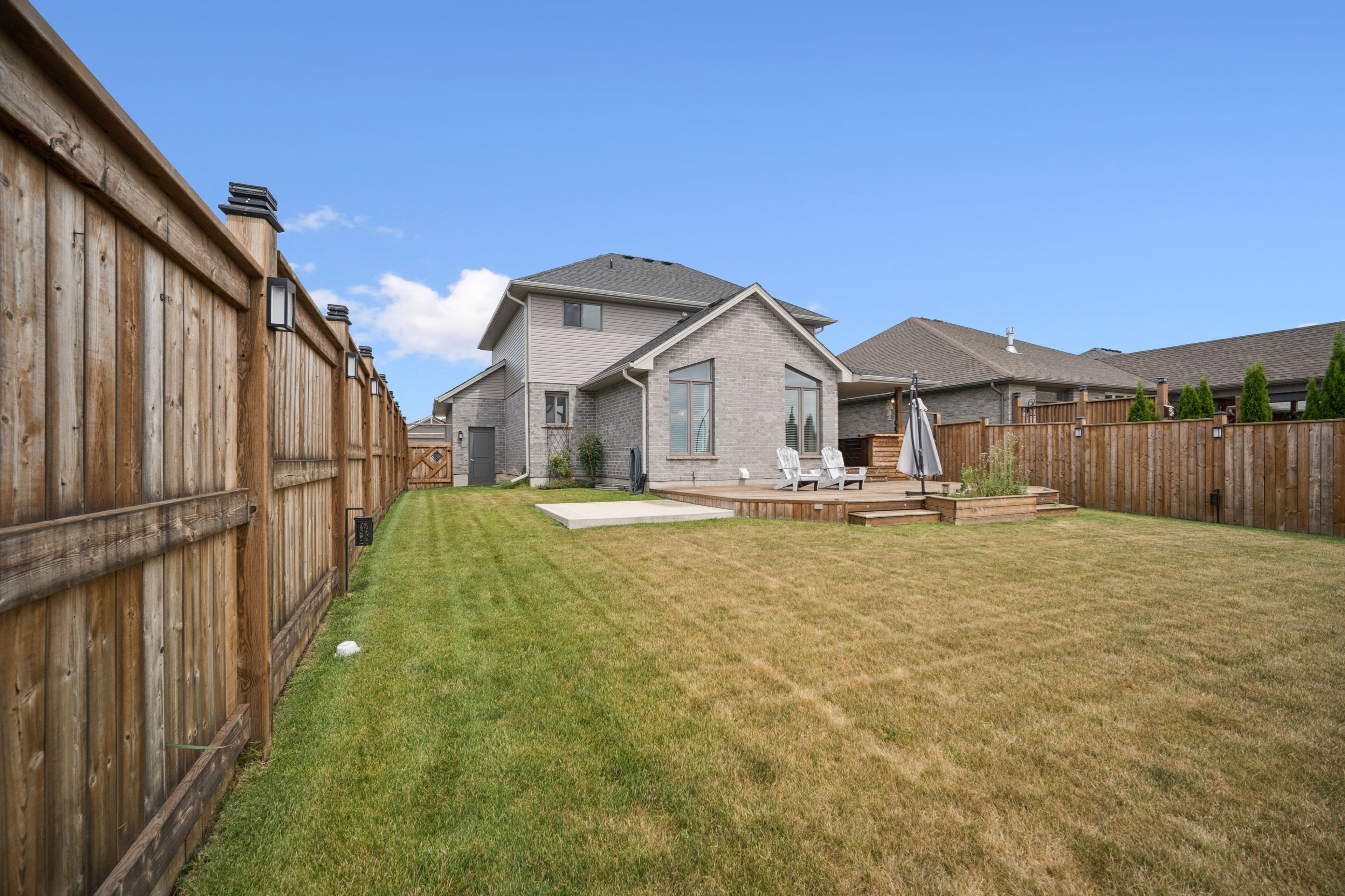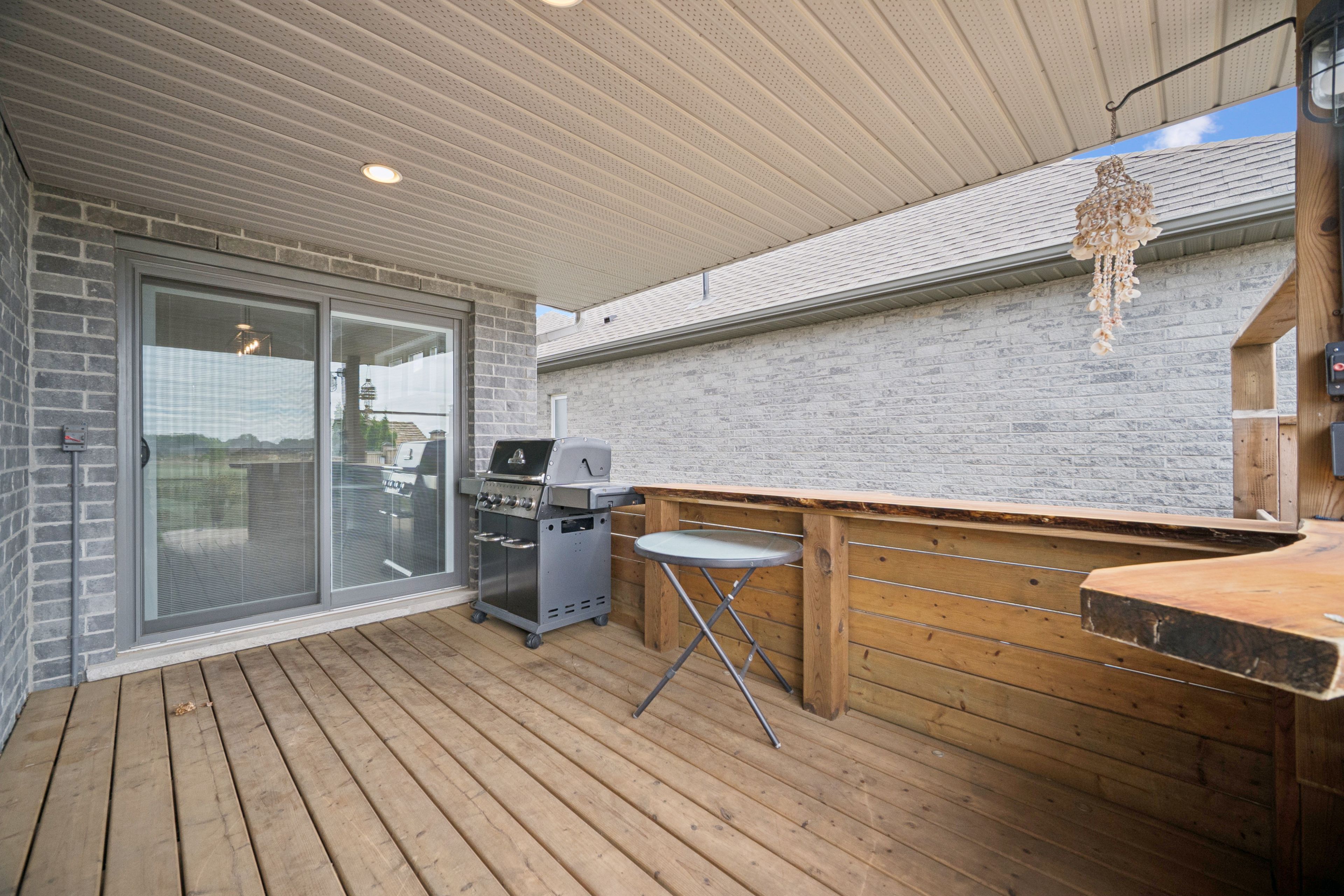 Welcome to 24 oakmont - a stylish and spacious 3+1 bed, 2. 5 bath home on a premium lot backing onto green space/parkland in the sought after shaw valley community. This custom built mp home blends function and flair with a concrete driveway, covered front porch, and beautifully landscaped yard. The entertainer's backyard features a two-tier deck with ambient lighting, a live-edge bar in the covered area, and gas bbq hookup. Inside, enjoy an open concept main floor with vaulted ceilings in the living room, spacious dining room with access to the yard, a bright gcw kitchen with quartz counters, island, backsplash, pantry and a cozy living room with electric fireplace. The main floor office, stylish 2 pc bath and access to the garage complete the main level. Upstairs offers a laundry room, two spacious guest bedrooms, a 4pc bath, and a serene primary bedroom with walk-in closet and spa-like ensuite with glass shower and freestanding tub. The finished basement includes a rec room with 8'2" ceilings, an extra bedroom, rough-in bath, and storage. Steps to daycare, close to port stanley and a quick commute to london and the 401.