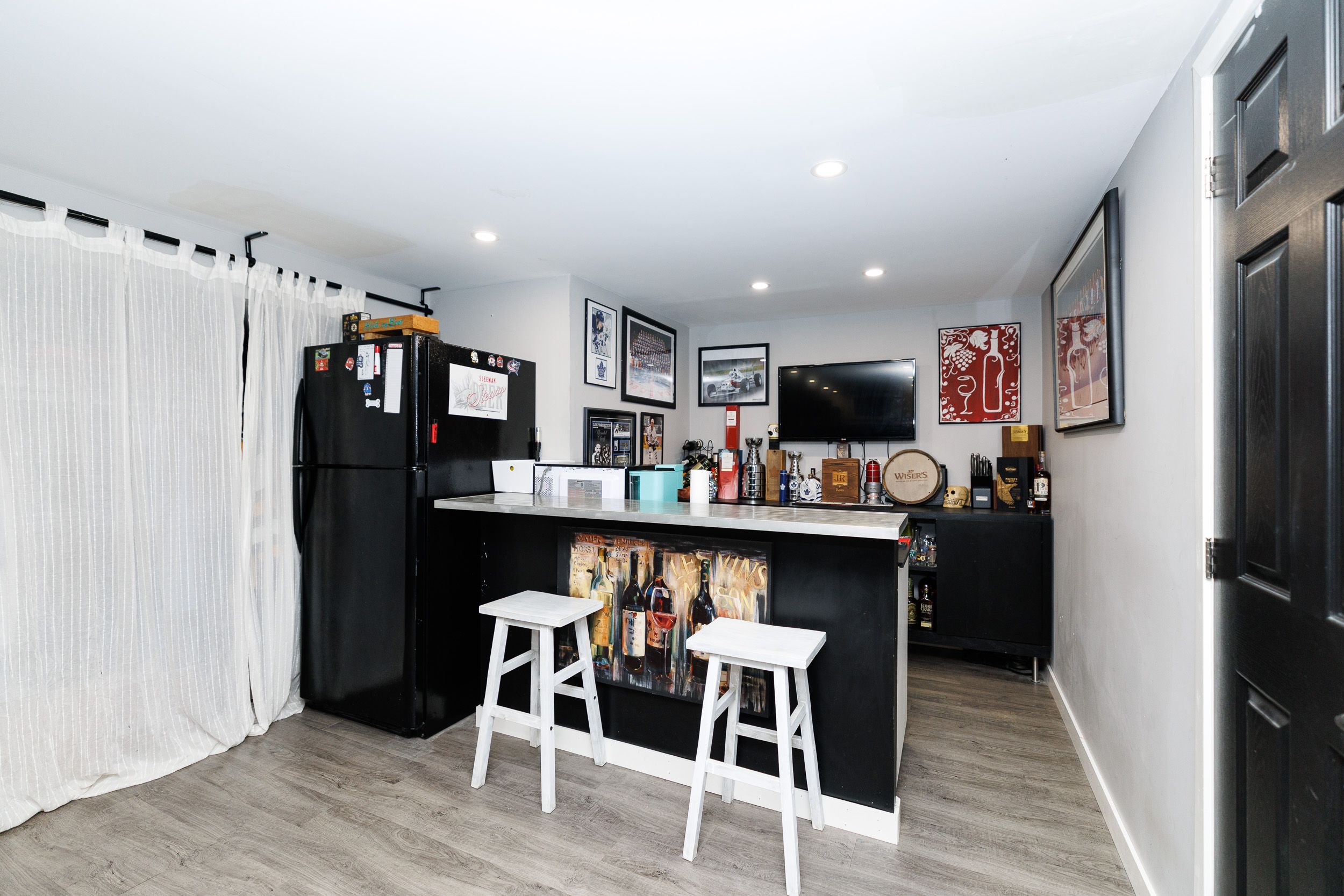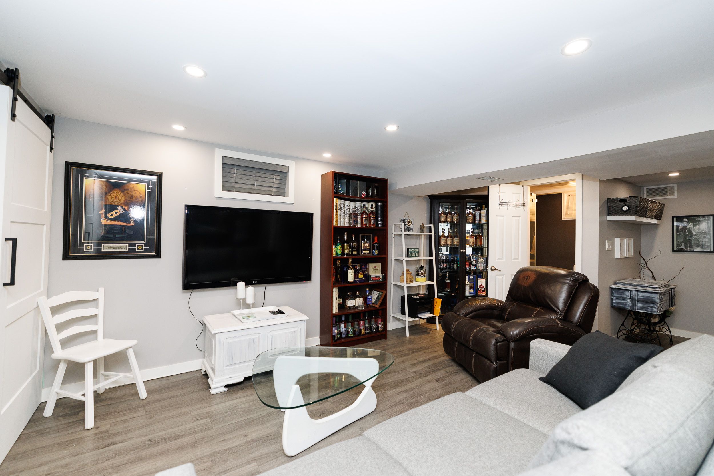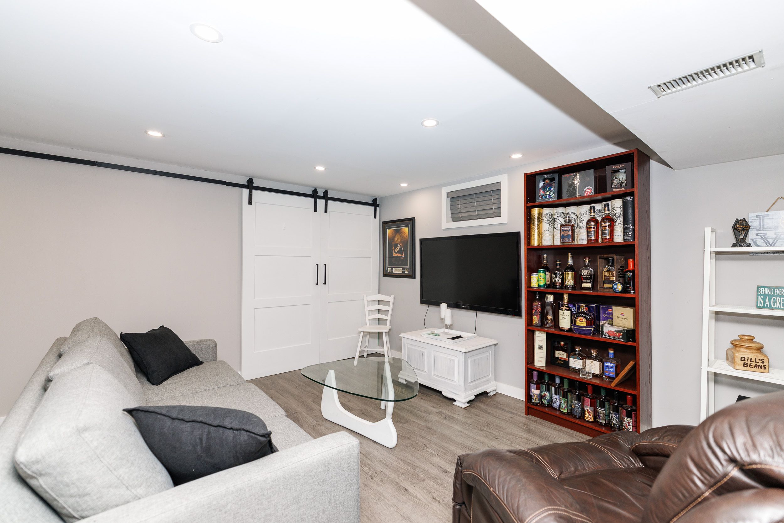 • Recreation room in the basement with a dry bar, perfect for social gatherings.