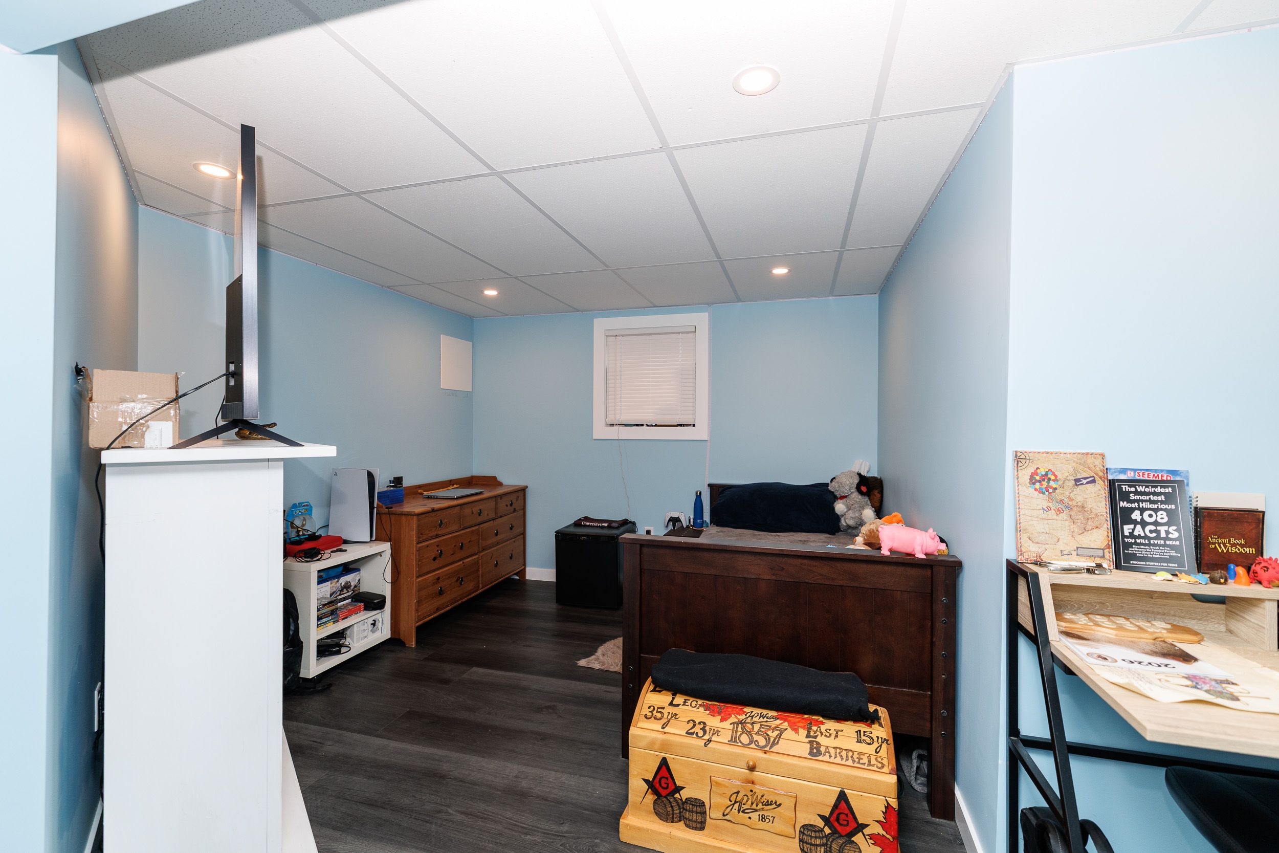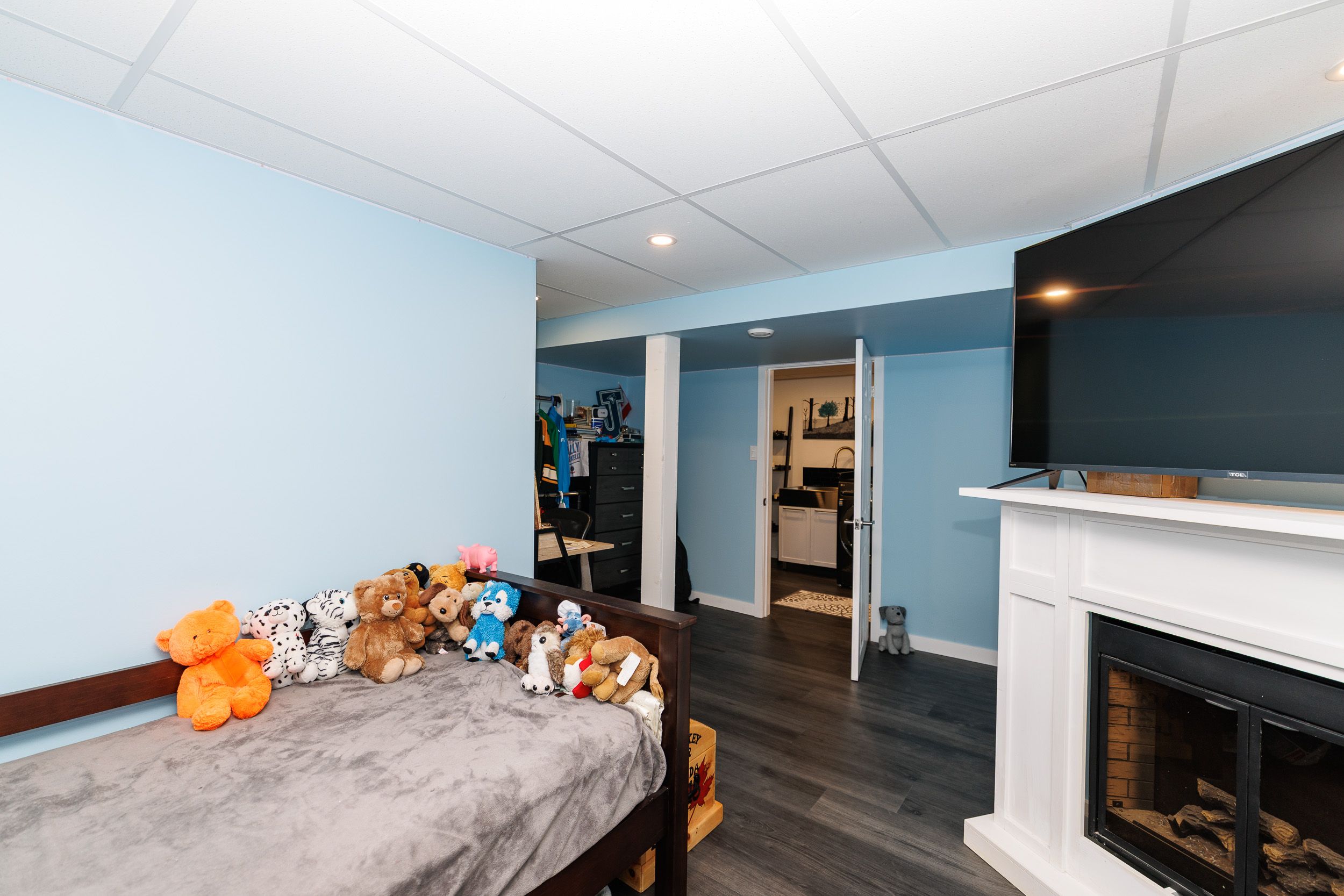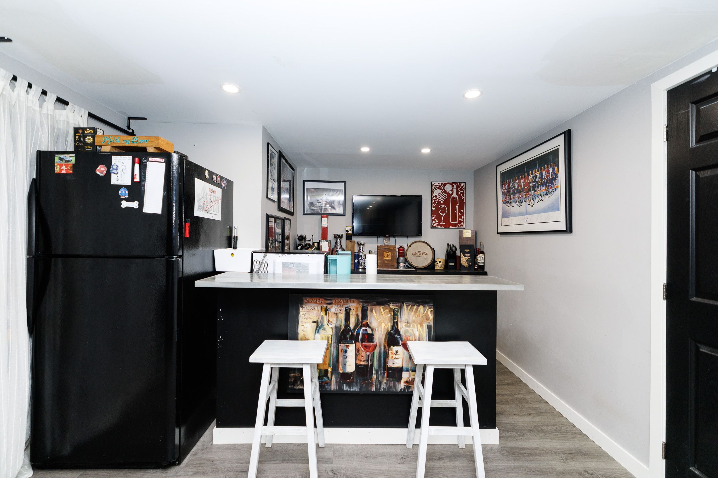 • Recreation room in the basement with a dry bar, perfect for social gatherings.