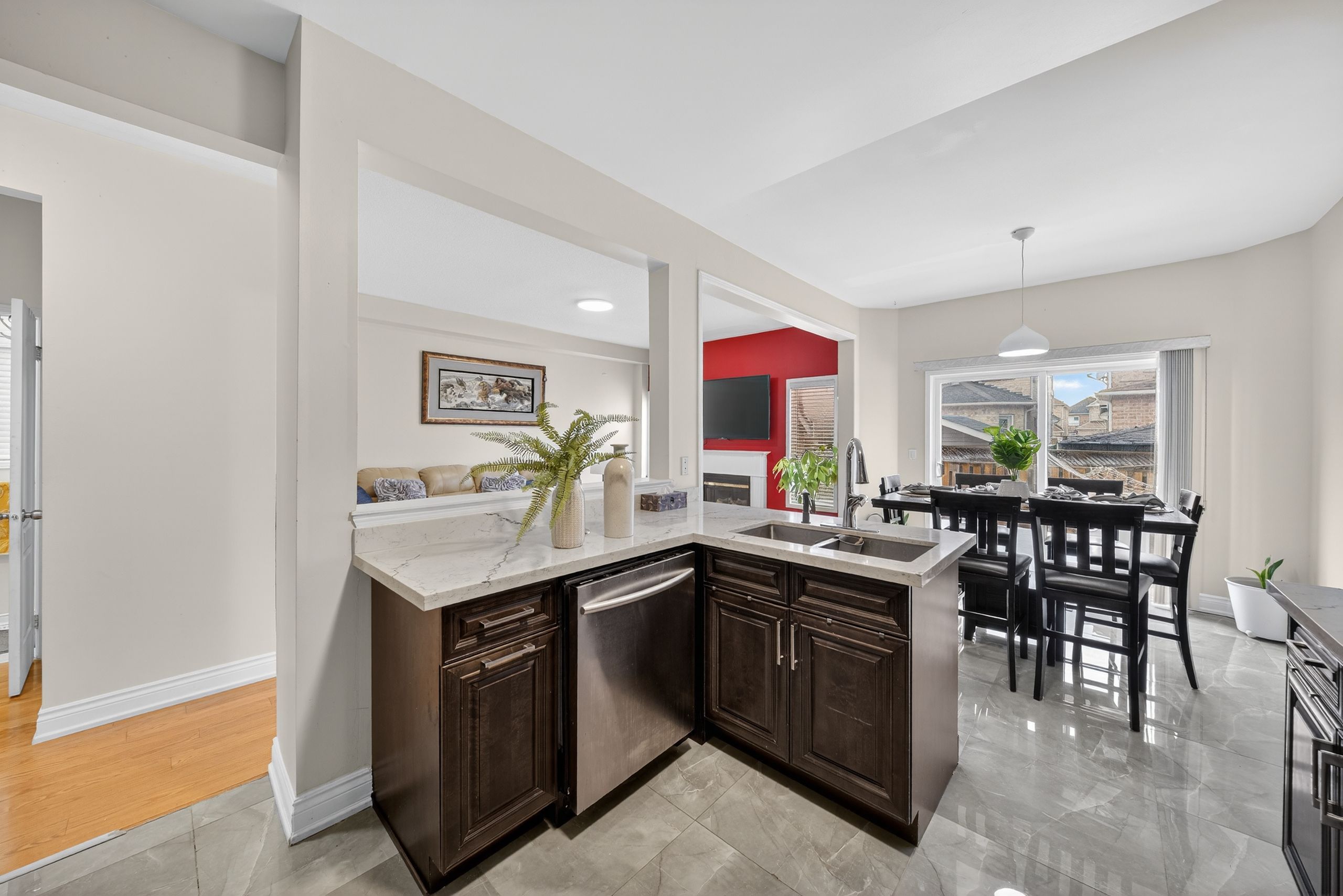 • Upgraded kitchen and elegant hardwood flooring throughout.