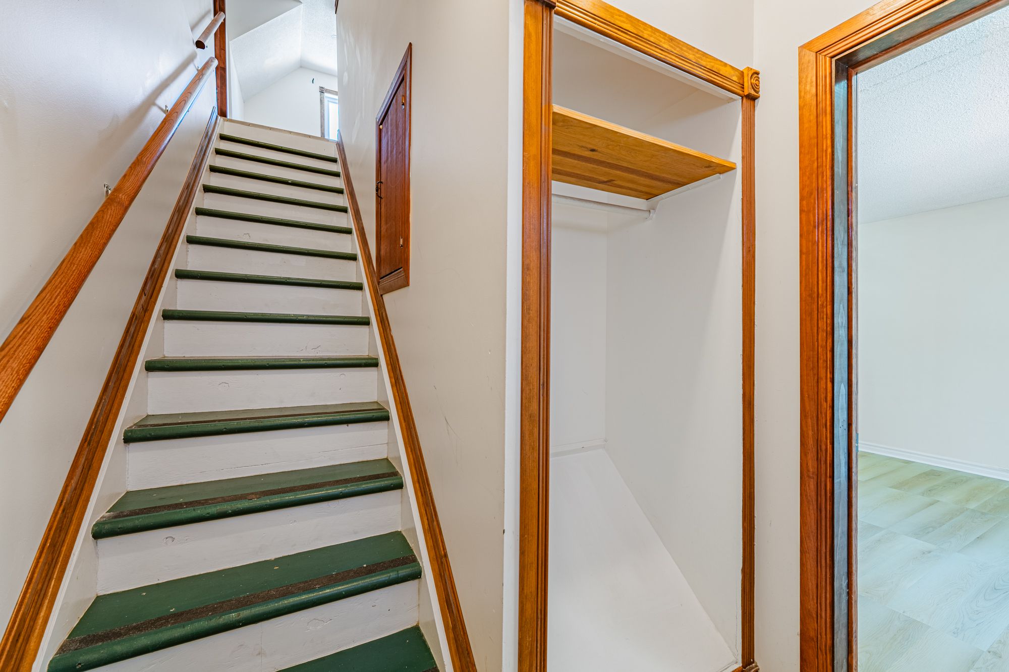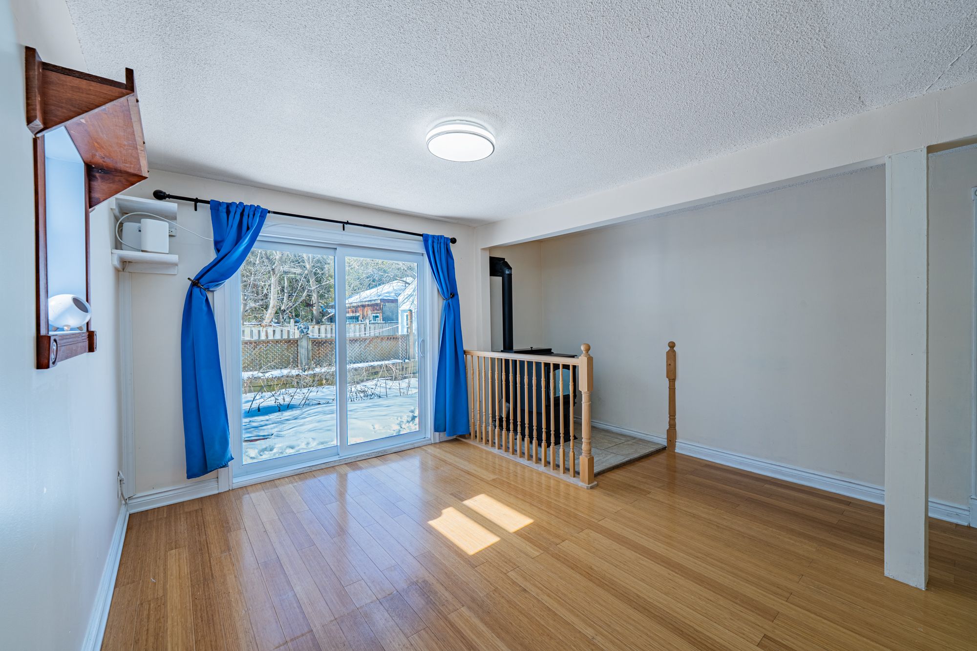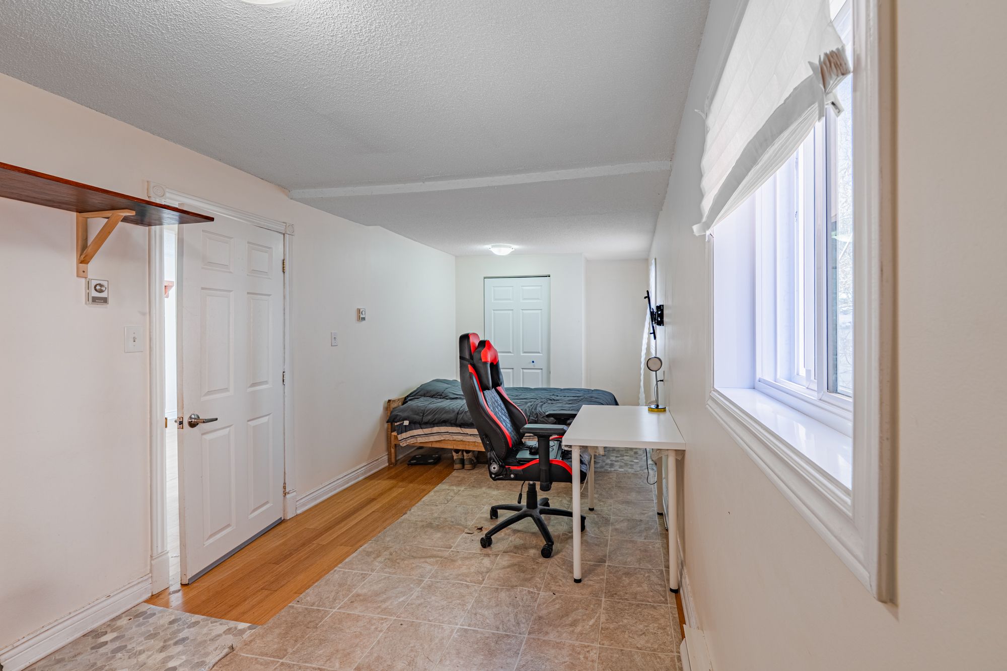 • Spacious upper level with hardwood floors and private deck access.