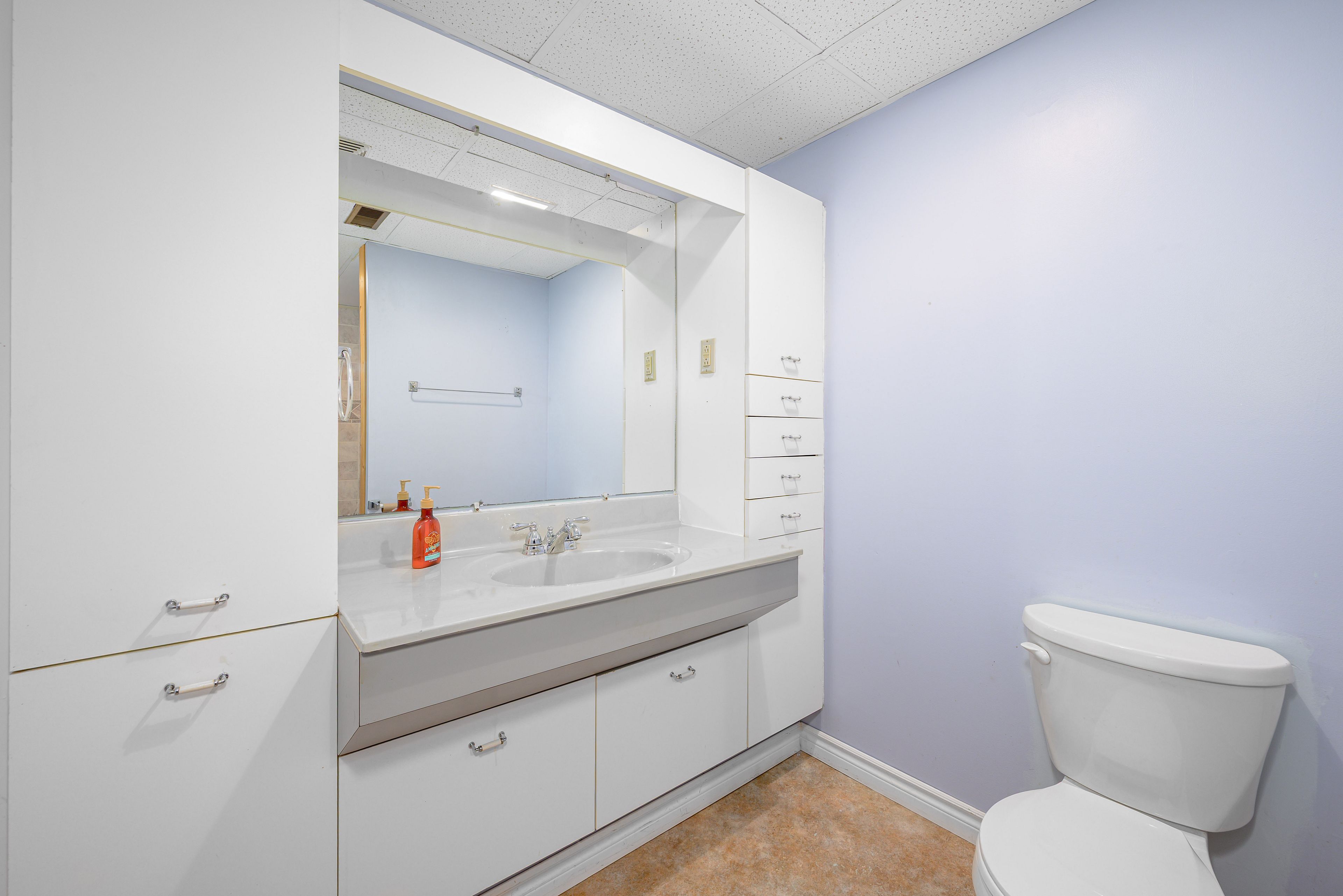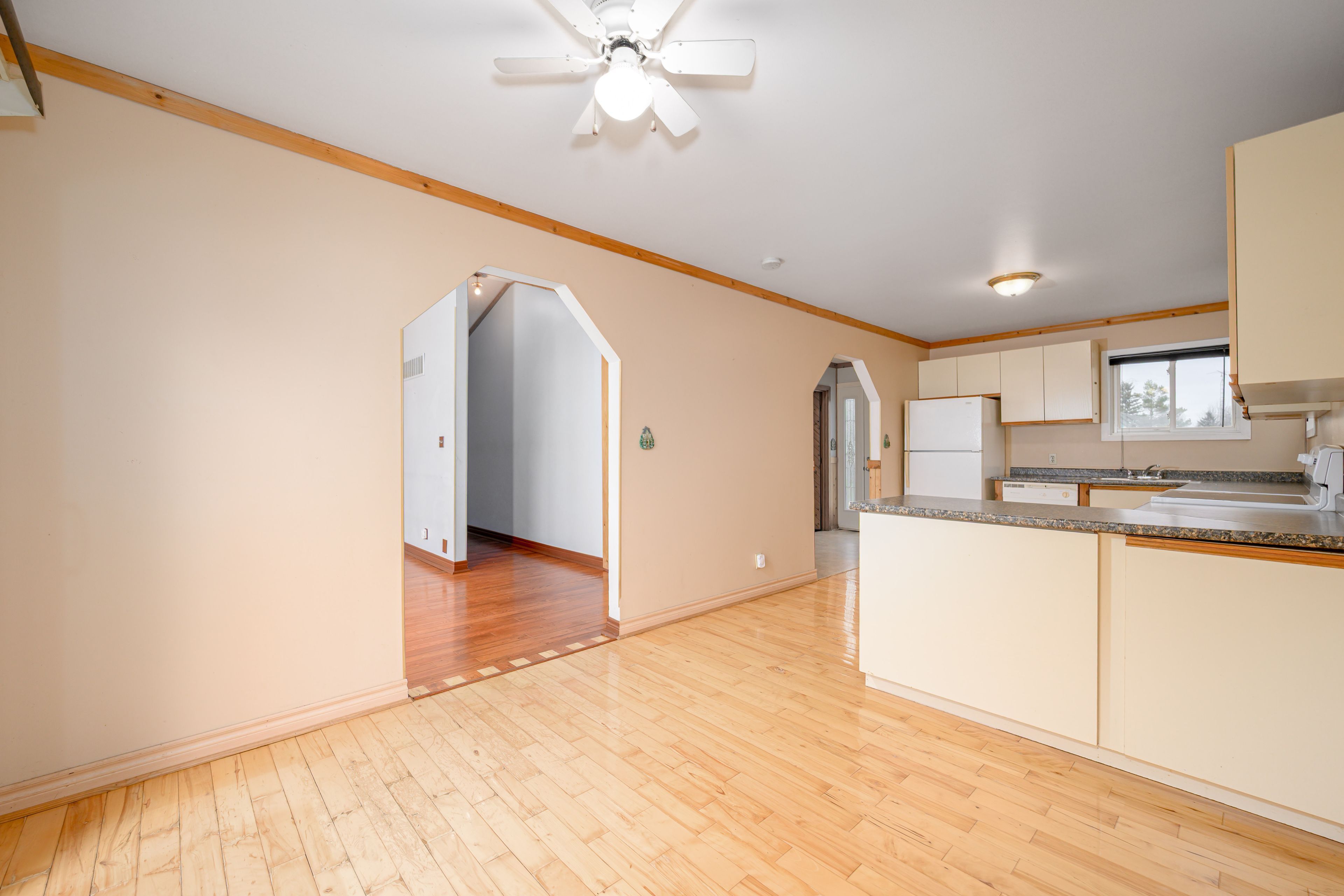 • Lower level in-law suite with kitchen and multiple living spaces.
