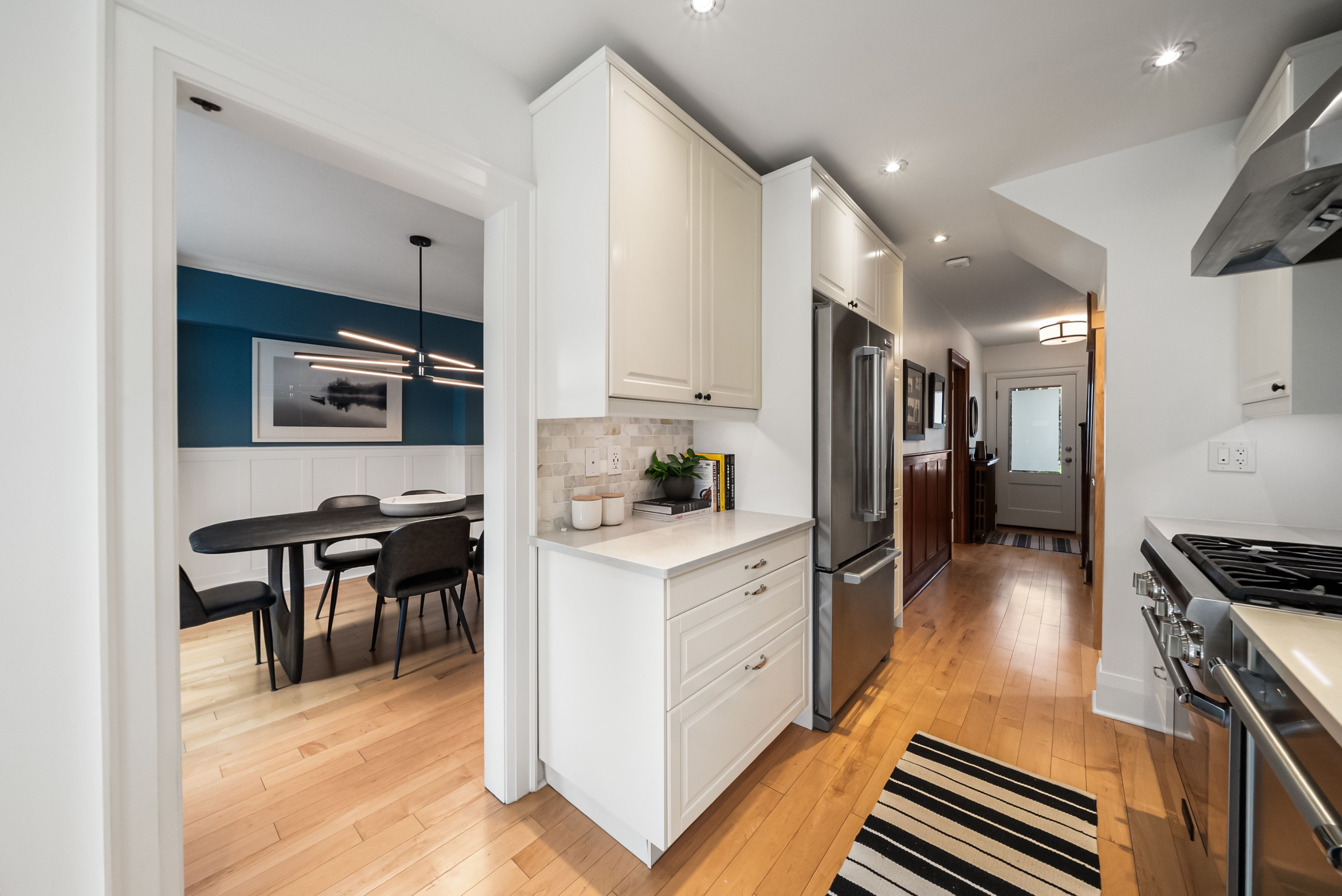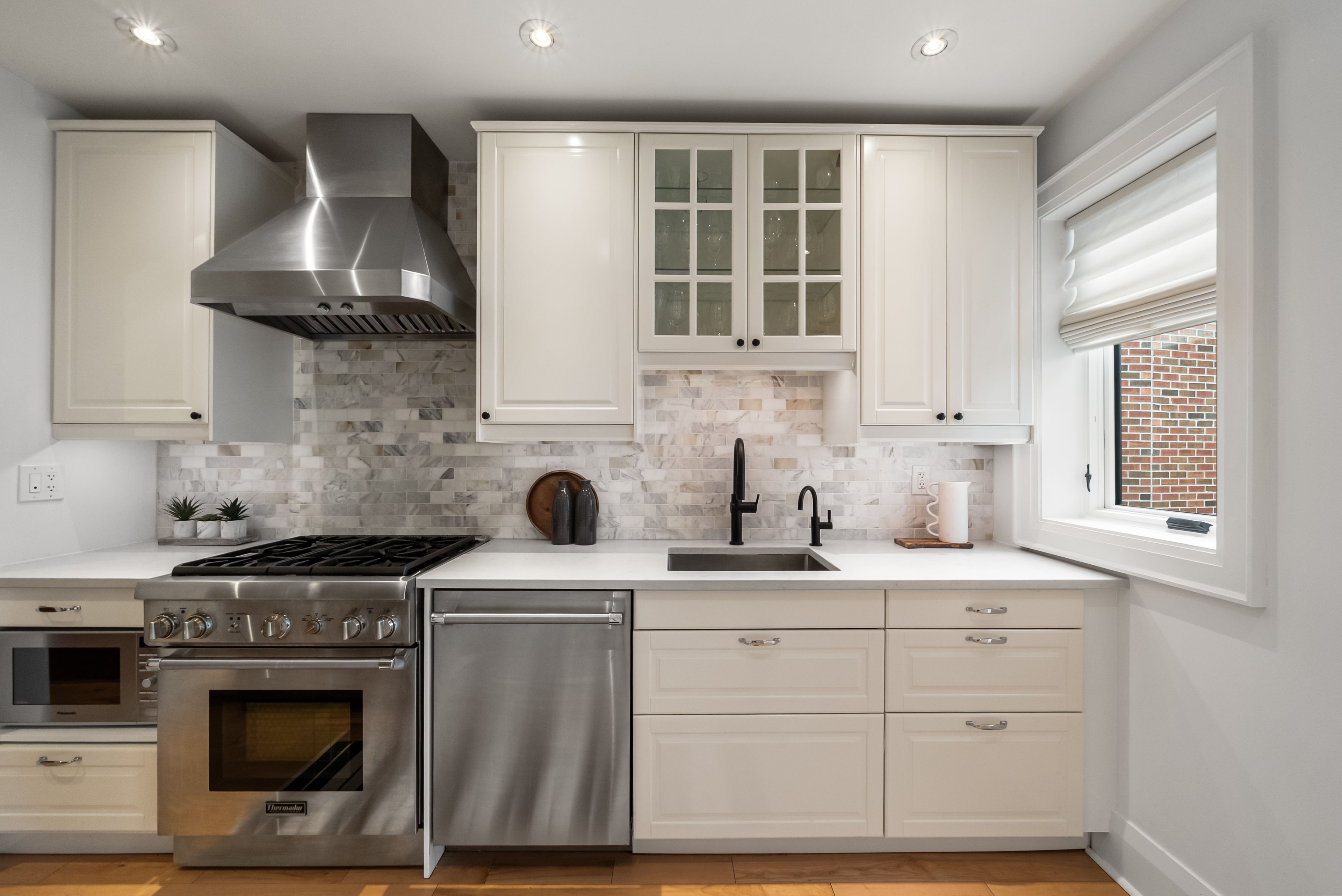 • Modern kitchen features high-end appliances and breakfast area for convenience.