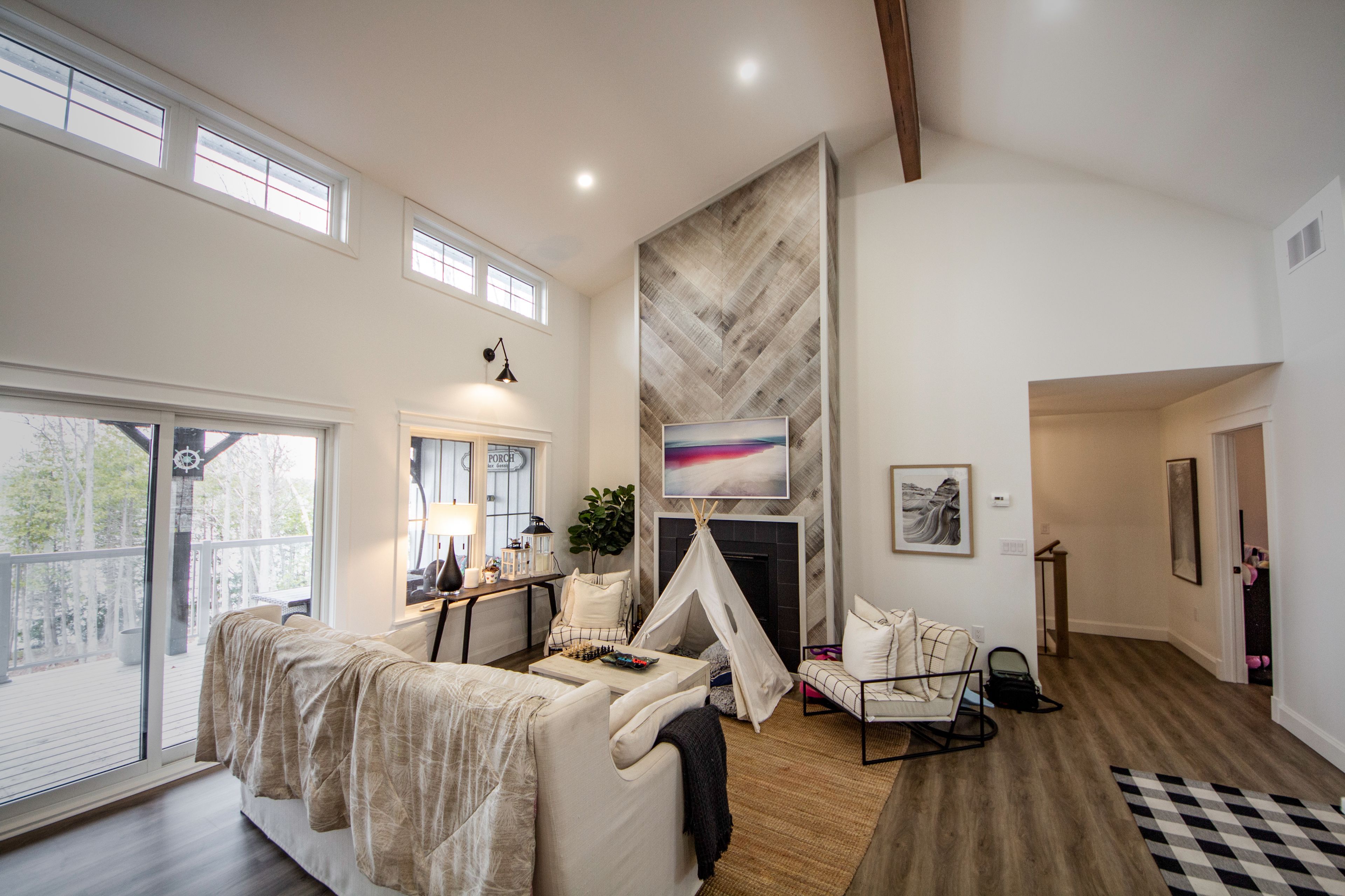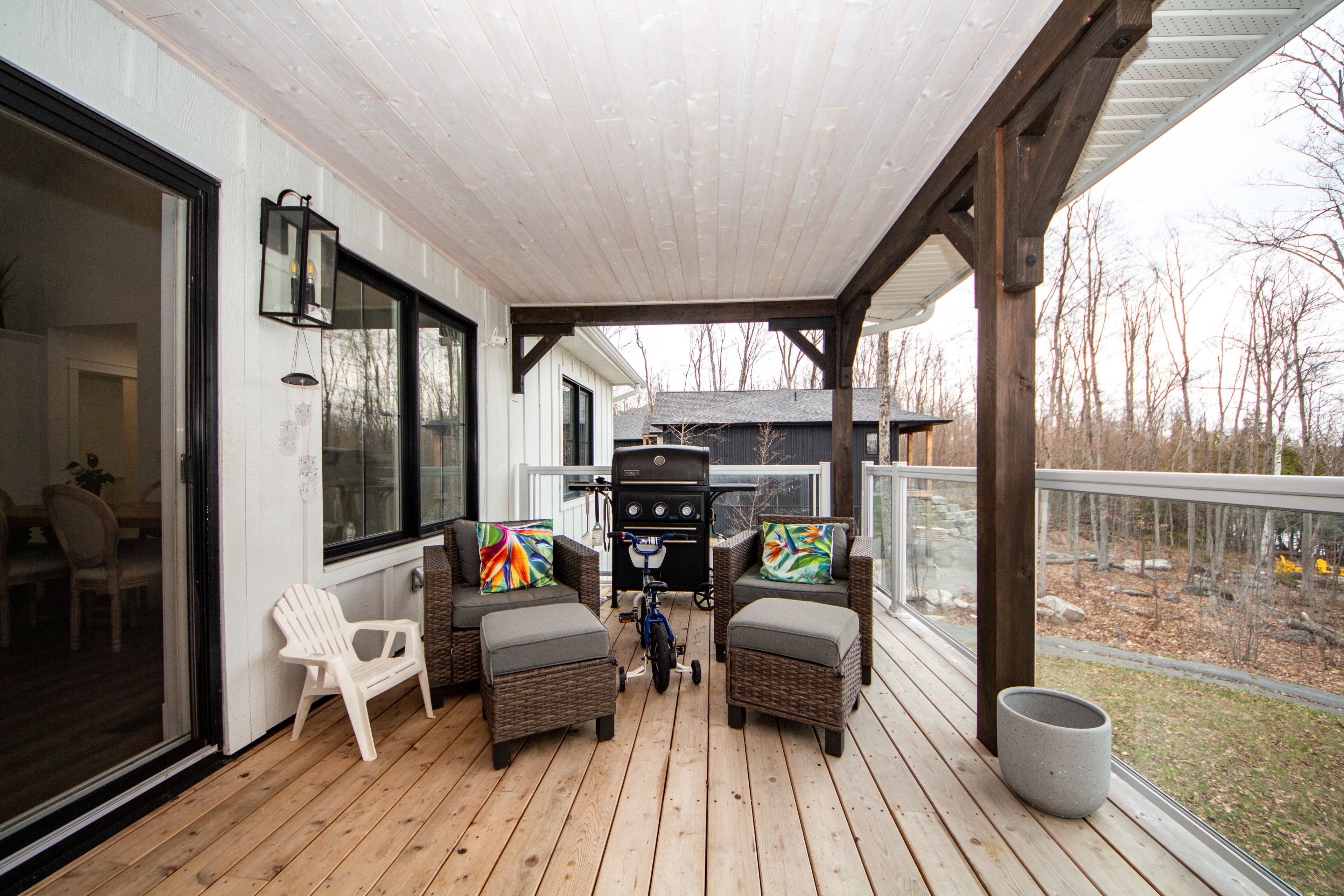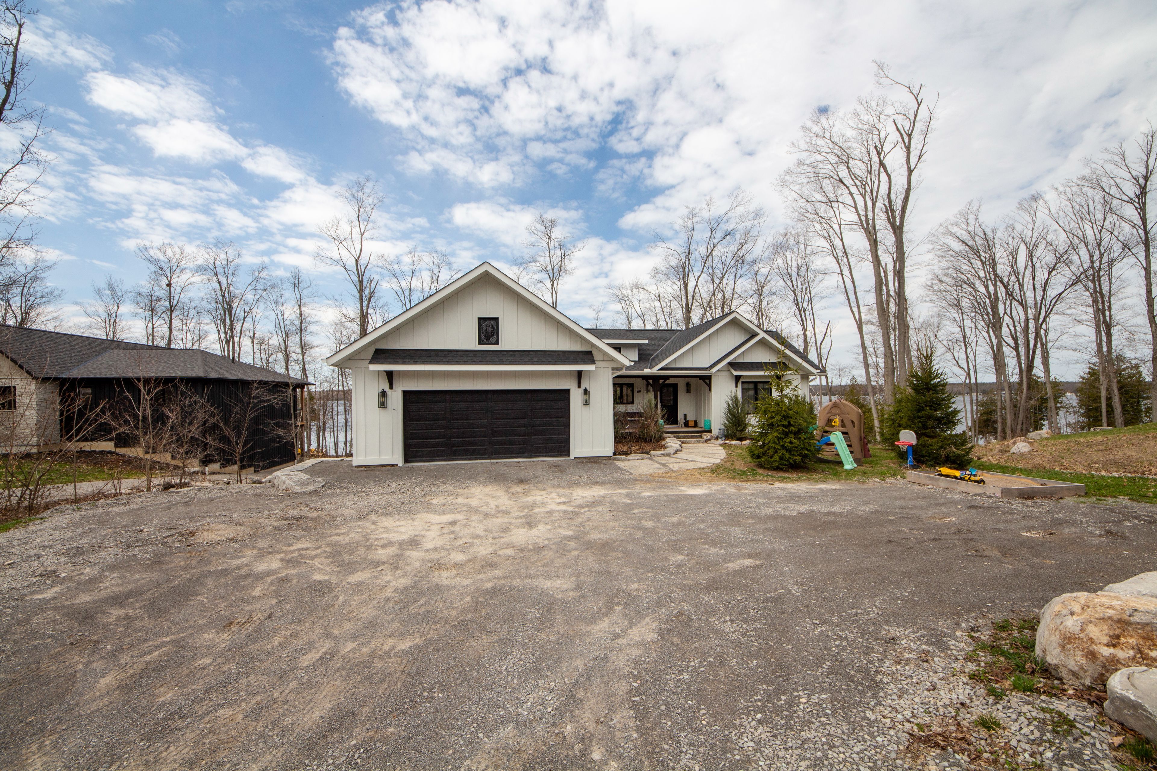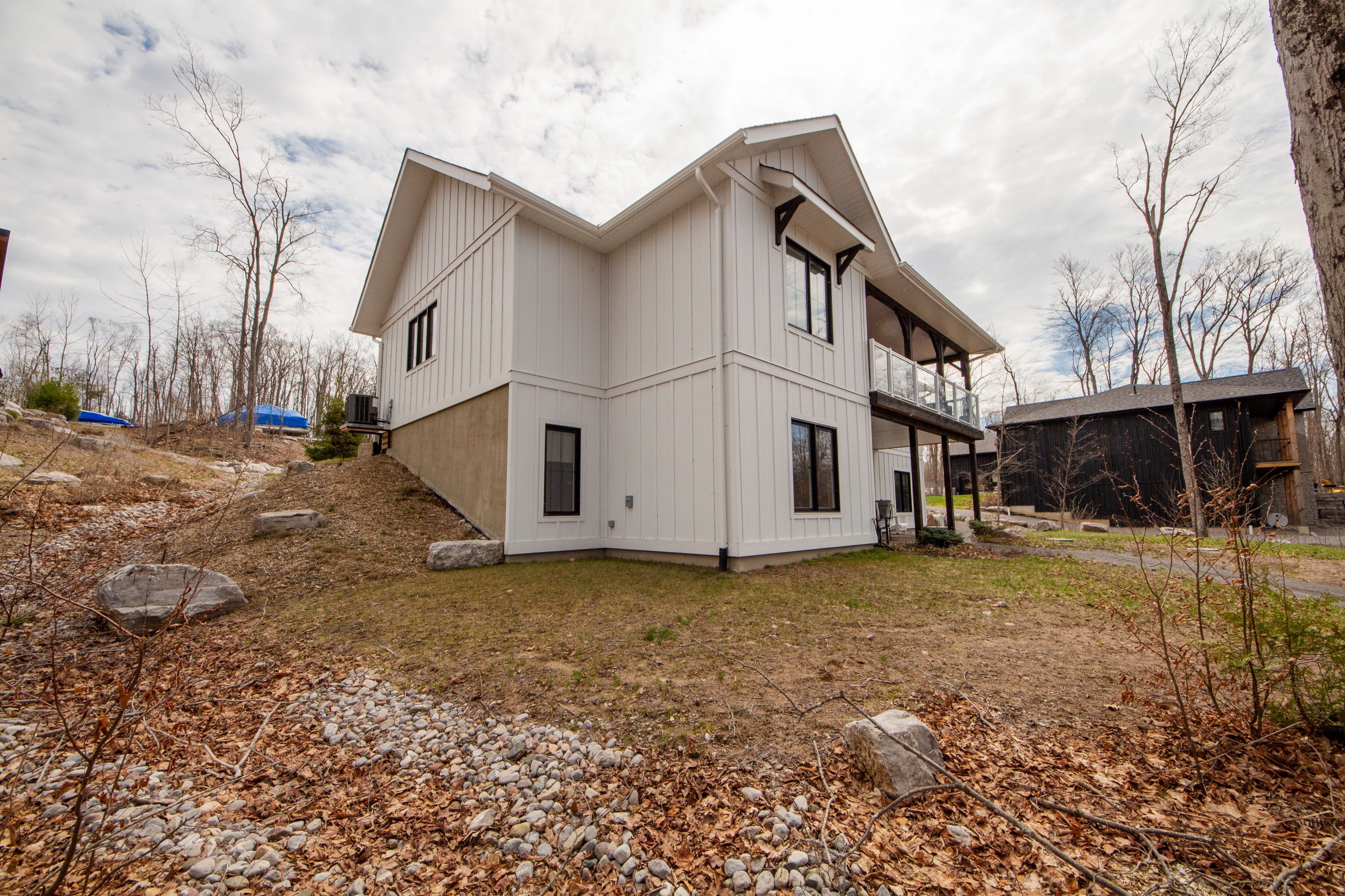 Buckhorn lake living at it's finest. This quality-built home, just under 3 years old, offers a true turn-key waterfront lifestyle with over 3,000 sq ft of finished living space. Featuring 5 bedrooms and 3 bathrooms, sitting on a private 0. 85-acre lot at the on a quiet dead-end road, complete with an attached two car garage, double driveway and an outdoor propane fire pit for relaxing evenings by the lake. The main level offers a bright, open-concept design with a modern kitchen, quartz countertops, oversized island, and an abundance of natural light. Vaulted ceilings with exposed wood beams, engineered hardwood flooring, and a propane fireplace create a comfortable, functional living space that flows directly to the covered lakeside porch-perfect for entertaining. The primary bedroom includes a 4-piece ensuite, with additional bedrooms offering great flexibility for family or guests. The fully finished lower level expands the living space with two additional bedrooms, a full bathroom and a spacious rec room with games area and walkout access to the waterfront. A true four-season lake life experience-swim, boat, entertain, and unwind right from your own shoreline on buckhorn lake.