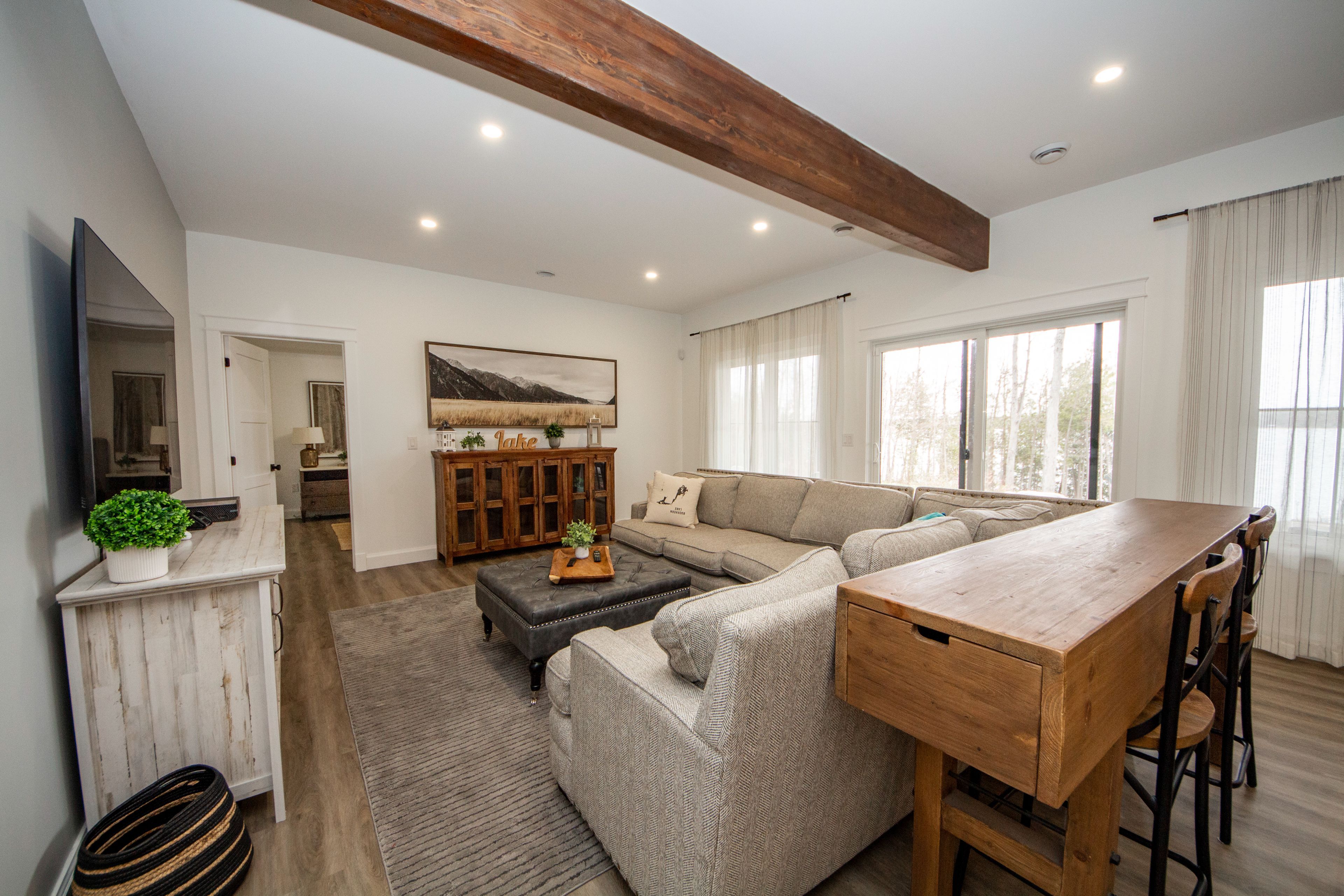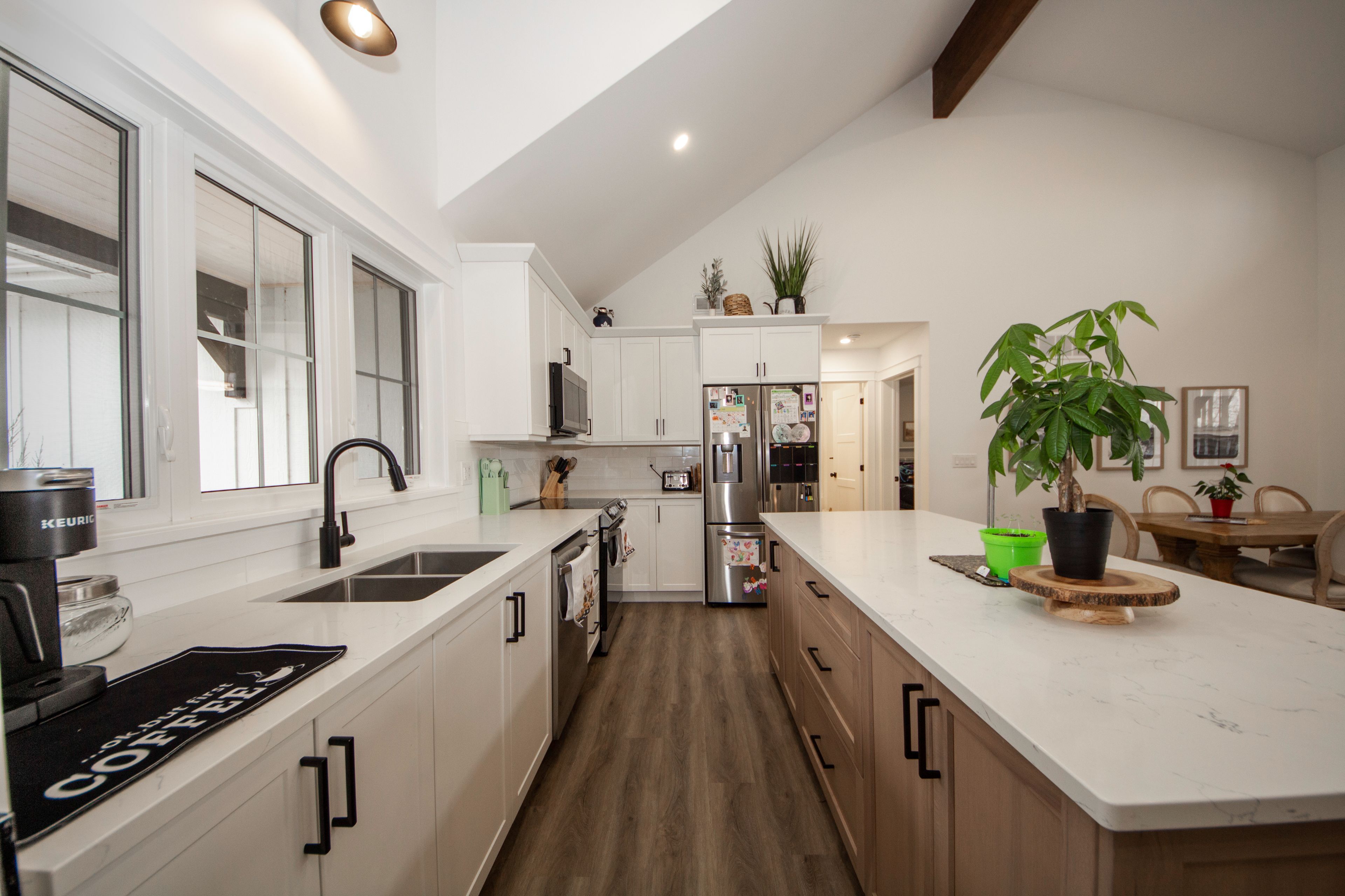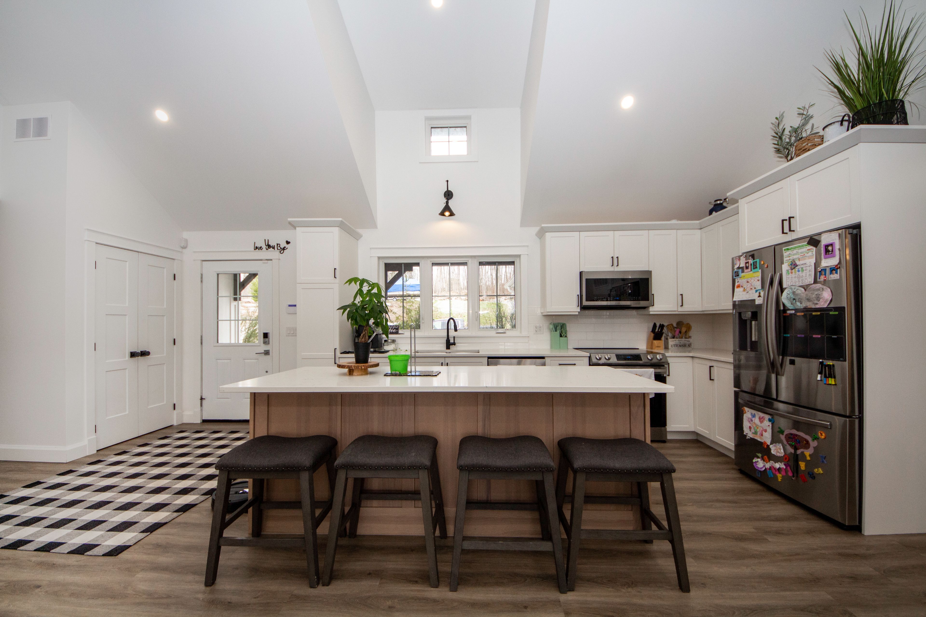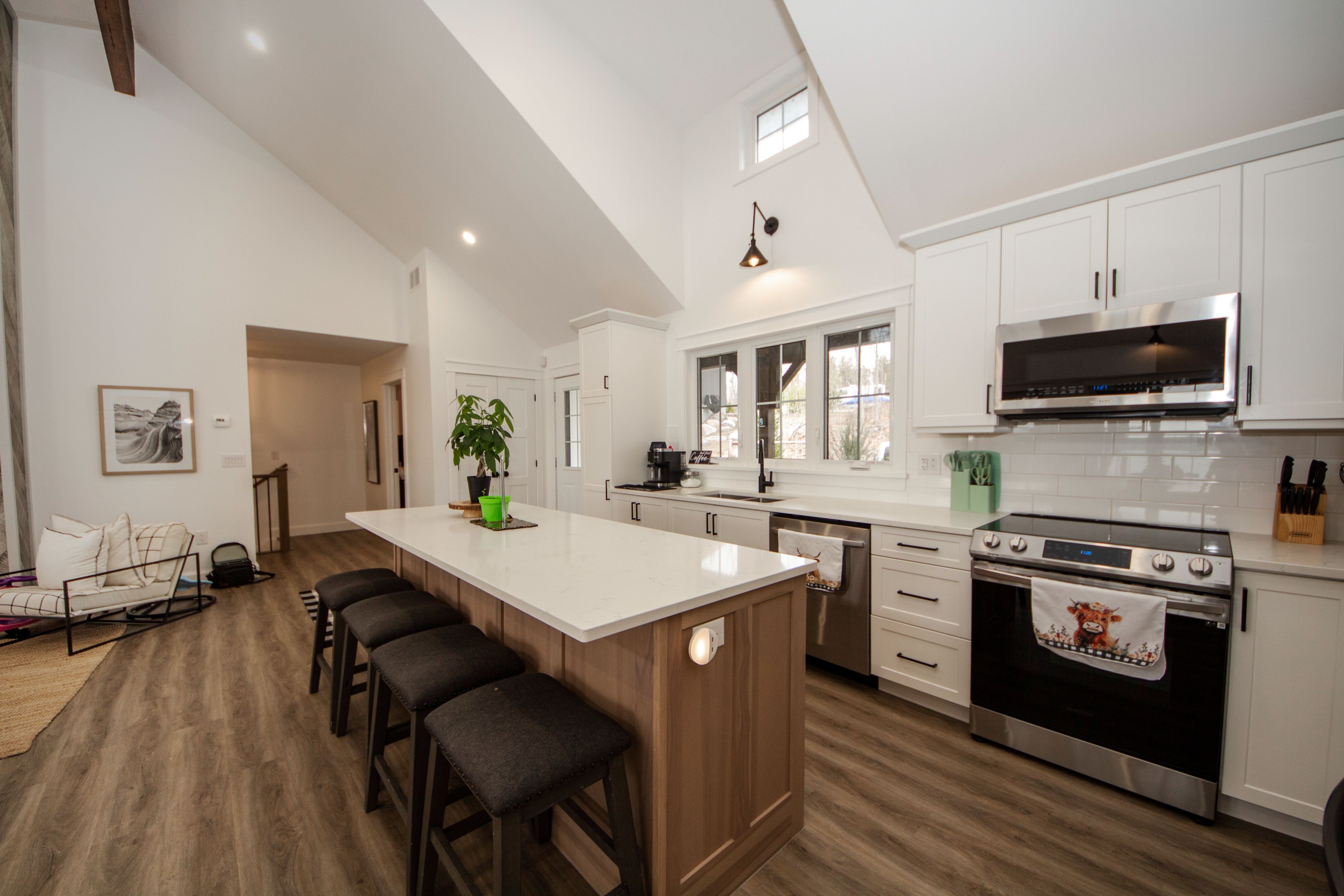 • Bright open-concept design with modern kitchen and quartz countertops.
