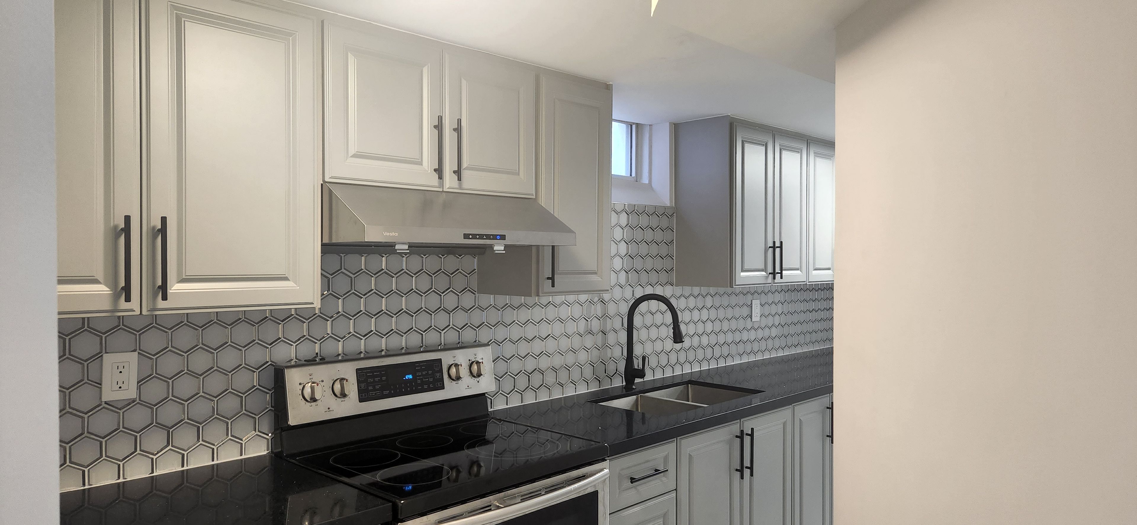 • Brand-new kitchen with quartz countertops and stylish backsplash.