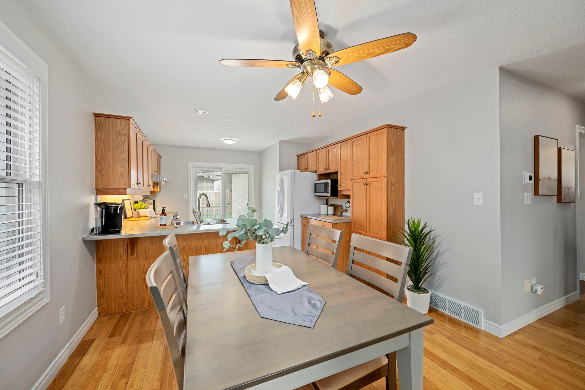 Welcome to this beautifully updated hayhoe-built bungalow offering true main floor living in a convenient st. Thomas location. This is ideal for downsizers seeking simplicity or young families looking for space to grow. The open-concept layout is bright and inviting, featuring bamboo hardwood flooring and large windows that fill the home with natural light. With three bedrooms on the main level, a cheater ensuite, and main floor laundry with mudroom access to the garage , this home delivers the kind of everyday functionality buyers are searching for. The kitchen walks out to a deck equipped with new sunscreen (2025). It overlooks a fully fenced (2023), private backyard with garden shed-perfect for entertaining, pets, or quiet outdoor enjoyment. Extensive upgrades have already been completed, including windows and doors (2024), updated insulation (2018), a newer furnace (2021), new garage door (2021)and eavestroughs (2024); making this a true move-in-ready, low-maintenance option. The finished lower level adds exceptional flexibility with a large family room, additional bathroom, and three finished bonus rooms-ideal for a home office, gym, hobby space, or extra storage. Located within close proximity to elgin mall, elgin general hospital, parks, and everyday amenities, this home offers comfort, convenience, and long-term livability in a family-friendly neighbourhood.