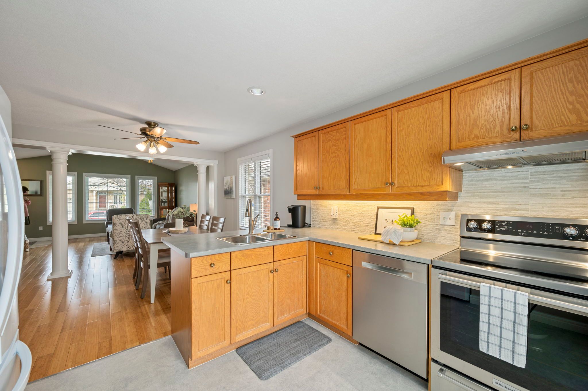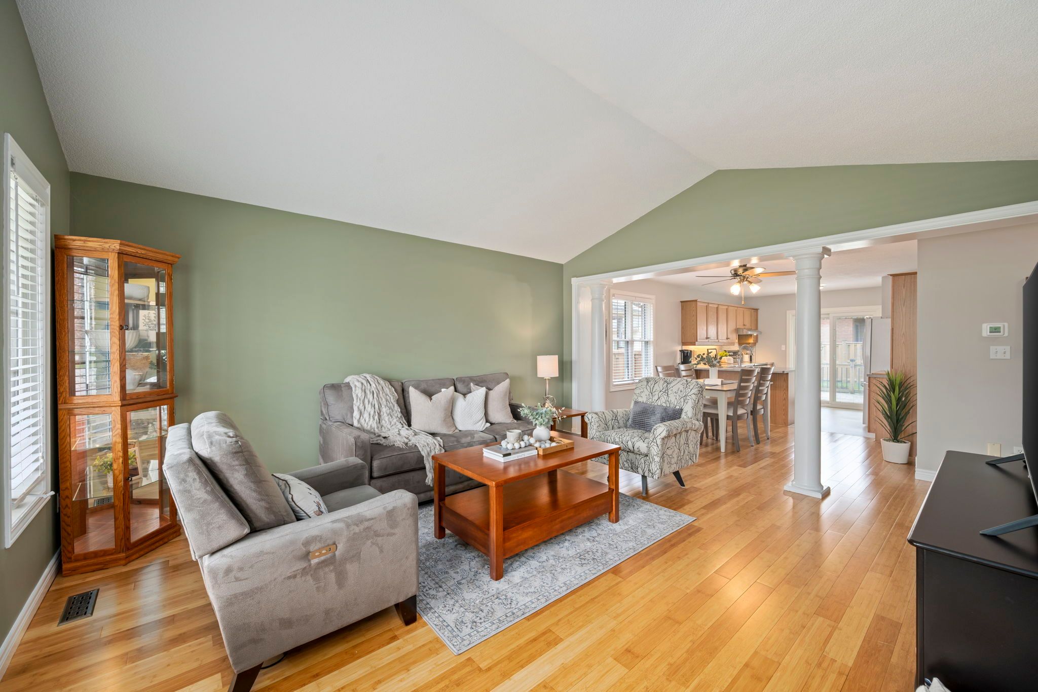 • Bright open-concept layout with bamboo flooring and large windows.
