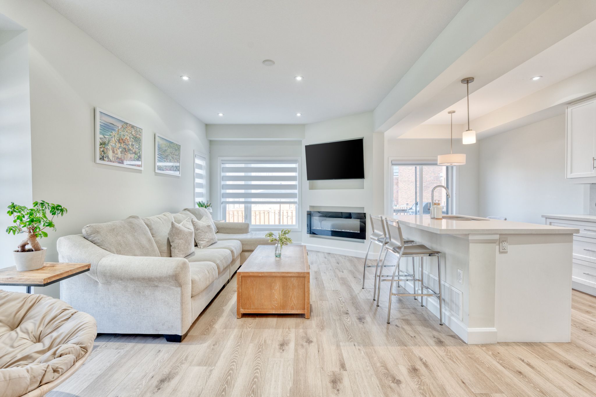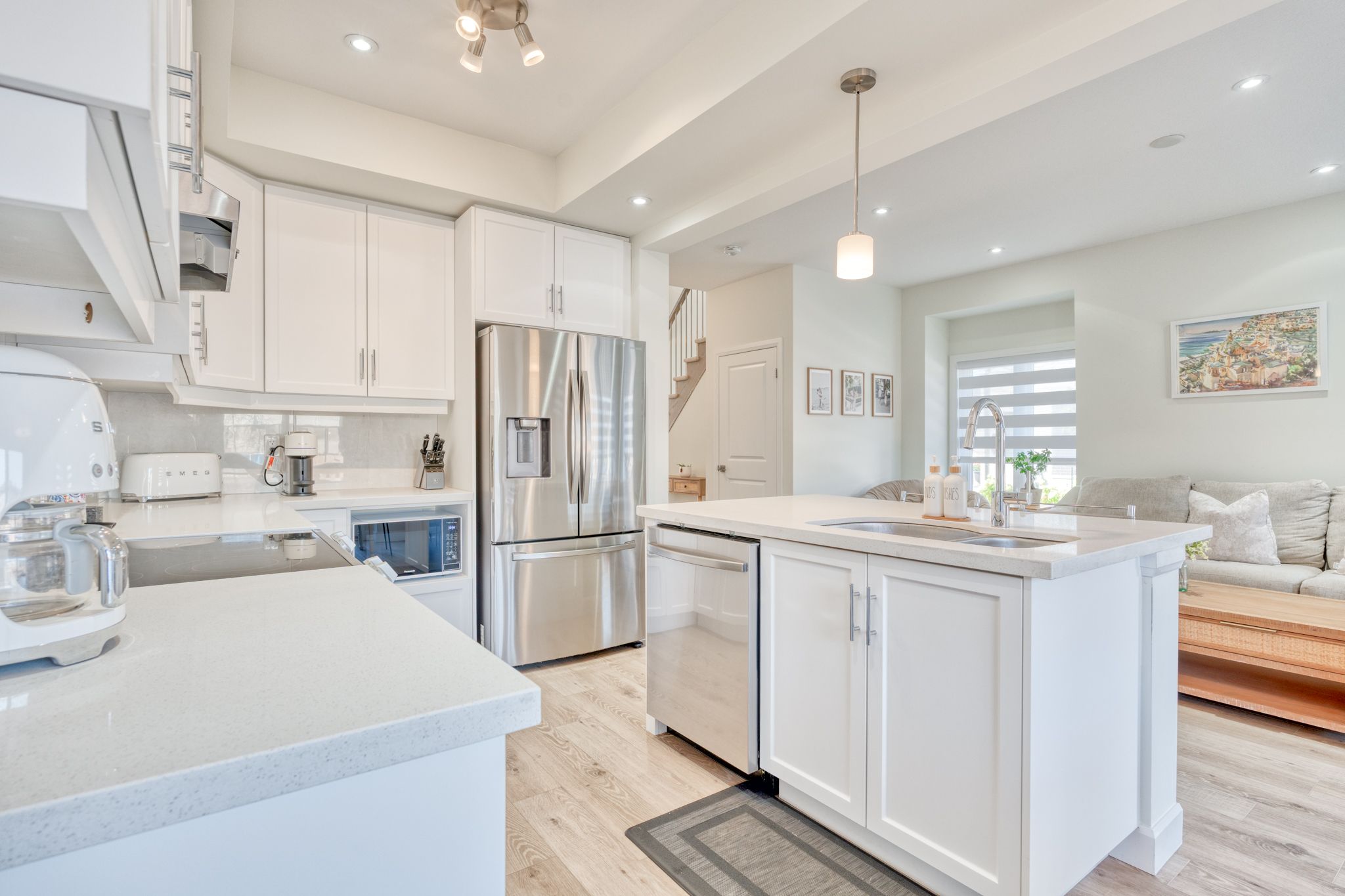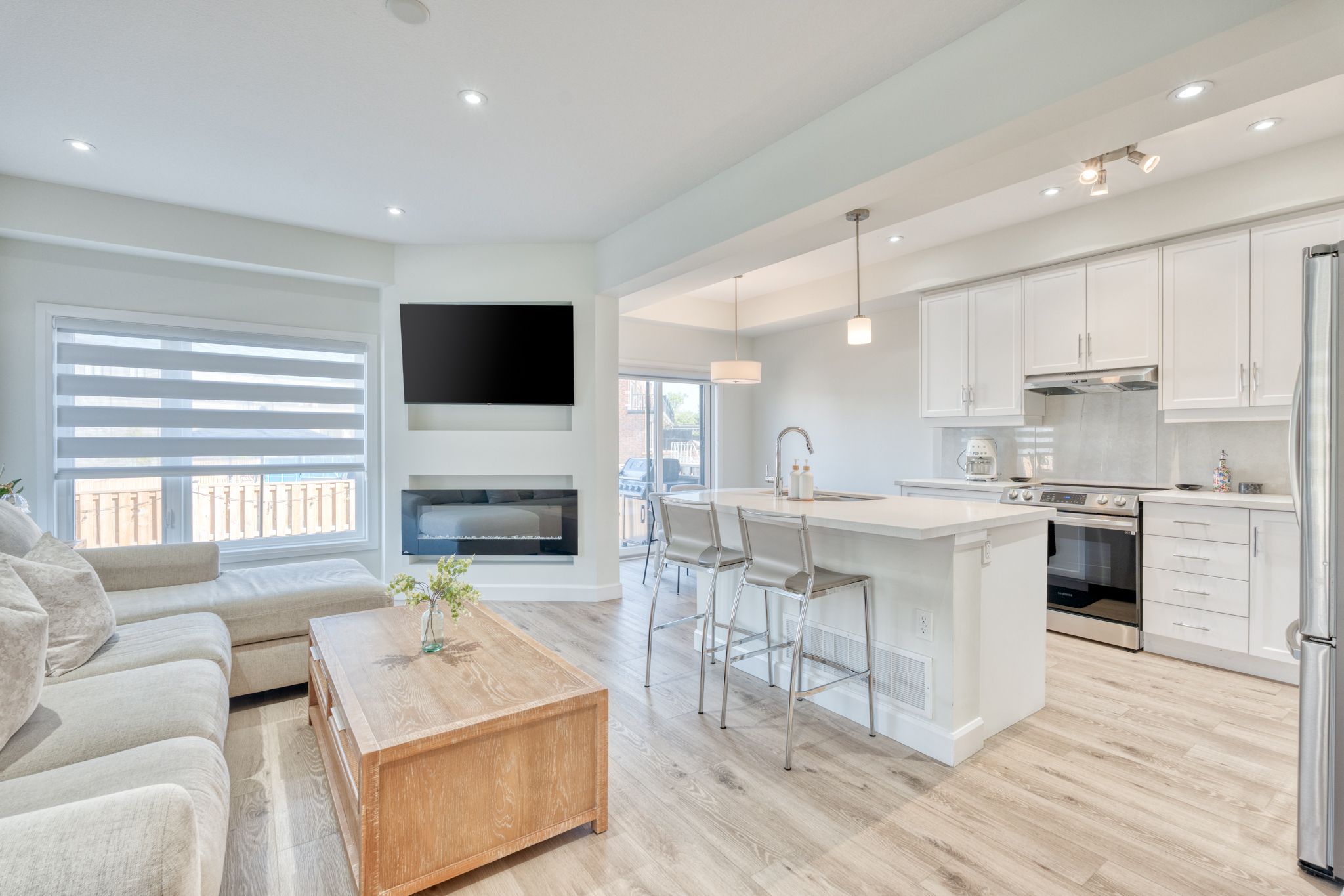 Welcome to 24 southam lane, an elegant end-unit townhouse on hamilton's desirable west mountain. Nestled in a quiet community just steps from hamilton-niagara escarpment trails, amazing schools, essential amenities, and with highway 403 access only 2 minutes away, this home offers ultimate convenience. With over 1,680 sq. Ft. Of beautifully updated living space, you'll find luxury vinyl plank flooring, an upgraded staircase, a premium appliance package, an electric fireplace, and a new concrete patio, perfect for enjoying warm summer evenings. The spacious living room flows seamlessly into the open-concept kitchen featuring quartz countertops, stainless steel appliances, and upgraded cabinetry. Upstairs, discover a bright loft space ideal for a home office or play area, along with 3 generous bedrooms. The primary bedroom boasts a large walk-in closet and an updated glass walk-in shower. Don't miss your chance to own this modern end-unit townhouse that combines luxury finishes and an unbeatable location. Rsa.