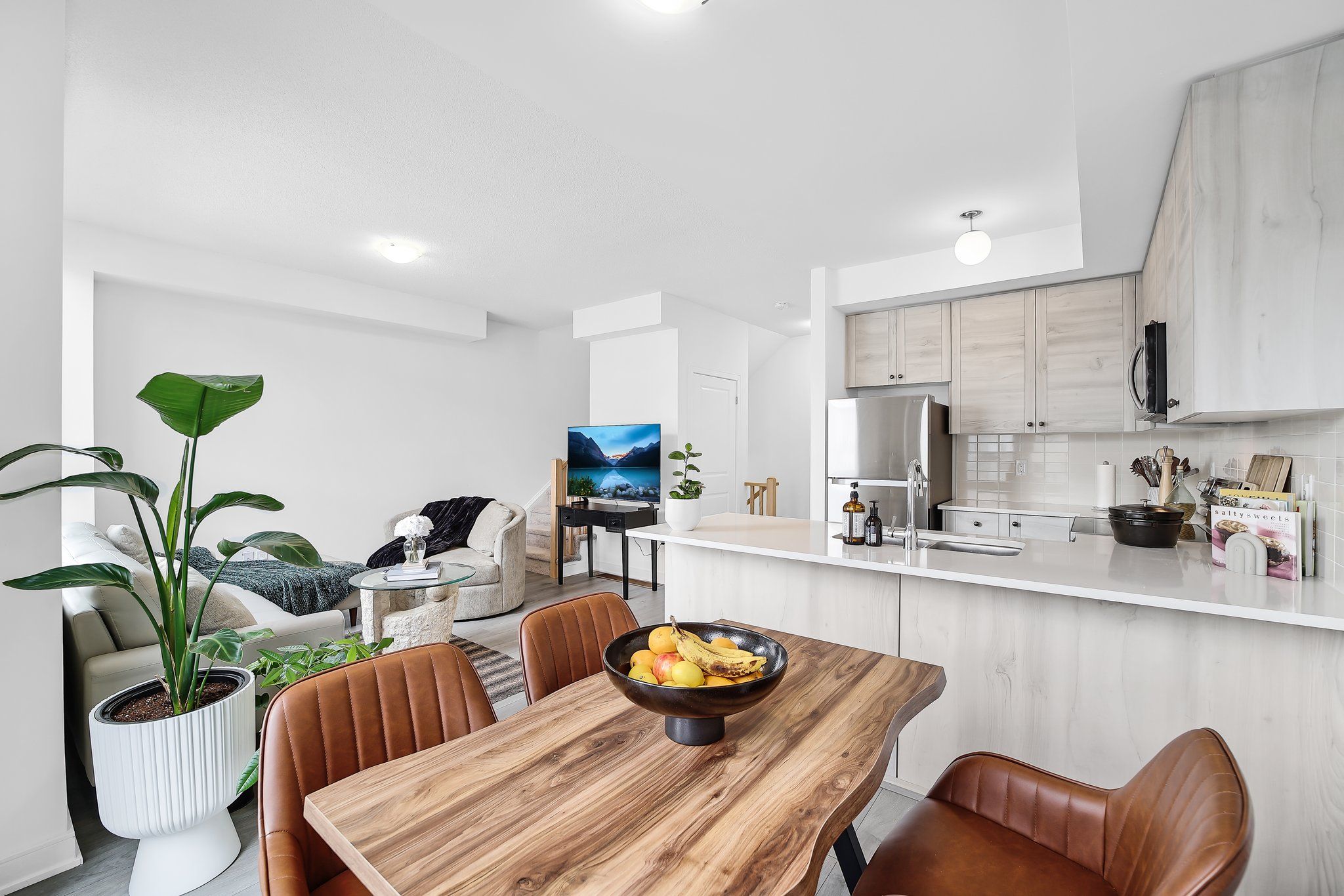 Discover contemporary living in this beautifully designed 2-bedroom, 2-bathroom townhouse, ideally located in the highly desirable innishore neighbourhood. Offering 1,095 square feet of thoughtfully planned living space, this home perfectly balances comfort, convenience, and modern style. Situated just off yonge street and mapleview drive, this 3-storey residence is close to parks, top-rated schools, scenic hiking trails, and a wide range of dining and shopping options. Commuters will appreciate the proximity to the barrie south go station-only 5 minutes away-and quick access to highway 400, just a 10-minute drive. Spend weekends enjoying convenient access to two of barrie's premier destinations -it's vibrant waterfront or the upscale friday harbour resort- both within 15 minutes from your doorstep. Built in 2023, the home features striking curb appeal with stylish grey brick, black-framed windows, and bold architectural lines. Inside, the open-concept layout is enhanced by sleek laminate flooring and beautiful oak railings. The contemporary kitchen boasts quartz countertops, an extended upper cabinet design, a tiled backsplash, a flush breakfast bar, and stainless steel appliances. It seamlessly connects to the spacious family and dining areas, with a french door leading to a private balcony-perfect for outdoor lounging or entertaining. The main bathroom features quartz countertops and elegant tile finishes, while thoughtful storage solutions throughout the home add to its functional charm. This move-in ready home presents an exceptional opportunity to live in one of barrie's most vibrant and well-connected communities.
