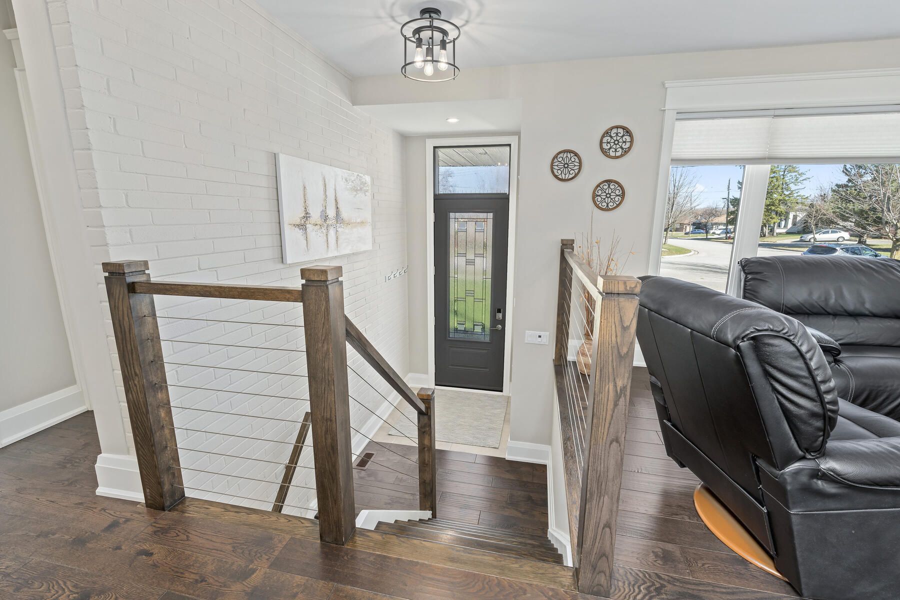 • Kitchen features quartz surfaces and a large island for gatherings.