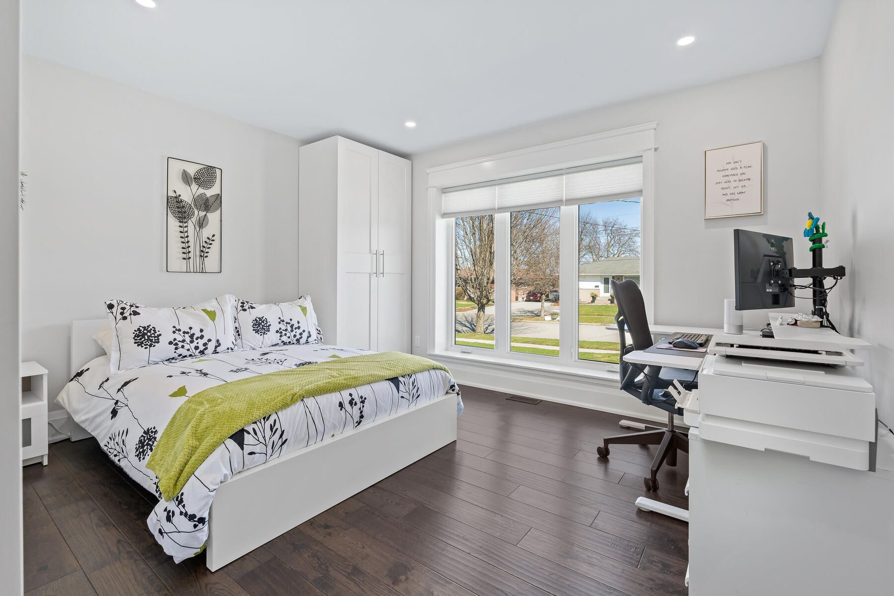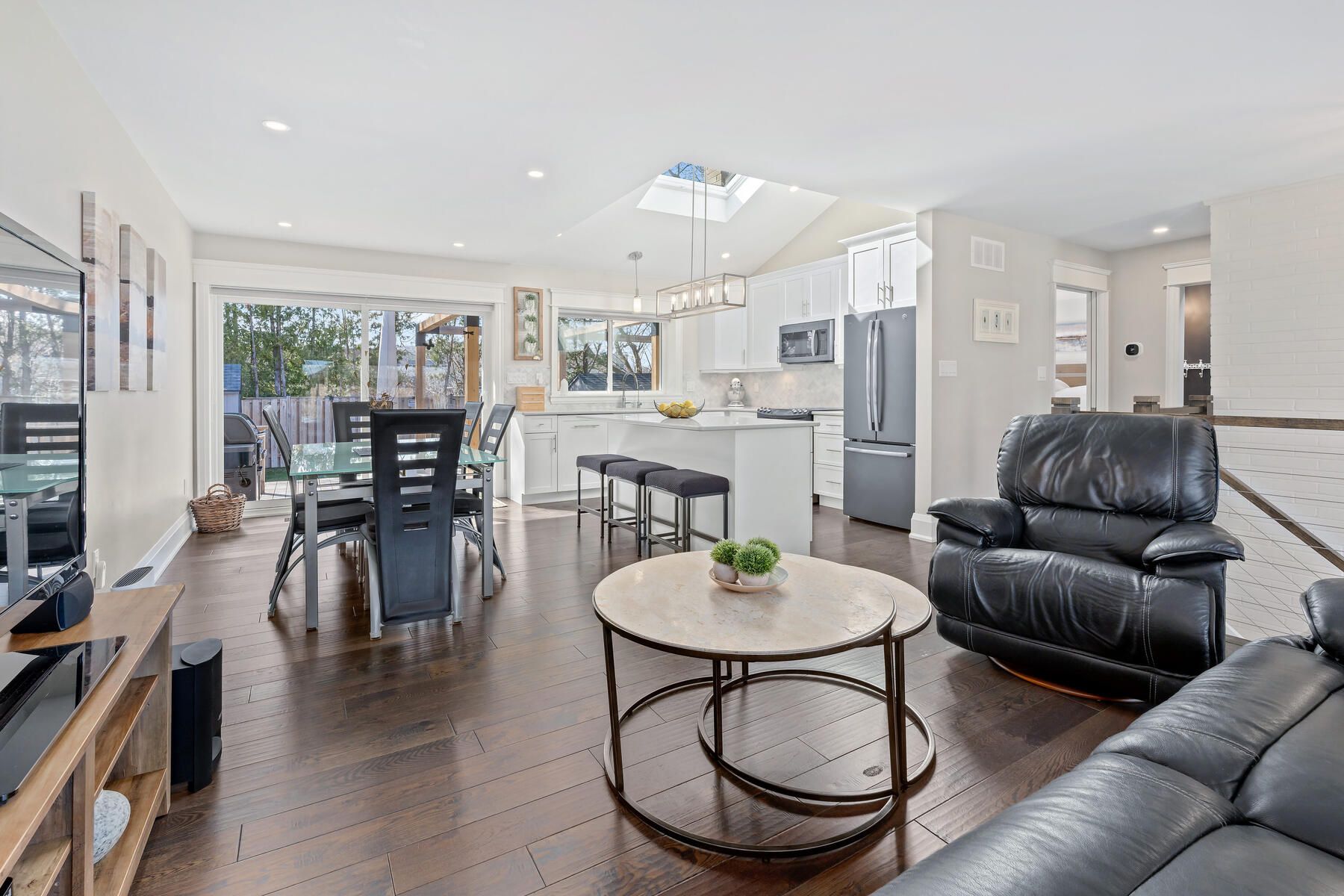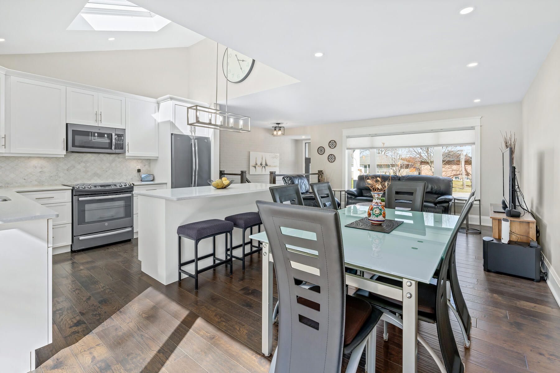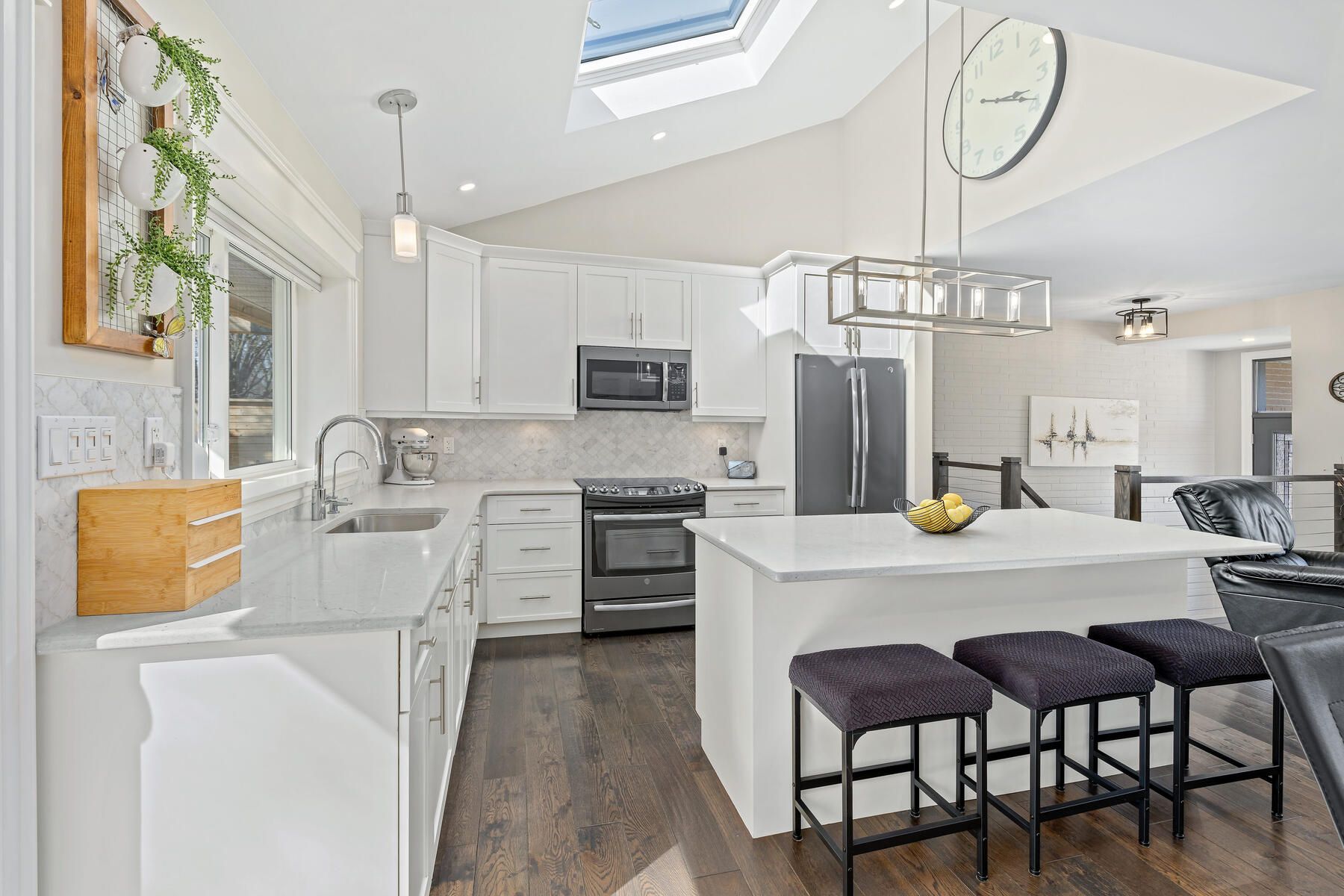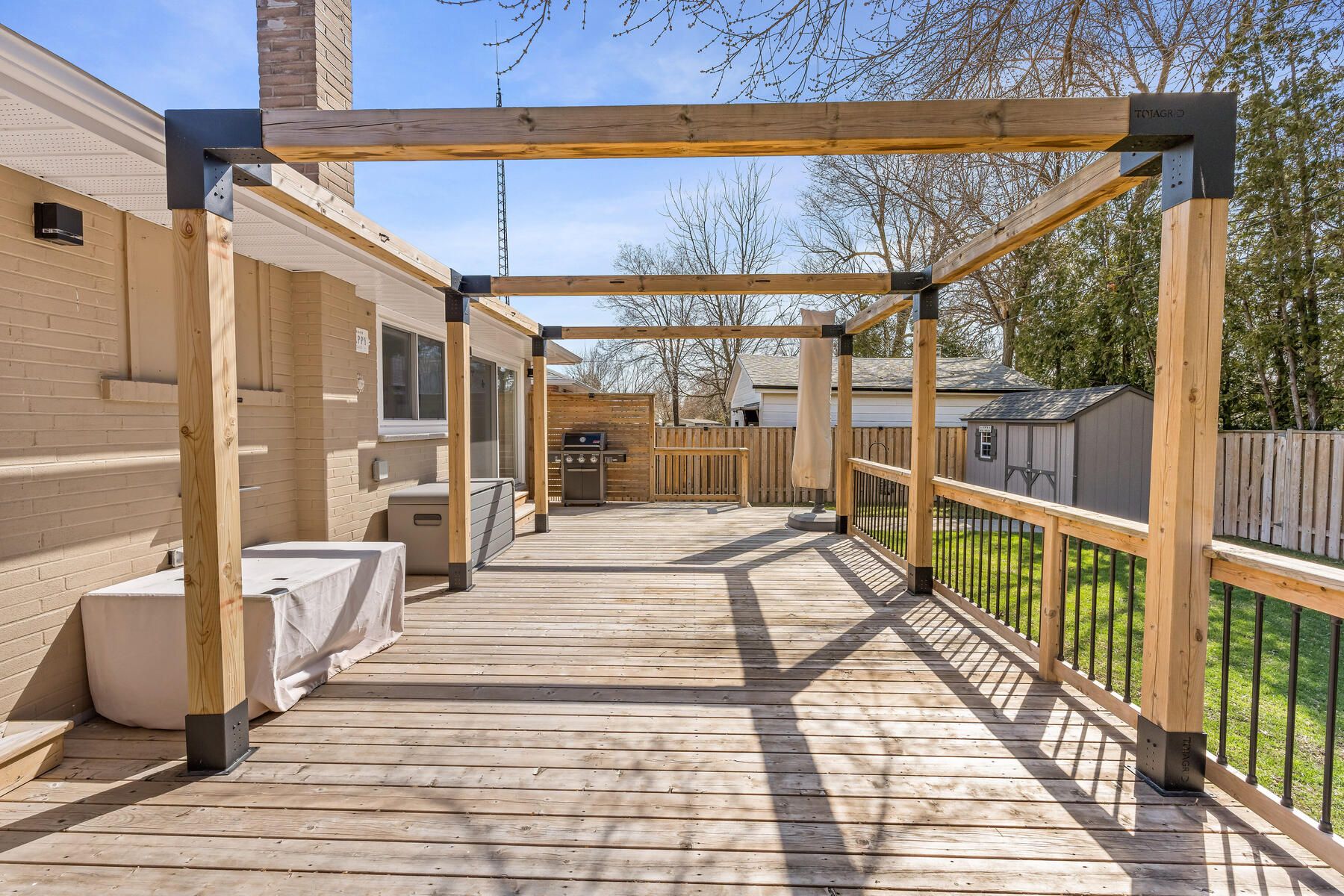 Modern elegance meets everyday comfort!! Rarely does a home of this caliber hit the market. Every inch of this bungalow has been thoughtfully reimagined to create a space that feels both grand and intimate. The open-concept layout flows seamlessly under vaulted ceilings, while the kitchen's quartz surfaces and large island serve as the ultimate gathering spot. Step through one of the multiple walk-outs to your backyard retreat-a perfectly manicured lawn and a spacious deck with a pergola designed for summer bbq's. Inside, the primary suite offers a peaceful escape, while the fully finished basement provides the versatility modern families crave, featuring a 4-piece bath and a large recreation room anchored by a flickering gas fireplace. Located in a sought-after neighborhood steps from schools all amenities, this home is the definition of "pride of ownership."