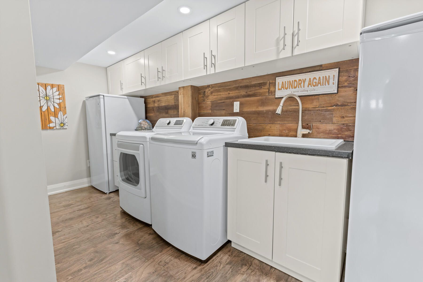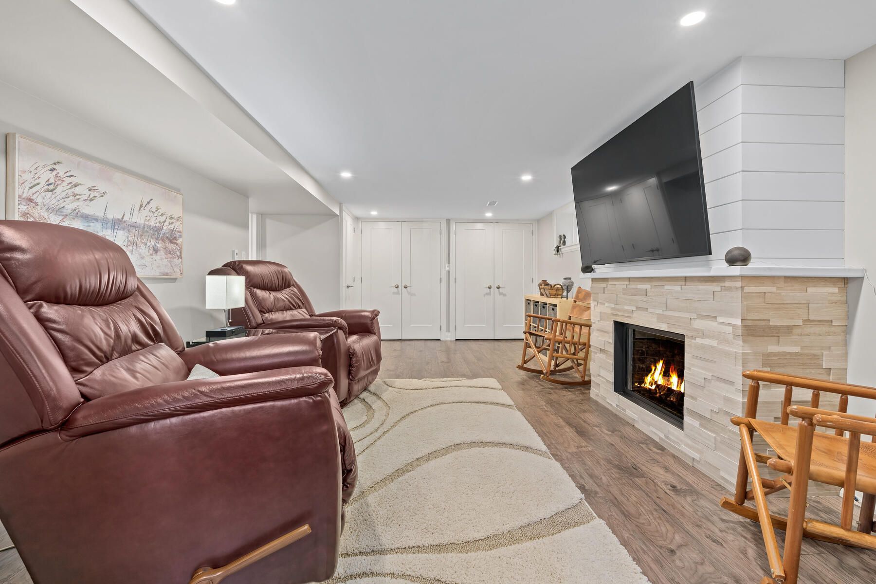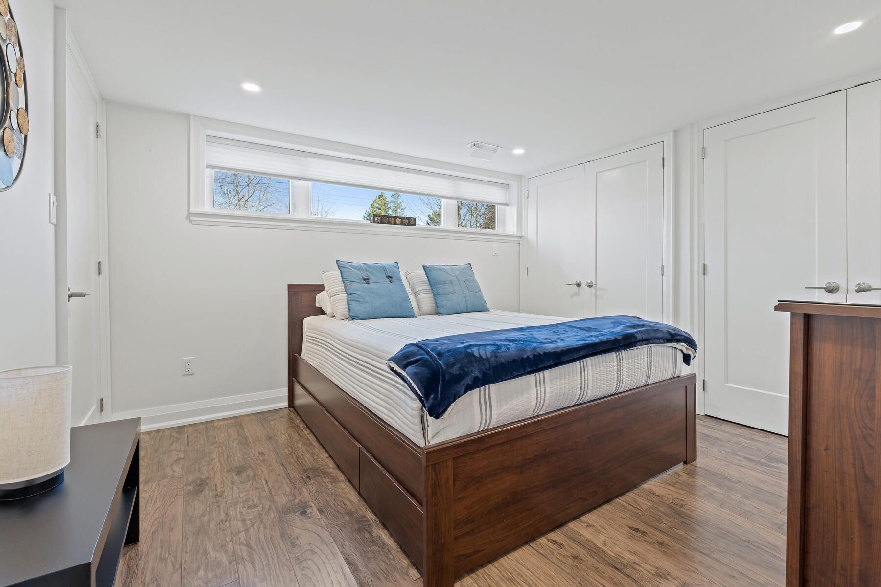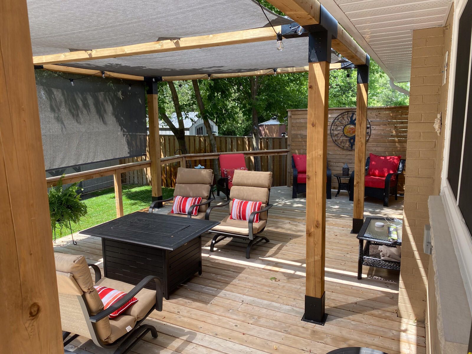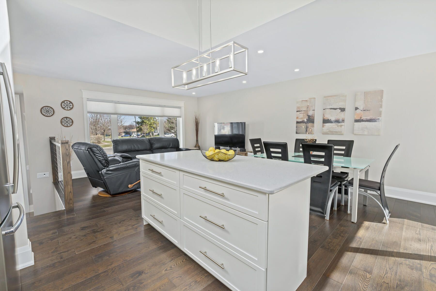 Modern elegance meets everyday comfort!! Rarely does a home of this caliber hit the market. Every inch of this bungalow has been thoughtfully reimagined to create a space that feels both grand and intimate. The open-concept layout flows seamlessly under vaulted ceilings, while the kitchen's quartz surfaces and large island serve as the ultimate gathering spot. Step through one of the multiple walk-outs to your backyard retreat-a perfectly manicured lawn and a spacious deck with a pergola designed for summer bbq's. Inside, the primary suite offers a peaceful escape, while the fully finished basement provides the versatility modern families crave, featuring a 4-piece bath and a large recreation room anchored by a flickering gas fireplace. Located in a sought-after neighborhood steps from schools all amenities, this home is the definition of "pride of ownership."