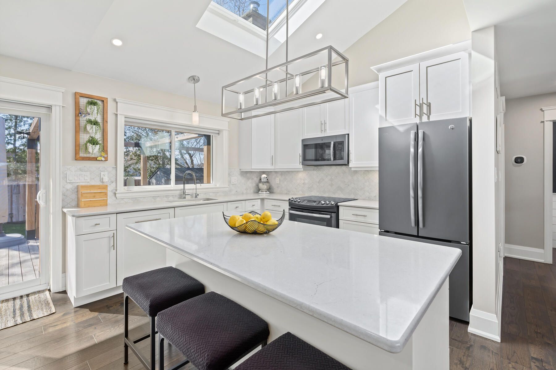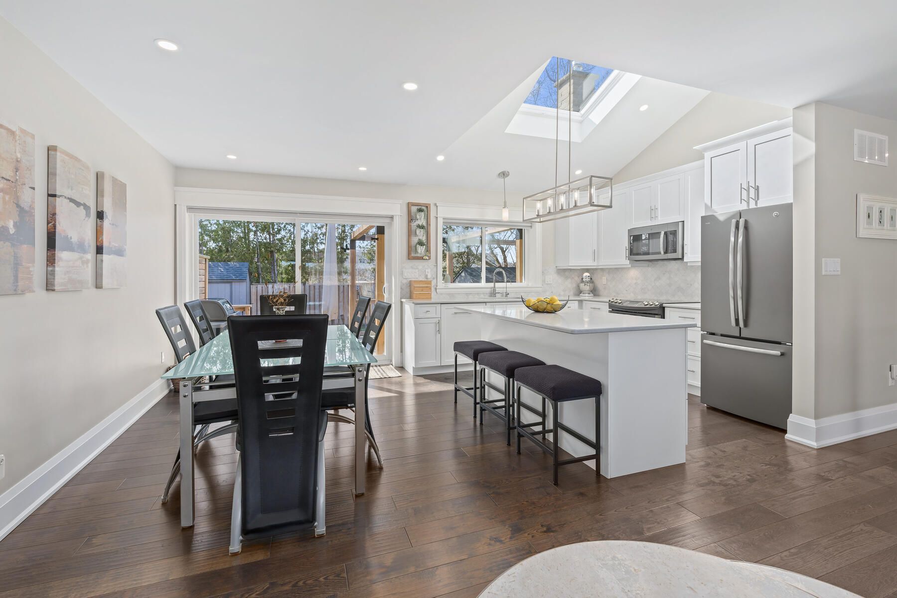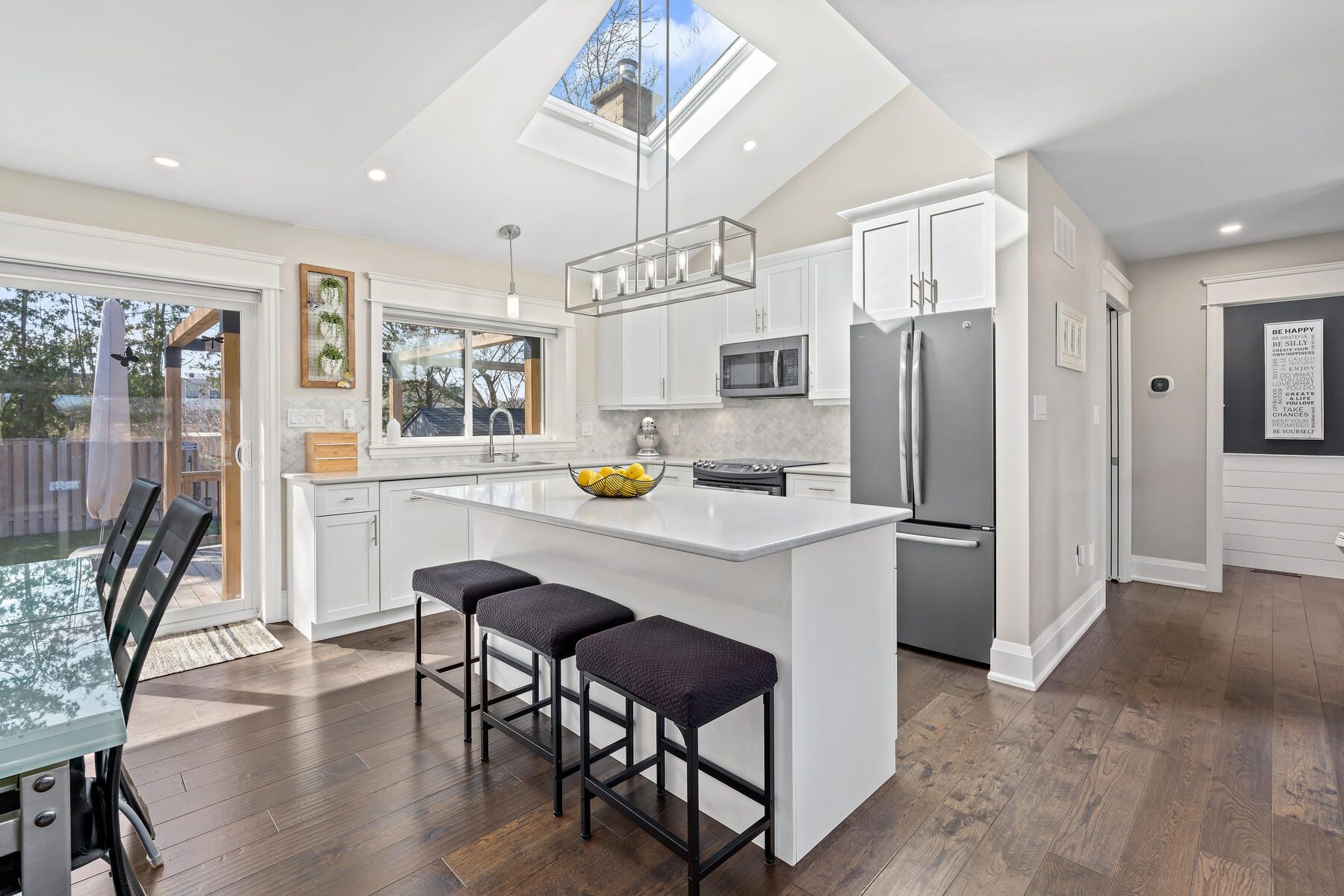 • Thoughtfully reimagined bungalow with open-concept layout and vaulted ceilings.