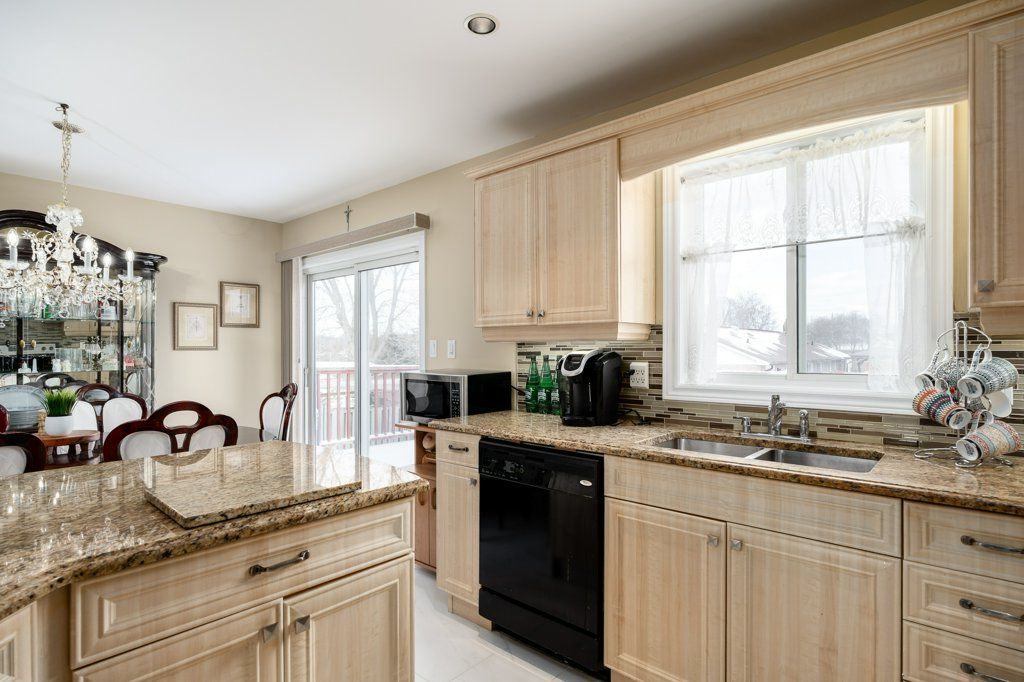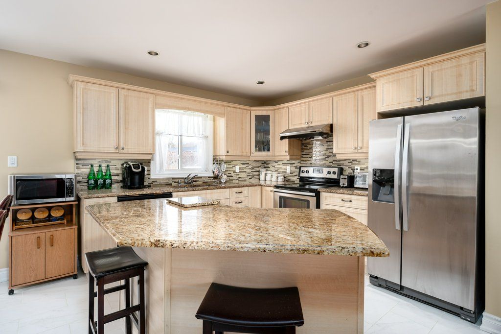 • Stylish kitchen features granite countertops and a functional island.