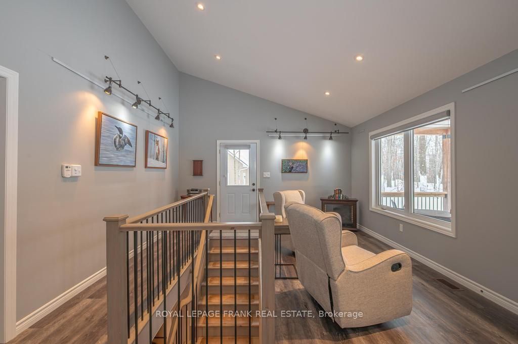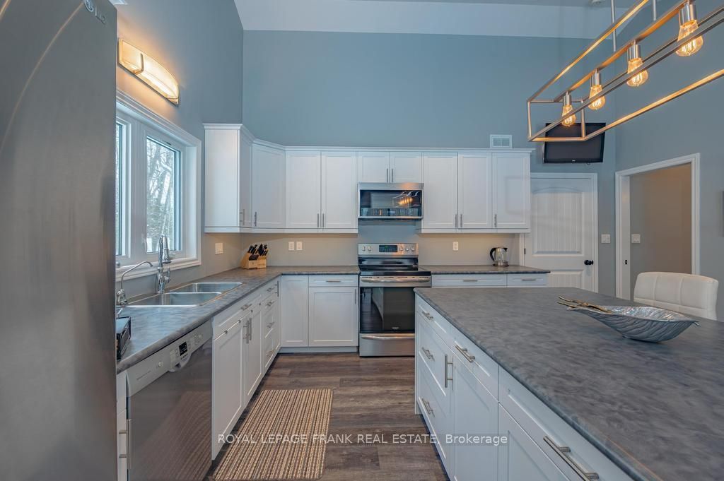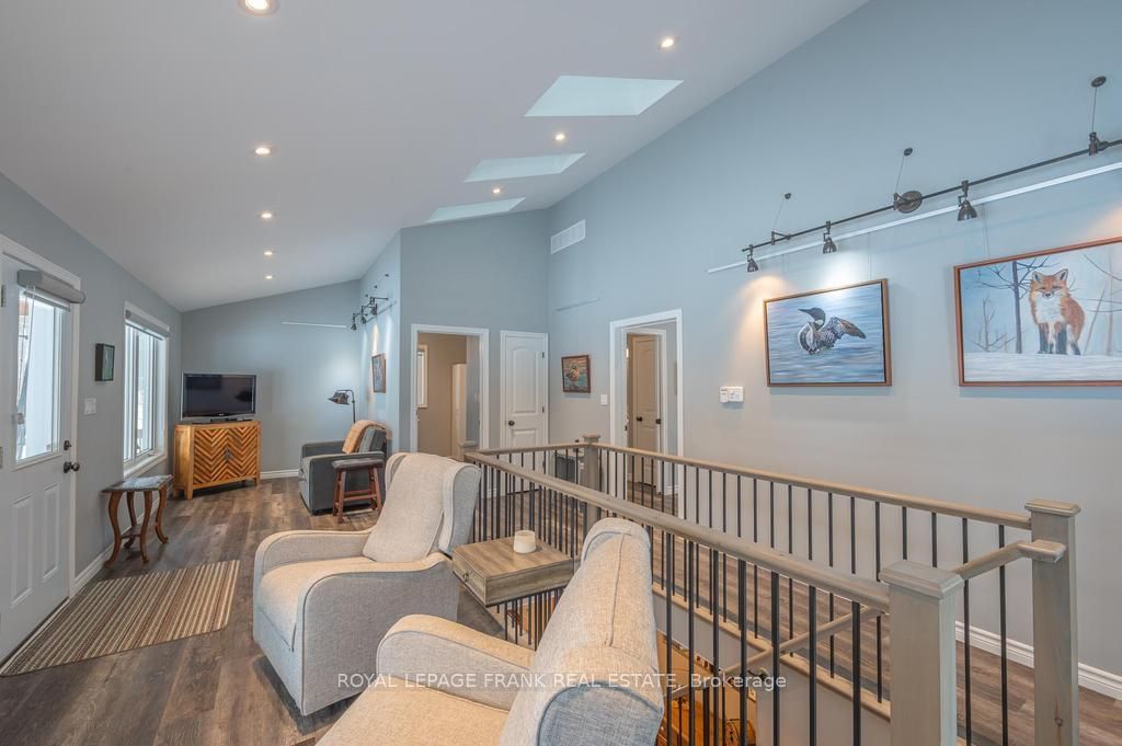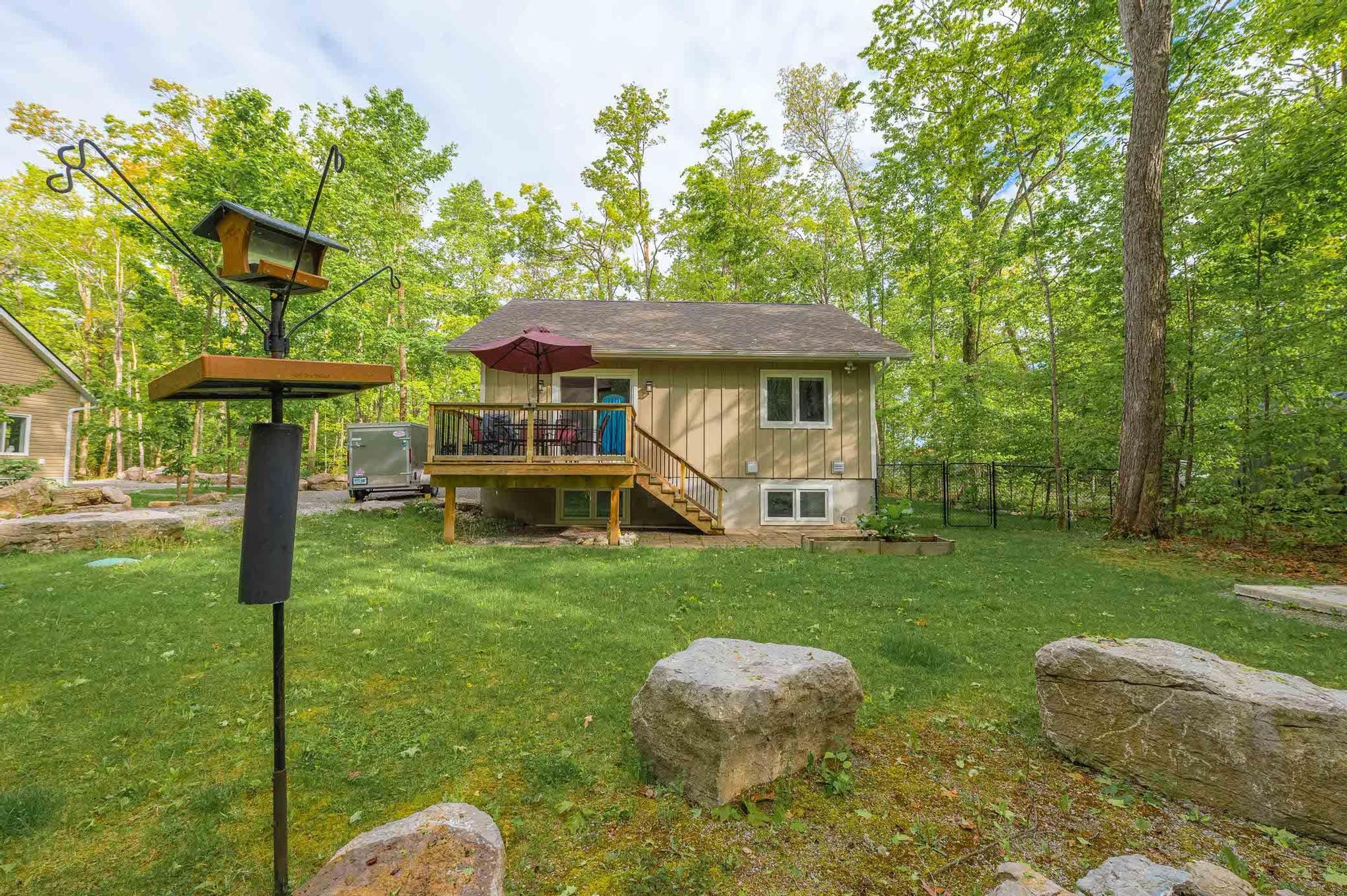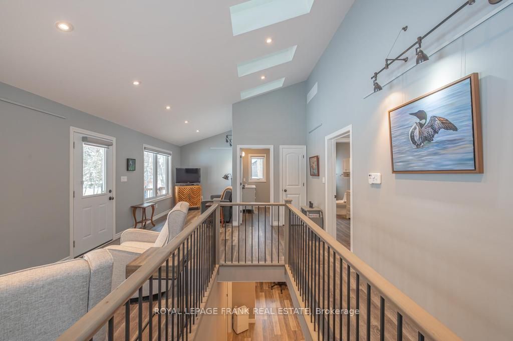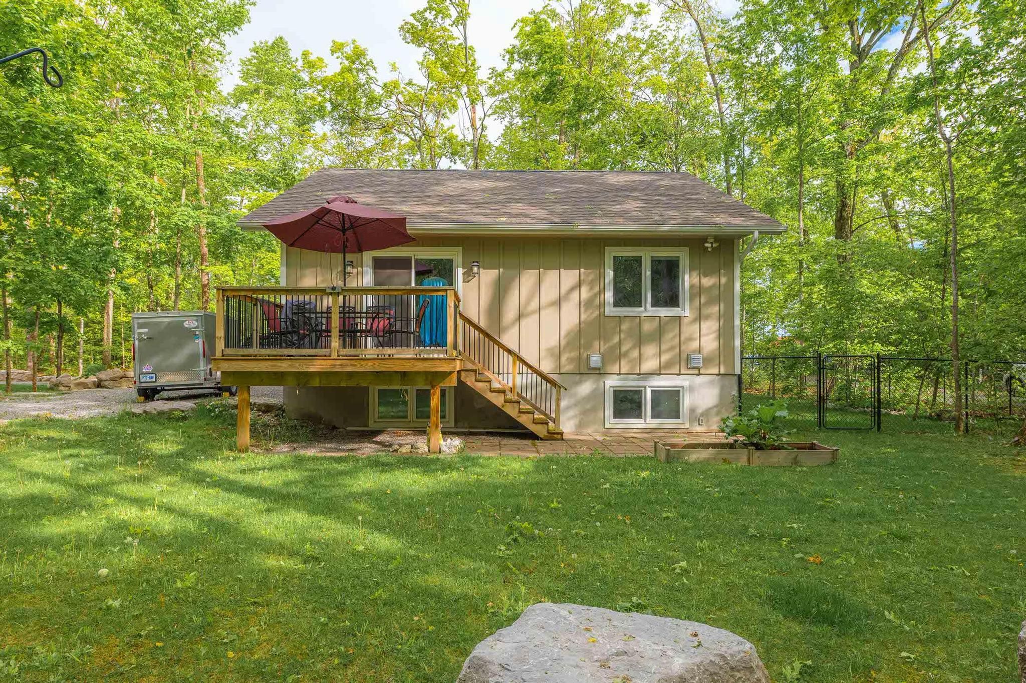 Lovely custom bungalow located a short walk to a public access on pigeon lake. Launch your kayak, take a swim or just relax and enjoy the lake views. Situated on a double lot with great curb appeal and an inviting covered front veranda. Tastefully finished with 2 main floor baths, vaulted ceilings, large bright kitchen with sitting area, stainless steel appliances and a walkout to a large deck. The lower level is nicely finished with a lovely rec room, 2 piece bath, office, lots of storage and the potential for another bedroom. Fabulous double car garage. 1100 square feet of space including a heated workroom and 2-piece bath on the main floor. The second floor consists of a large open room and is heated and cooled by a heat pump. Enjoy the private yard which is nicely landscaped with armour stone, a partially fenced area, fire pit and a hard wired generator. Located on a township road in an area of nice homes, close to marinas and a short drive to the town of buckhorn.