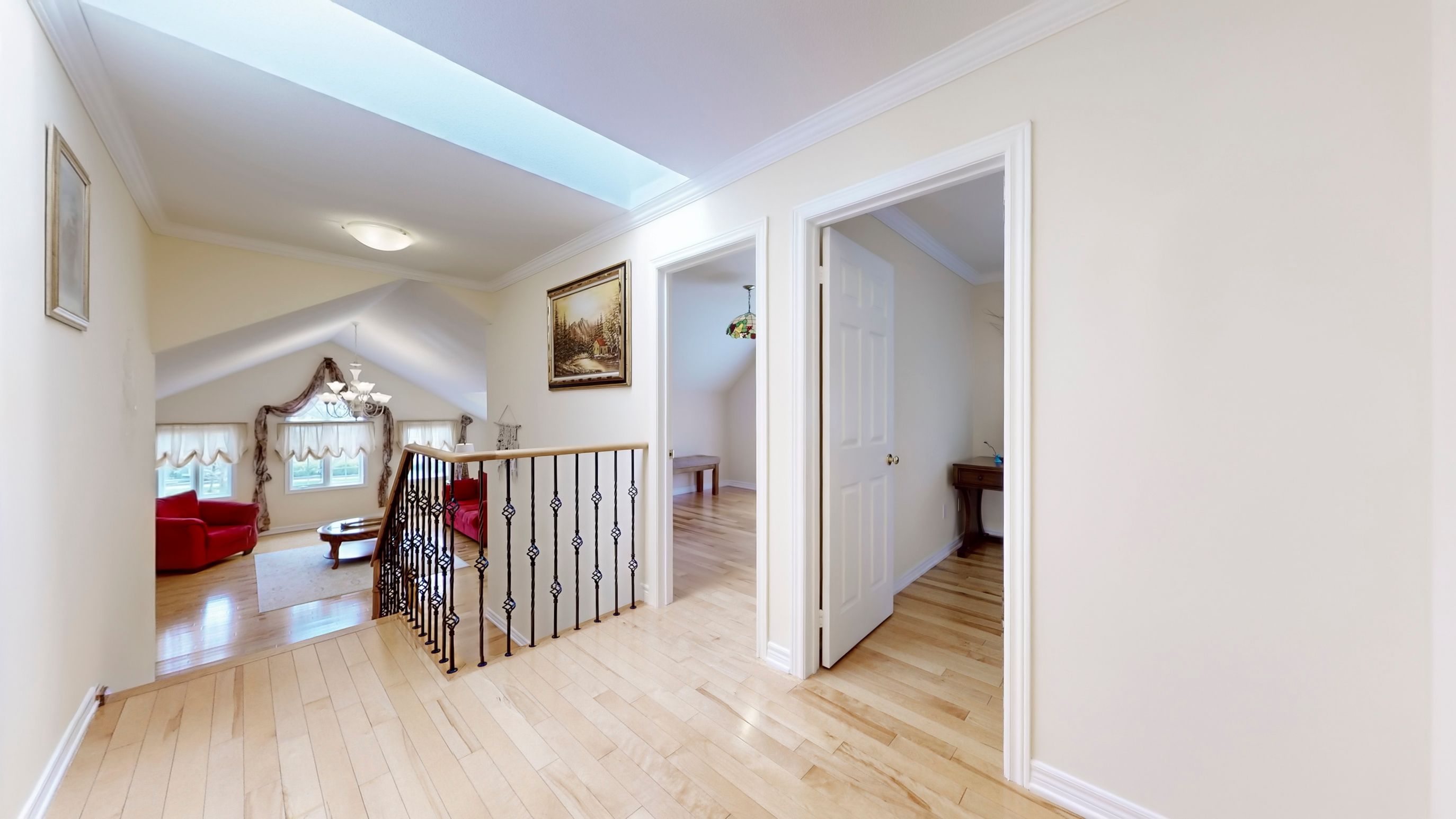Gorgeous home backing on park! The bright 2500 sf home sits on a desirable corner lot in the heart of ajax. The bright open layout includes a separate dining room with a bay window and gorgeous family room with vaulted ceilings and gas fireplace. The oversized primary suite w/ensuite bath & 2 separate closets (walk-in + double). Hardwood floor through out main & 2nd. The skylight on 2nd floor provides ample light and bright. Finished basement with separate entrance, w/4 pc bath. Professionally landscaped, fully fenced backyard backing onto forest ridge park. Walking distance to primary and secondary schools, parks, shopping, and transit. Just move in and enjoy.